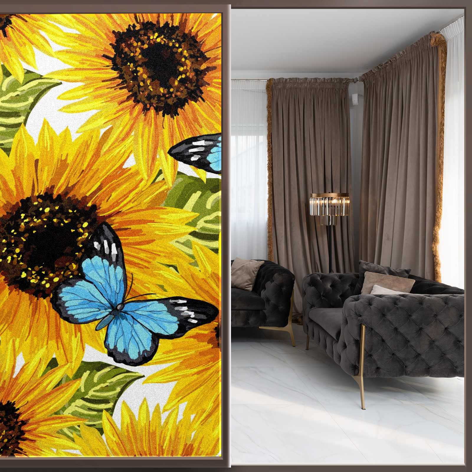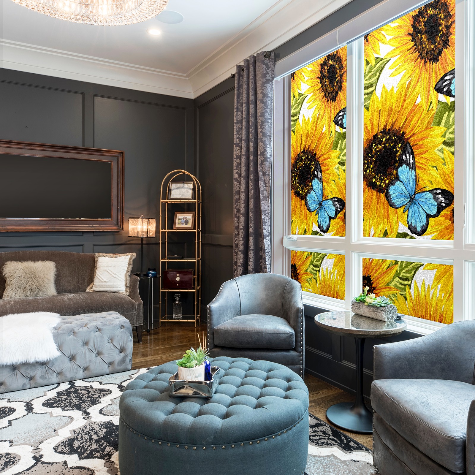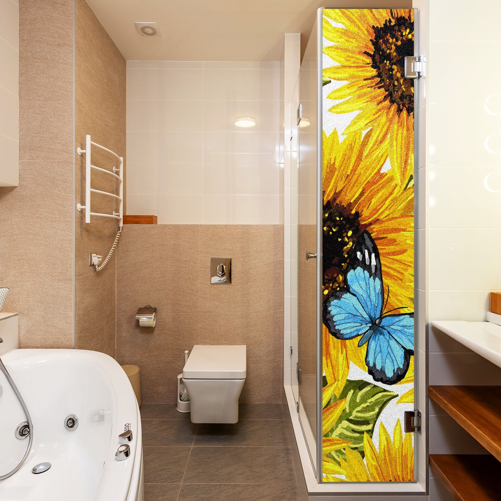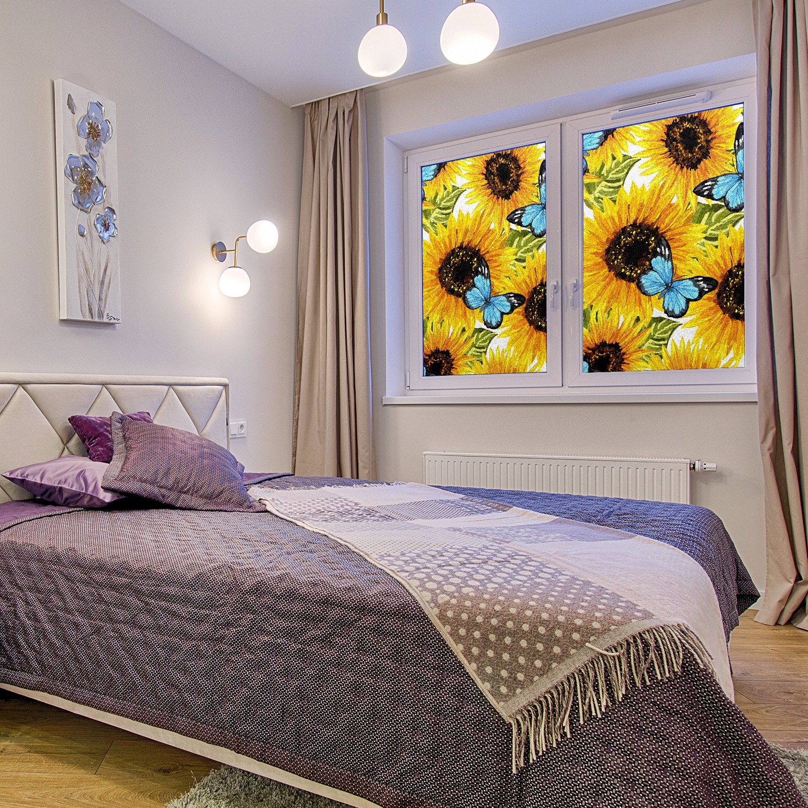 MSINMKOK Window Privacy Film Sunflower Butterfly Oil Painting Decorative Frosted Glass Window Film for Glass Door Bathroom Window 17.7'' x 23.6'' Non-Adhesive Window Decals Stickers