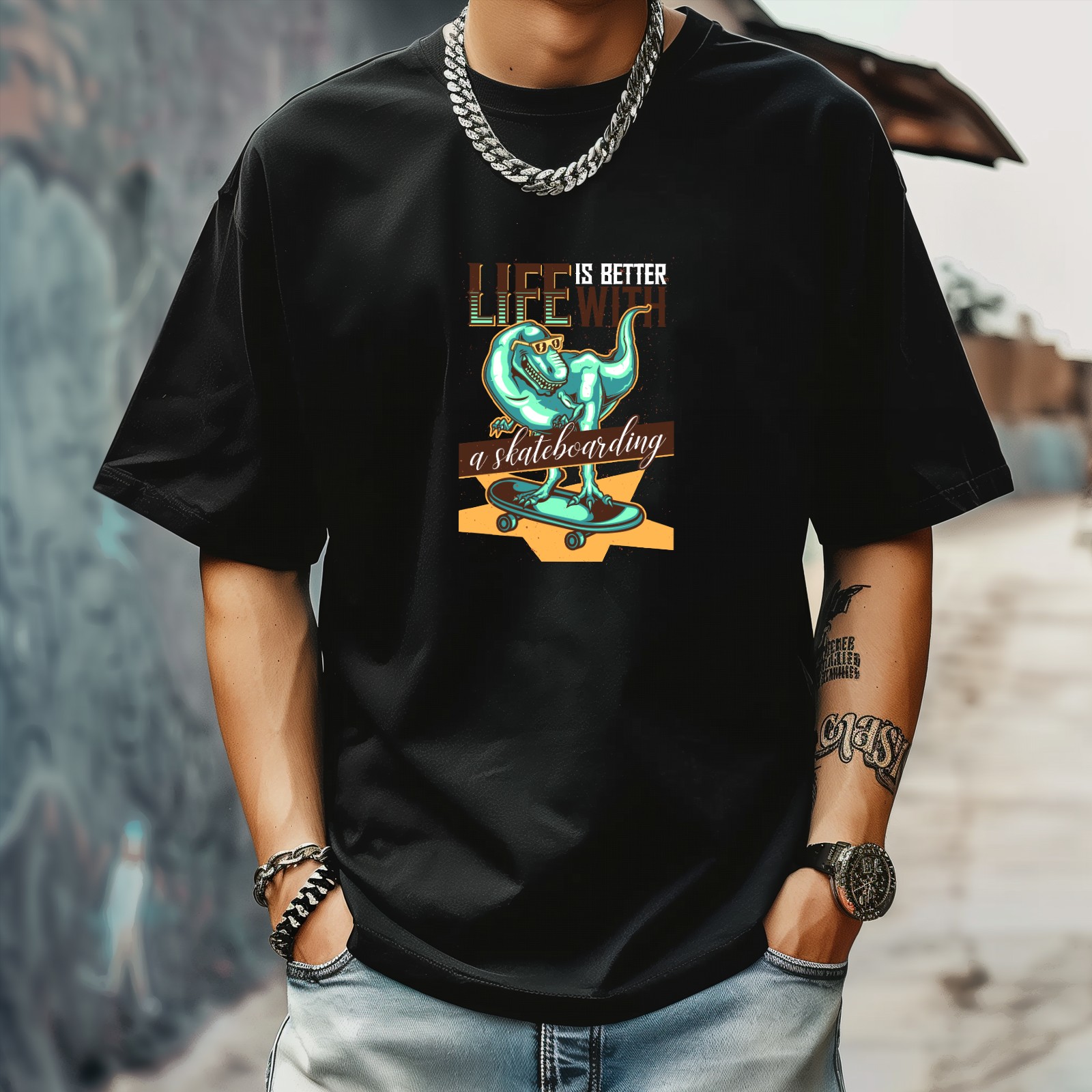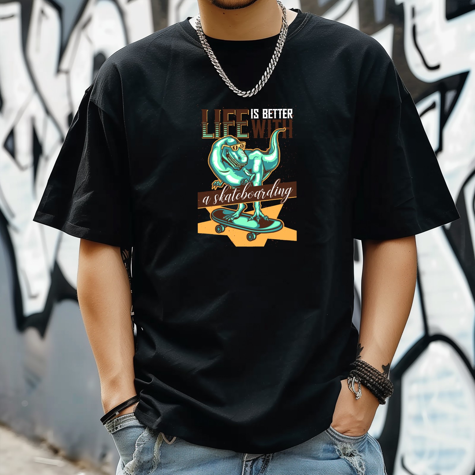 Street Skate (3) T-Shirt for Man Tops Short Sleeves Shirt Crew Neck Shirt XS