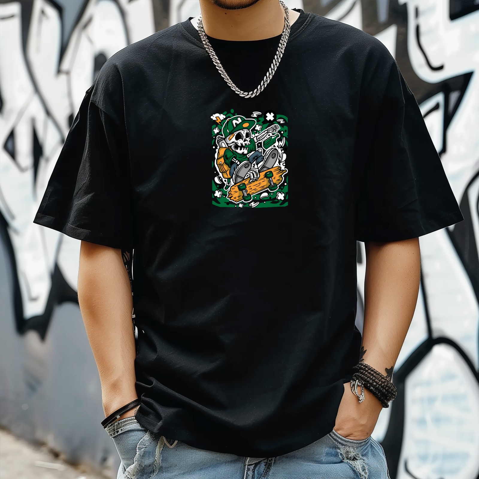 Skull (3) T-Shirt for Man Tops Short Sleeves Shirt Crew Neck Shirt XS