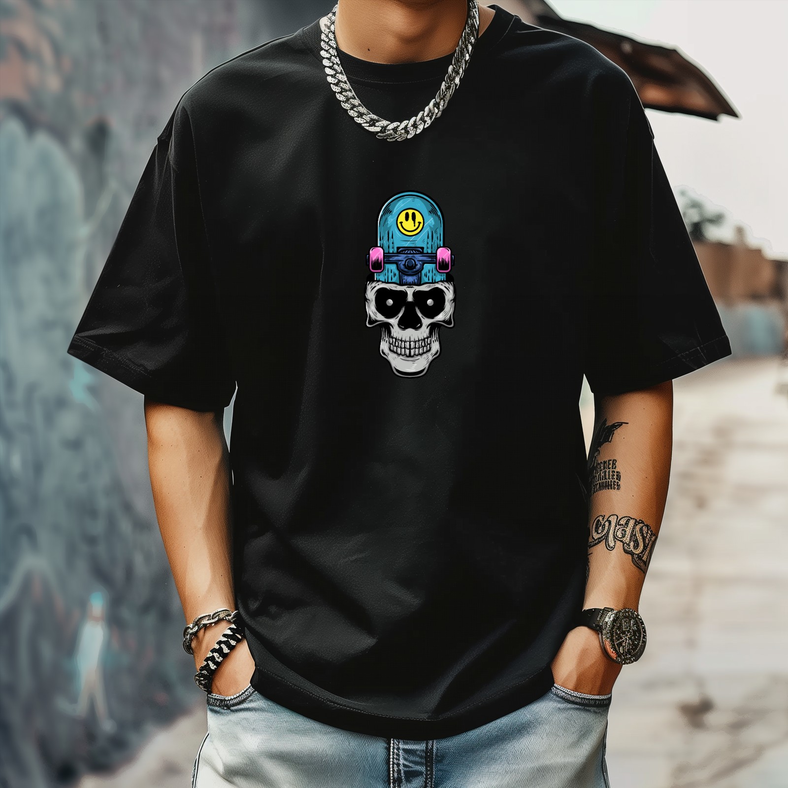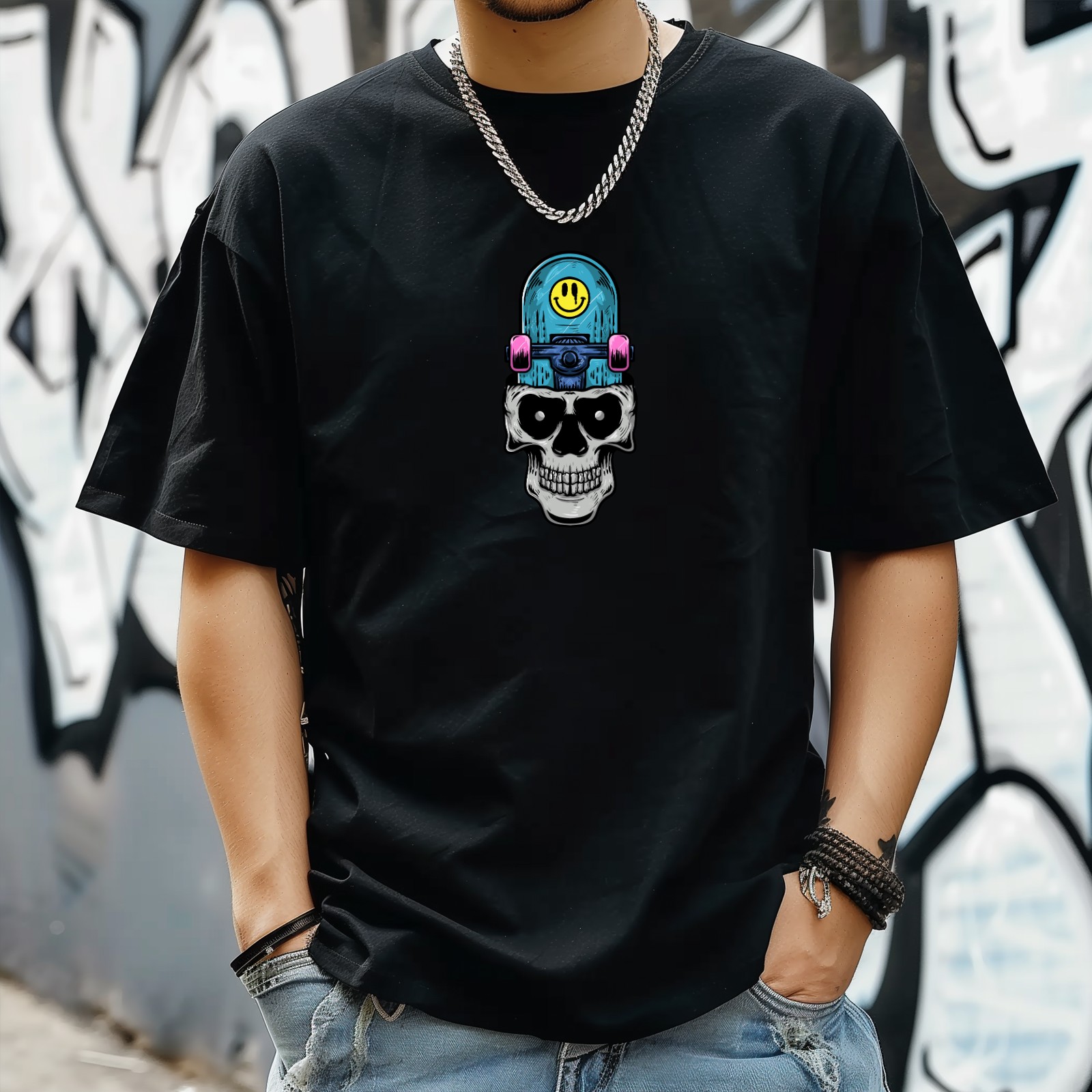 Skull (1) T-Shirt for Man Tops Short Sleeves Shirt Crew Neck Shirt XS