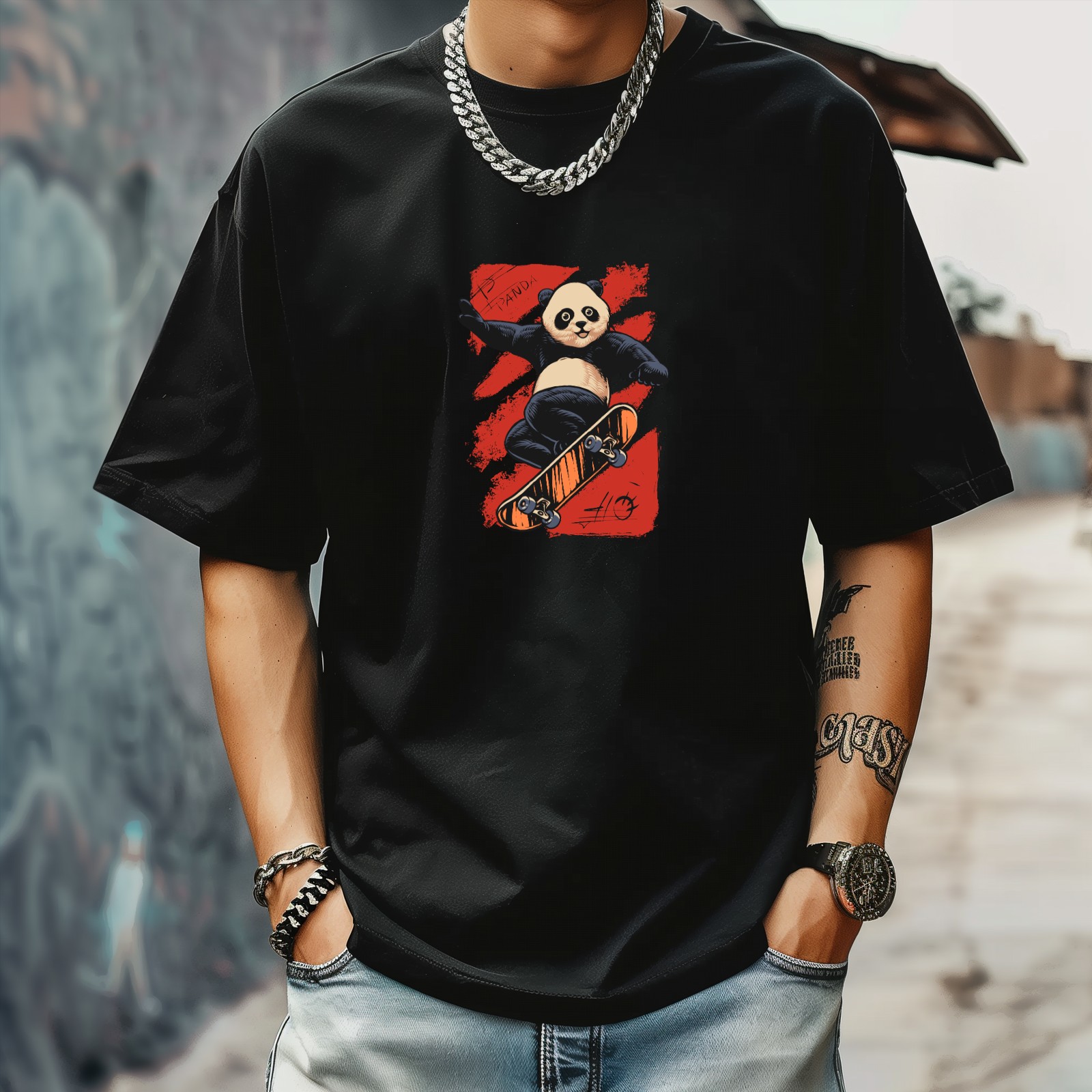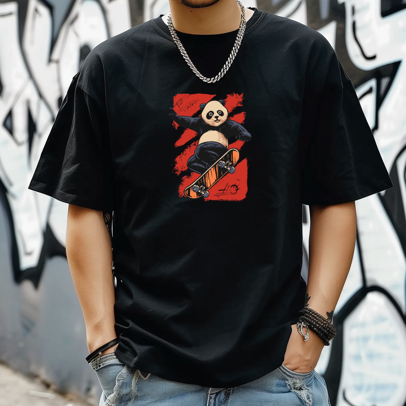 Skate Panda (3) T-Shirt for Man Tops Short Sleeves Shirt Crew Neck Shirt XS
