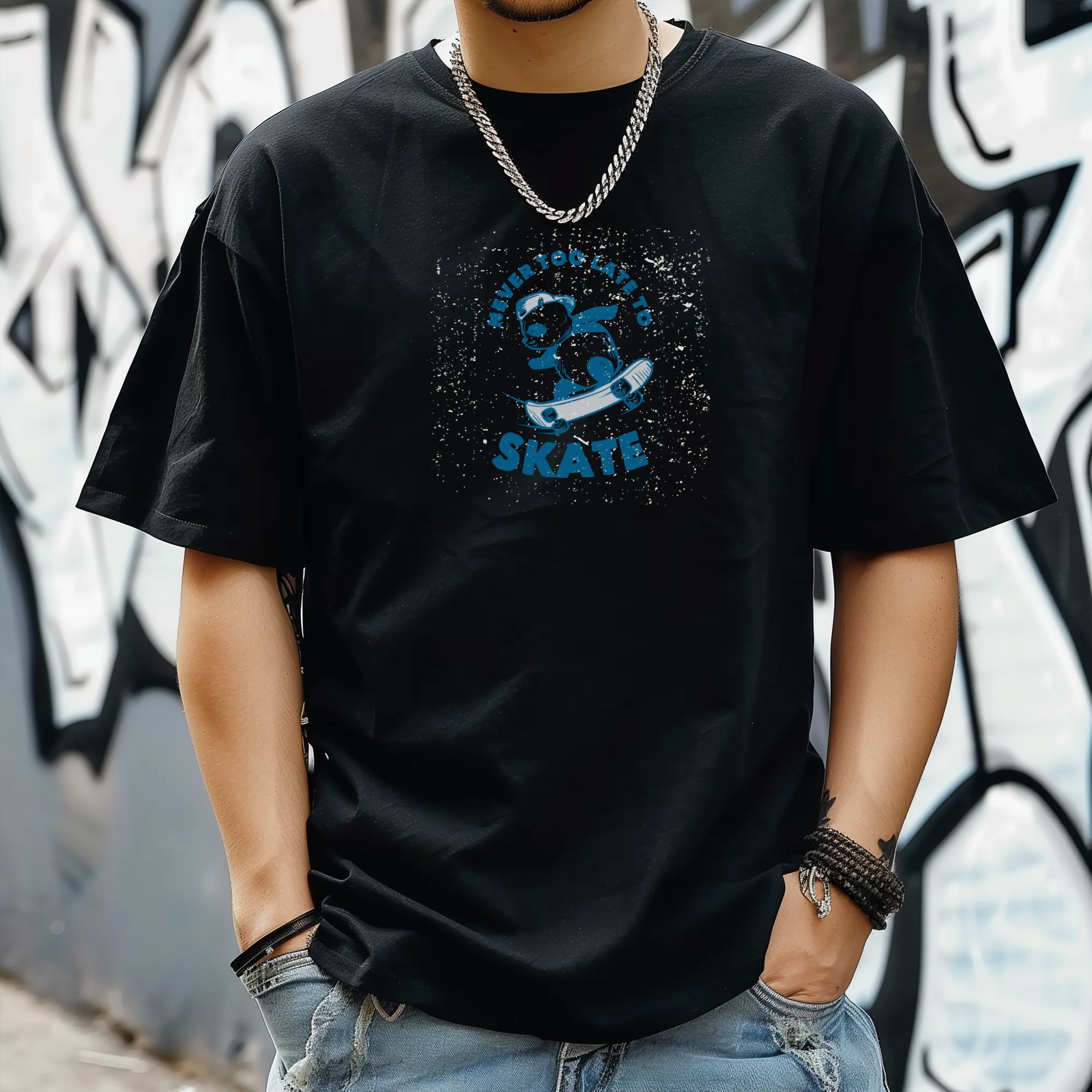 Skate Panda (1) T-Shirt for Man Tops Short Sleeves Shirt Crew Neck Shirt XS