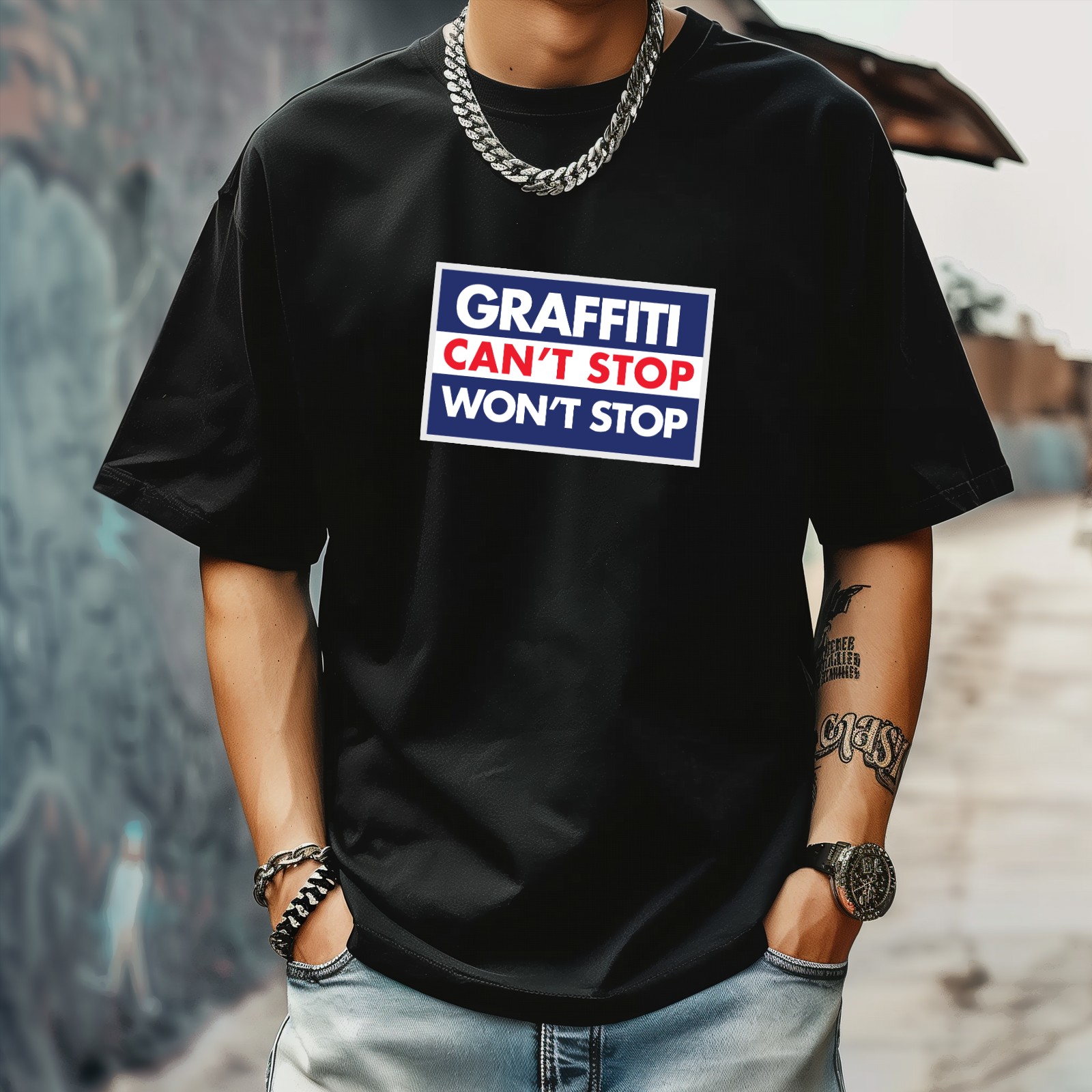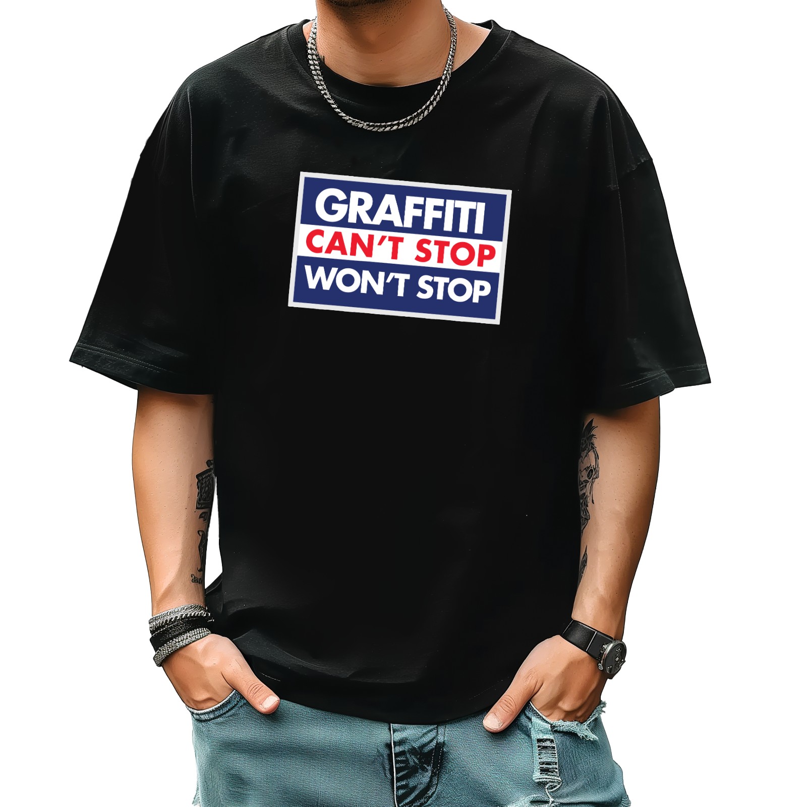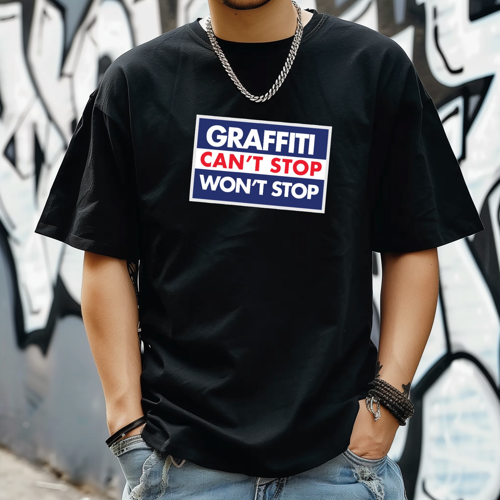 Graffm Stop T-Shirt for Man Tops Short Sleeves Shirt Crew Neck Shirt XS