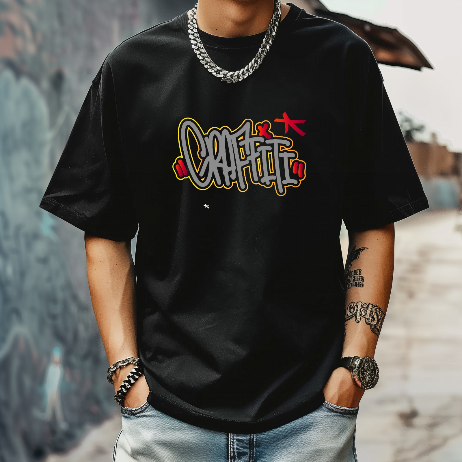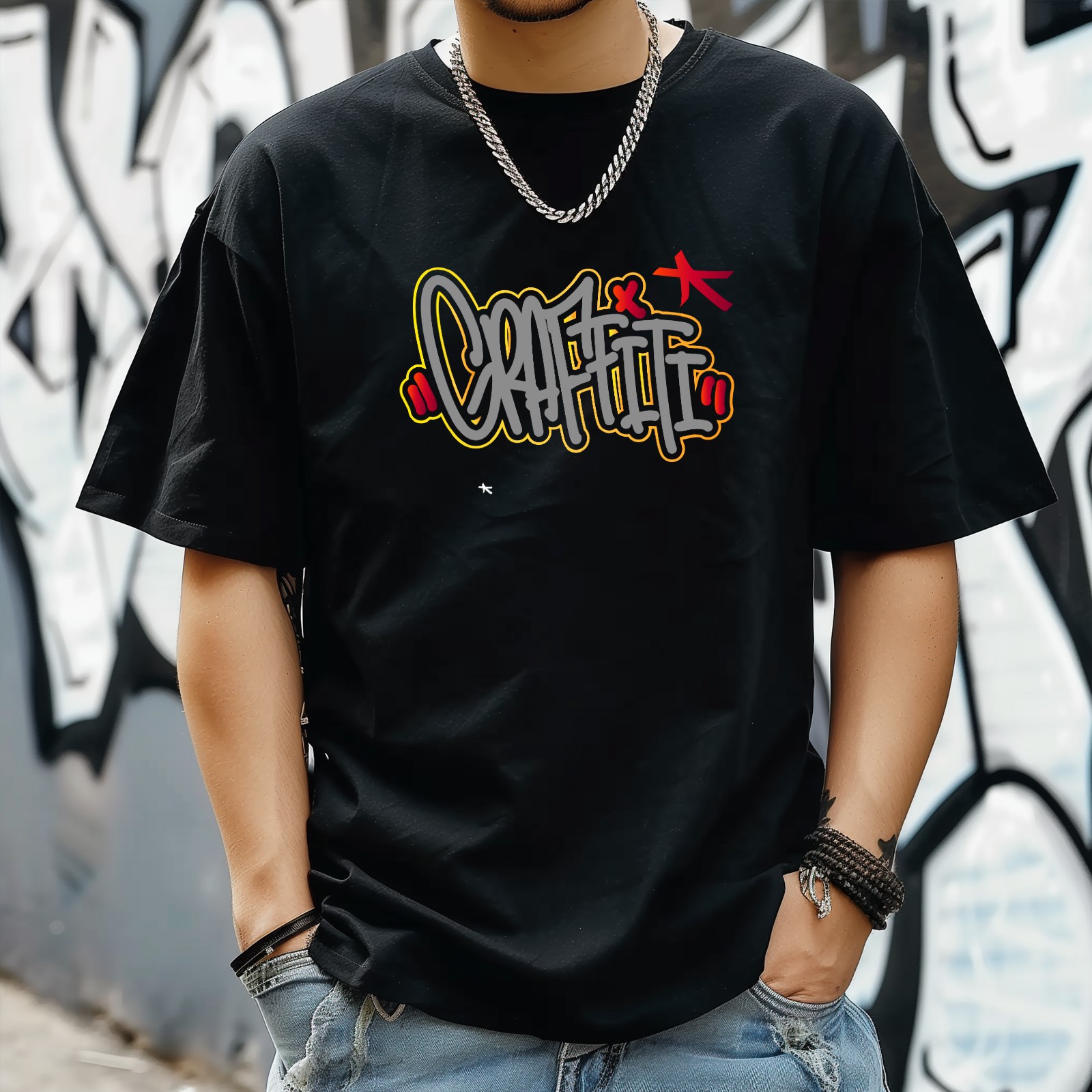 Graffiti T-Shirt for Man Tops Short Sleeves Shirt Crew Neck Shirt XS