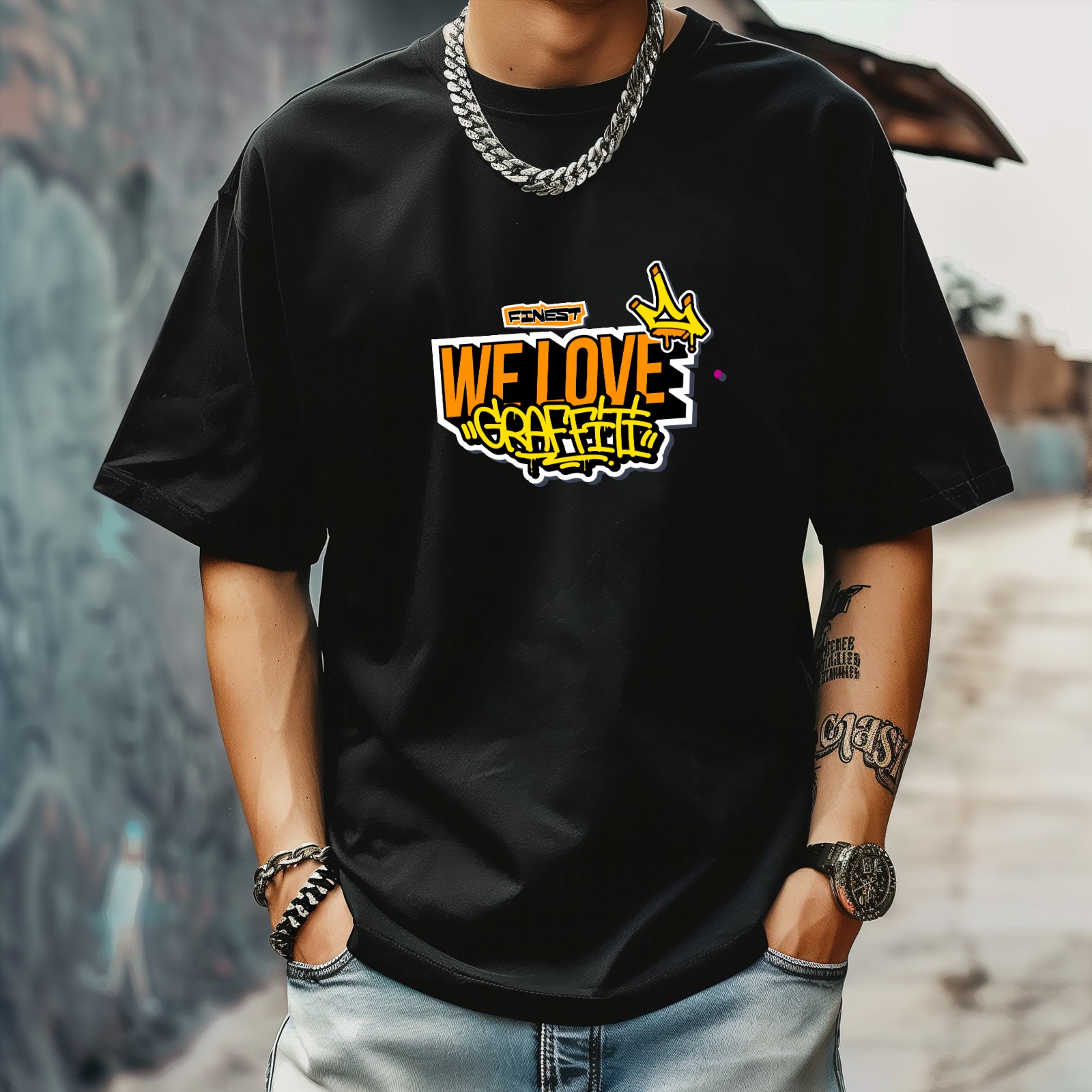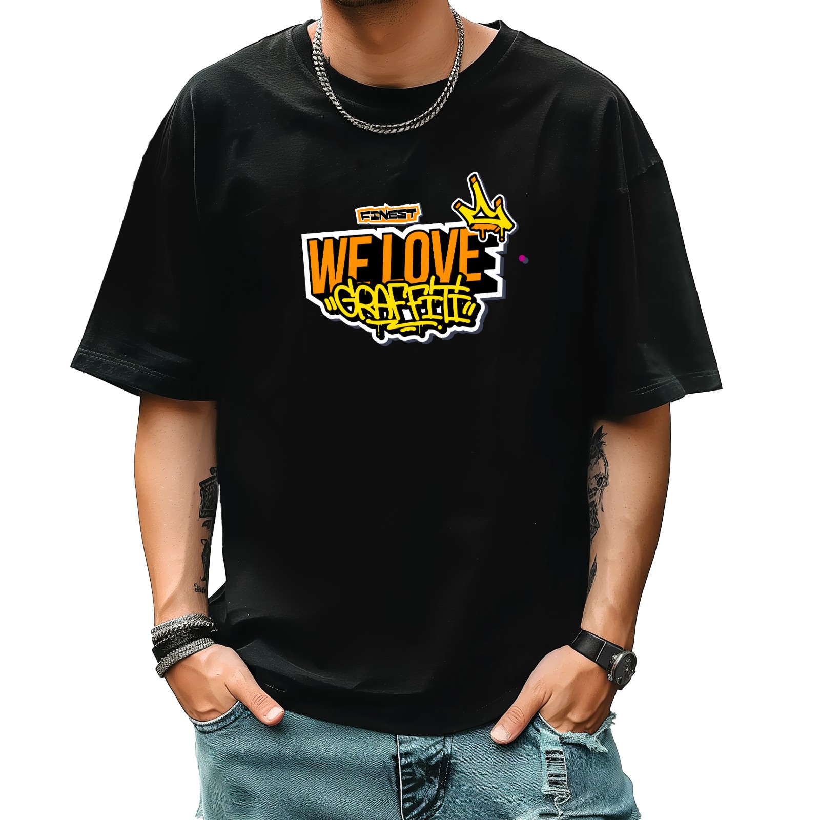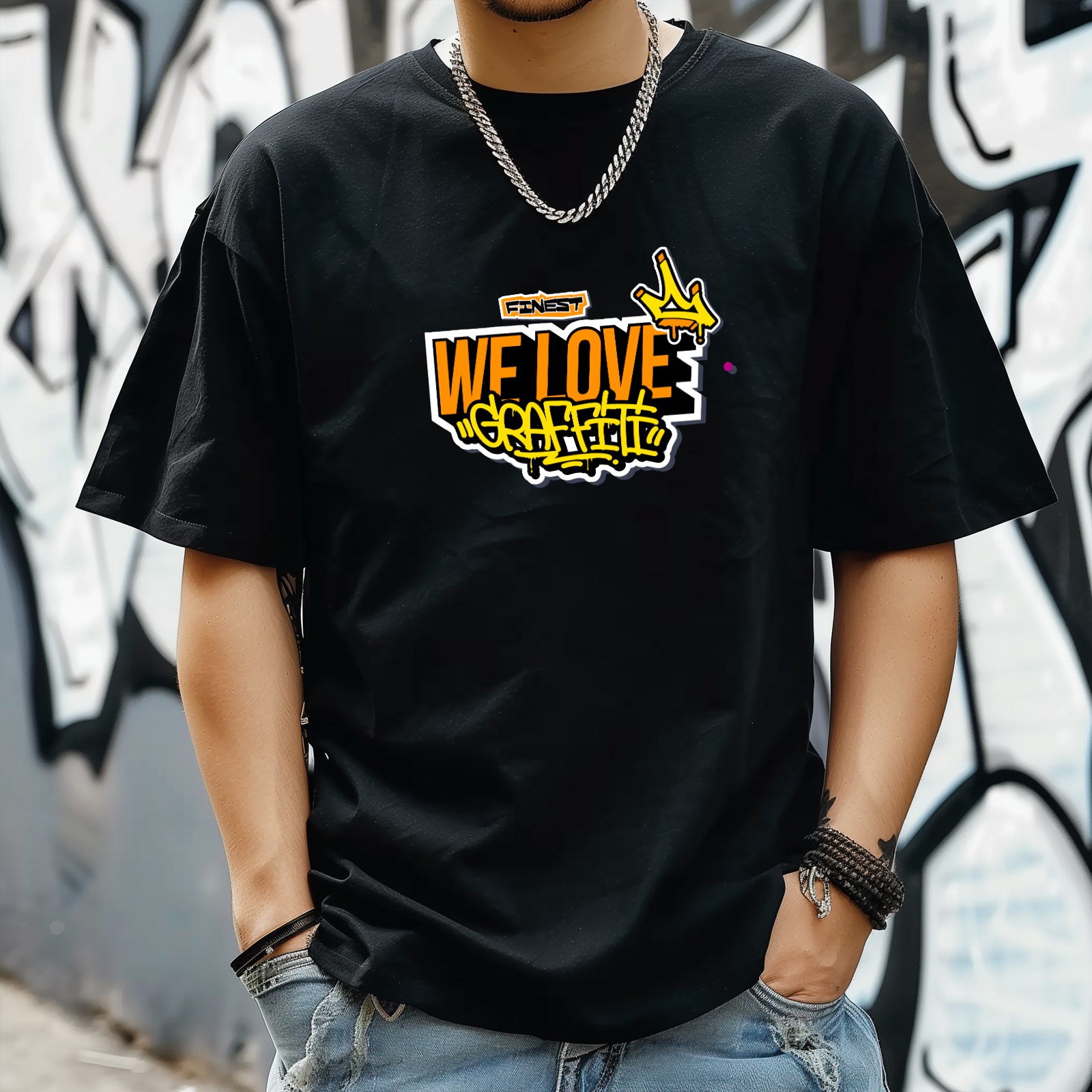 Graffiti Love T-Shirt for Man Tops Short Sleeves Shirt Crew Neck Shirt XS