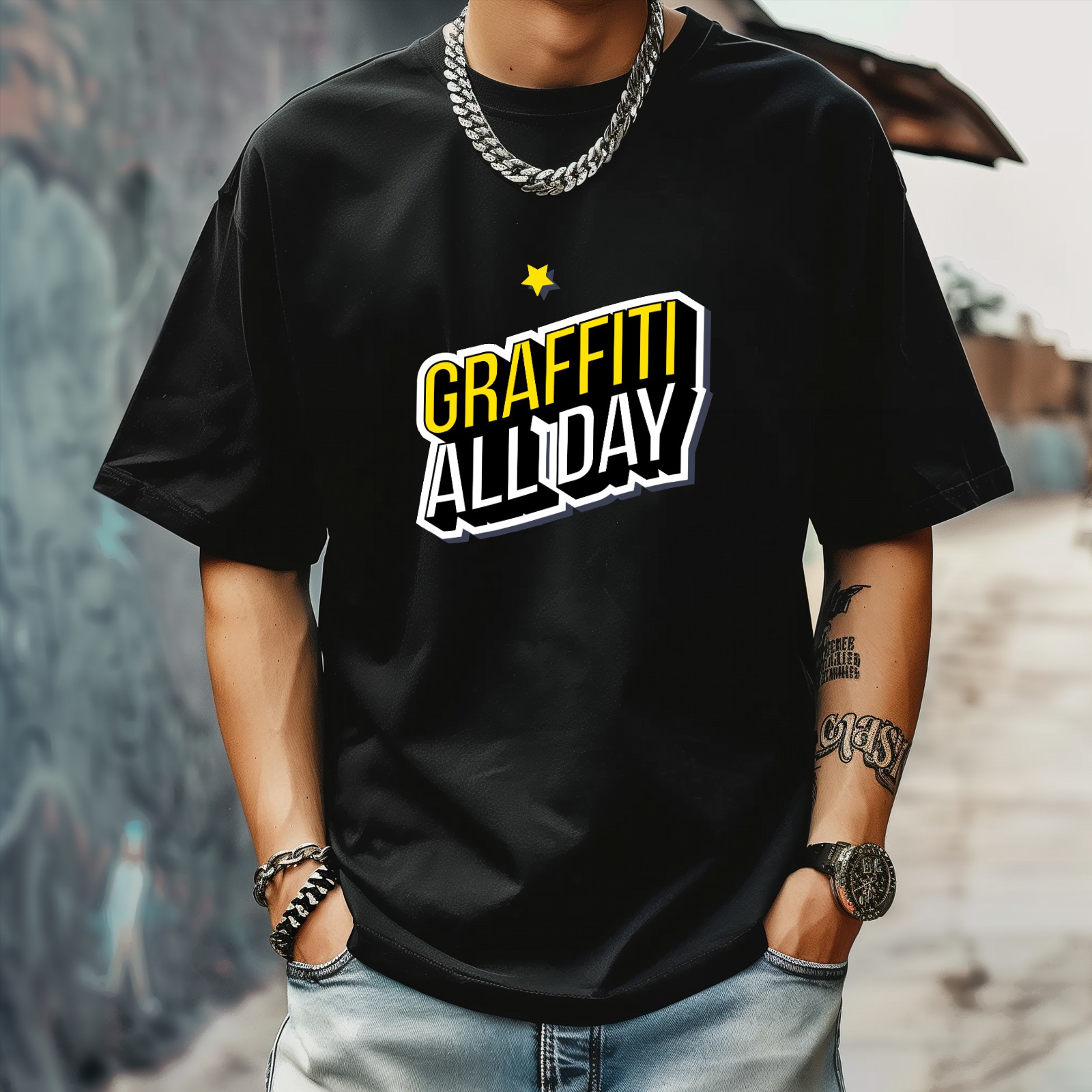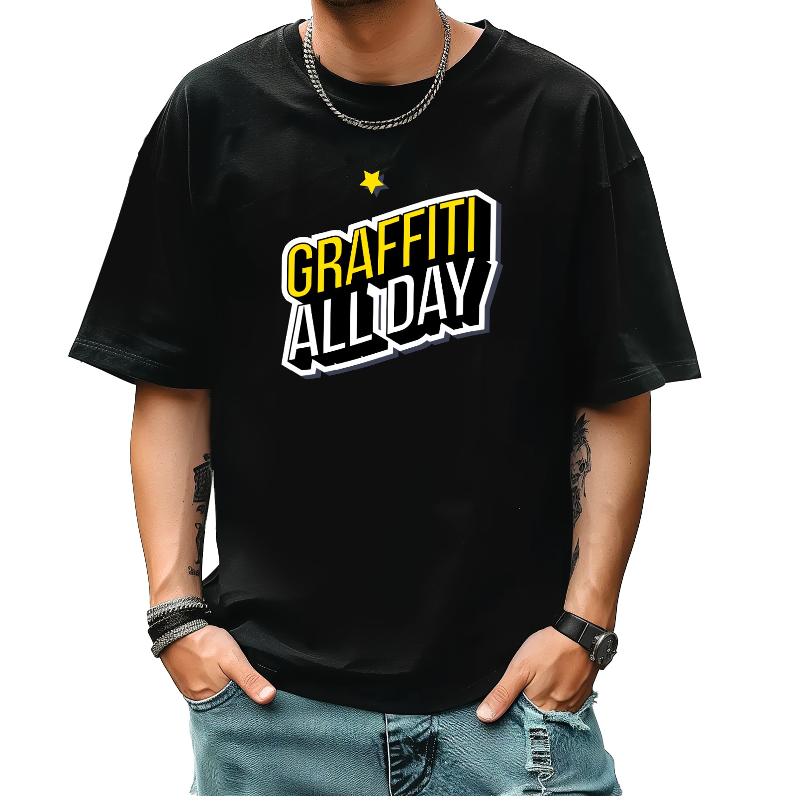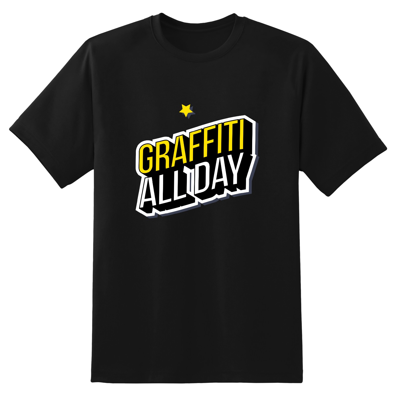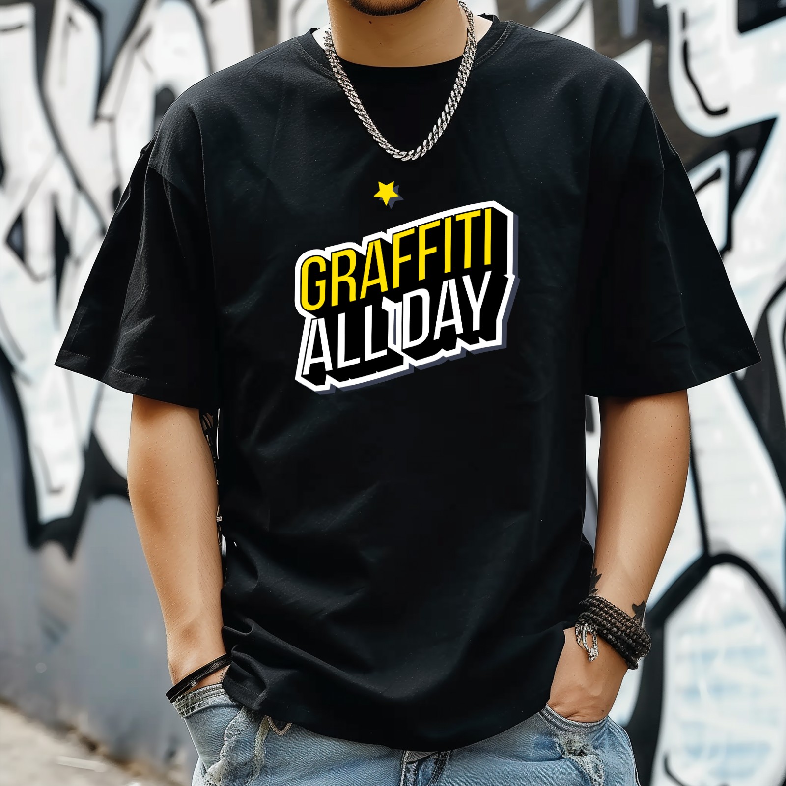 Graffiti Allday T-Shirt for Man Tops Short Sleeves Shirt Crew Neck Shirt XS