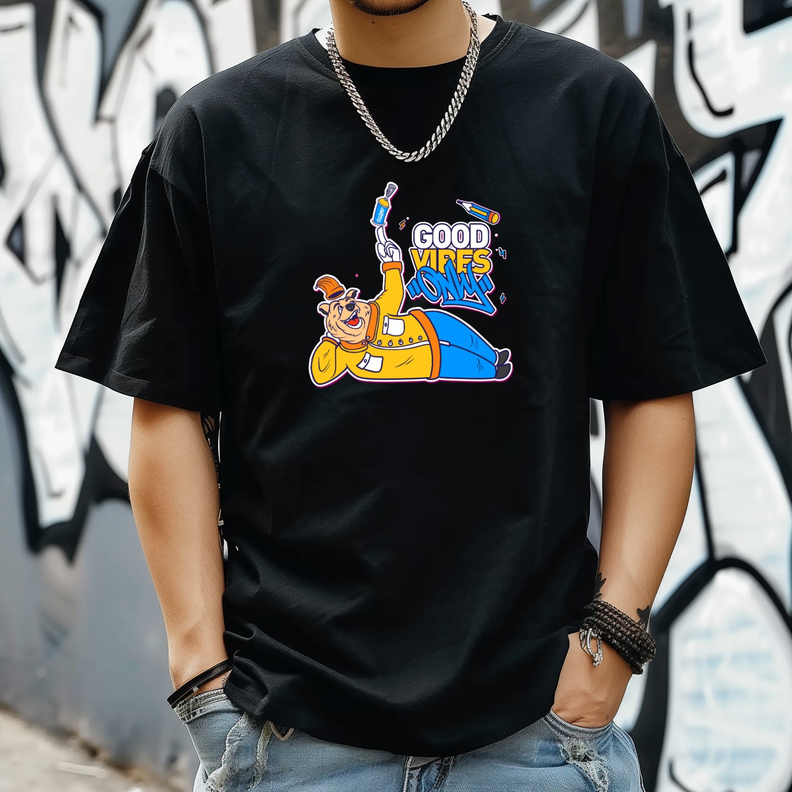 Good Vibes T-Shirt for Man Tops Short Sleeves Shirt Crew Neck Shirt XS
