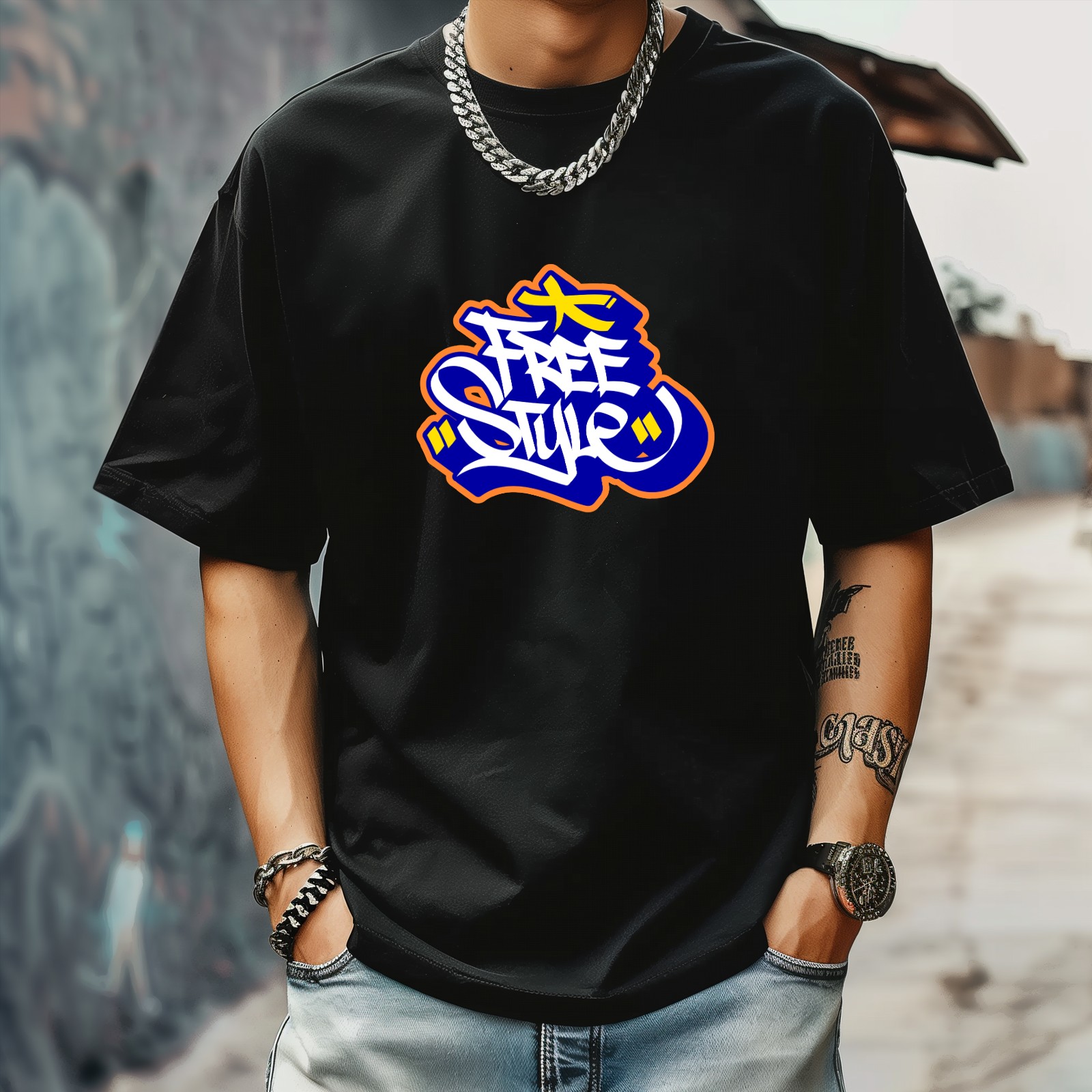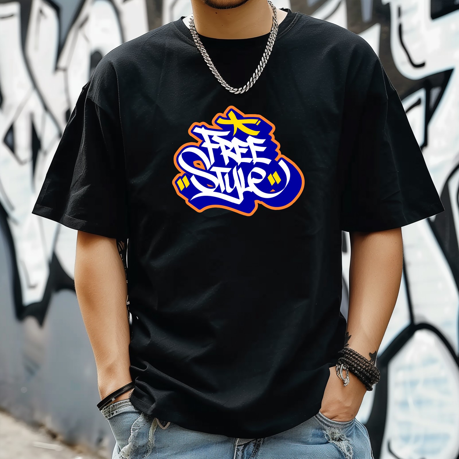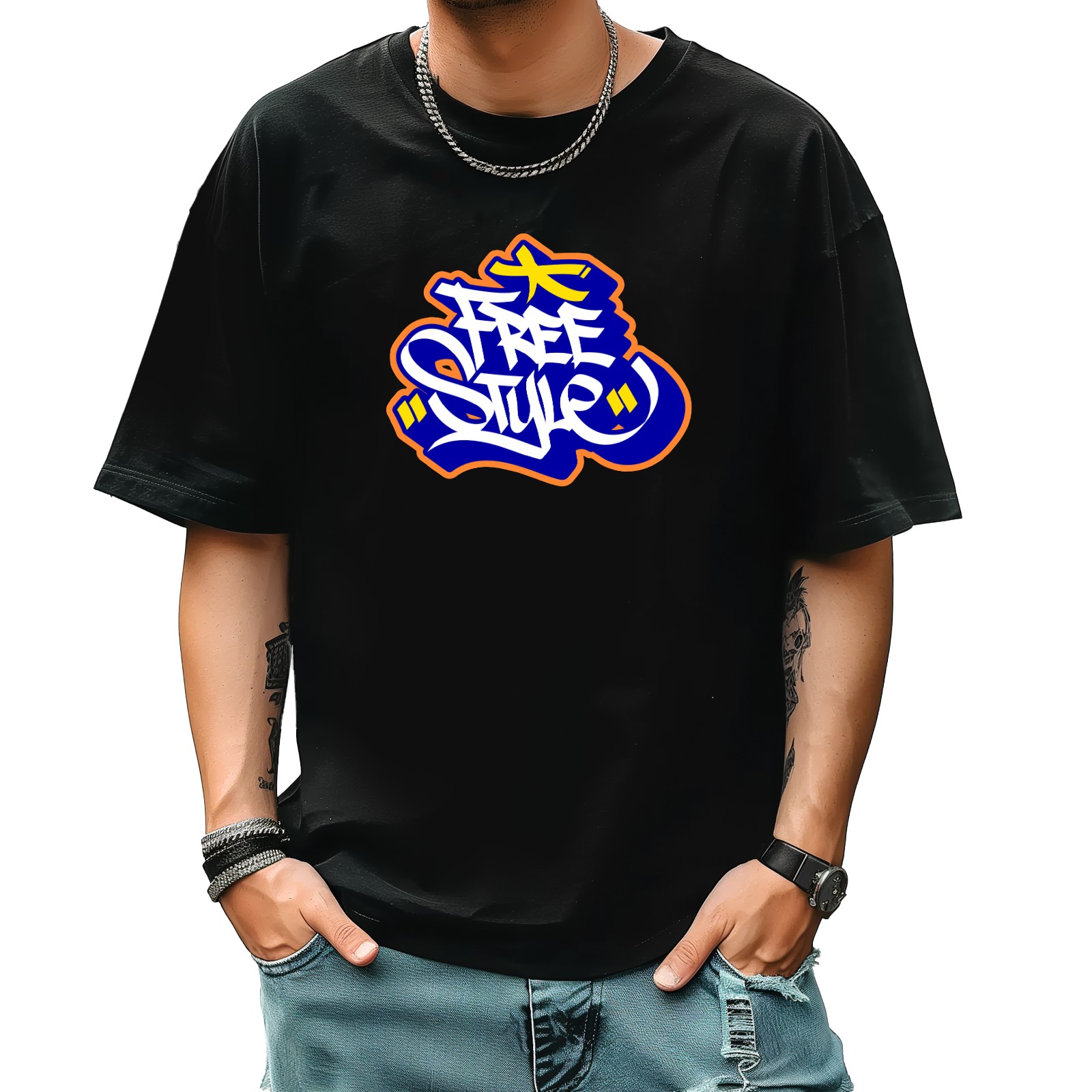 Free Style (2) T-Shirt for Man Tops Short Sleeves Shirt Crew Neck Shirt XS