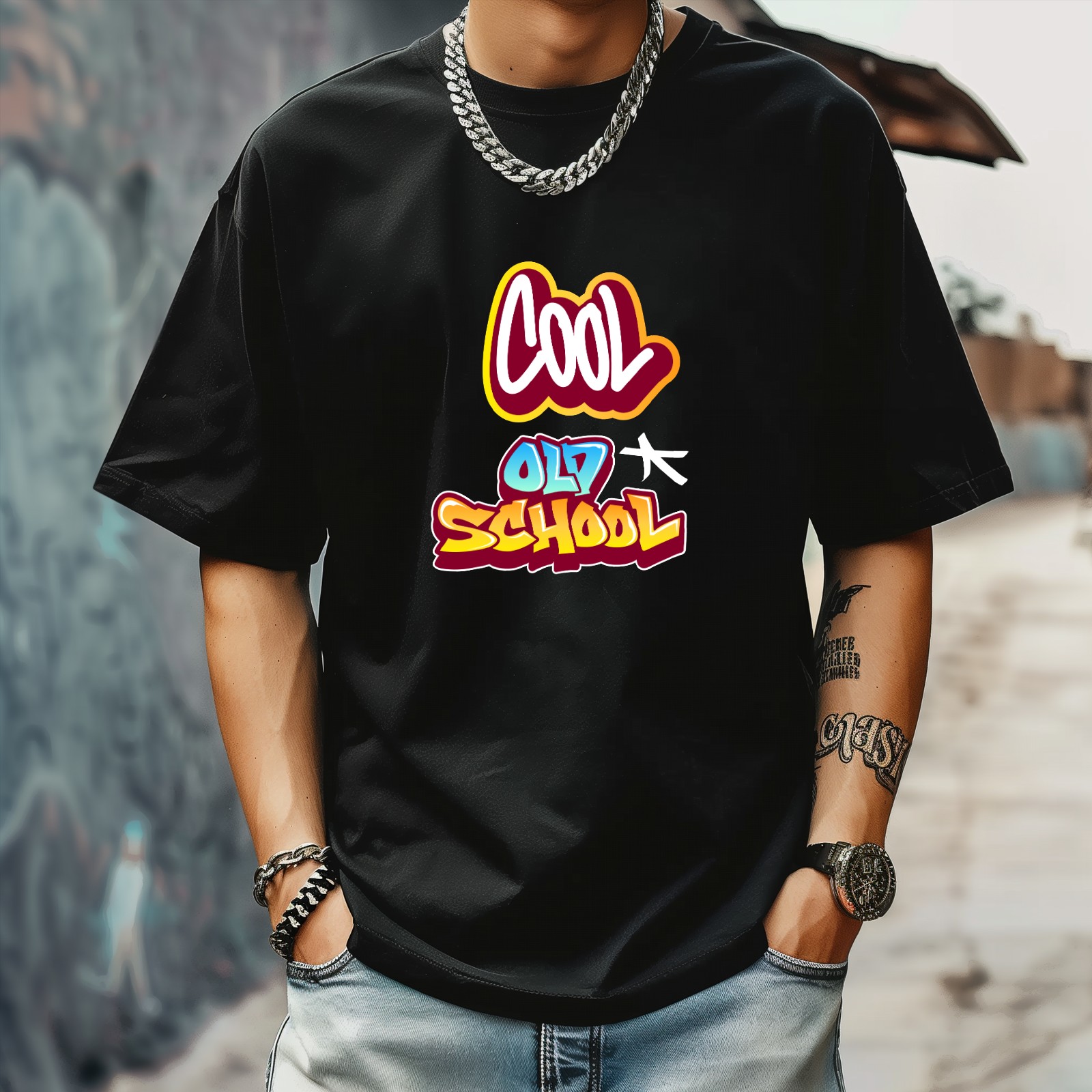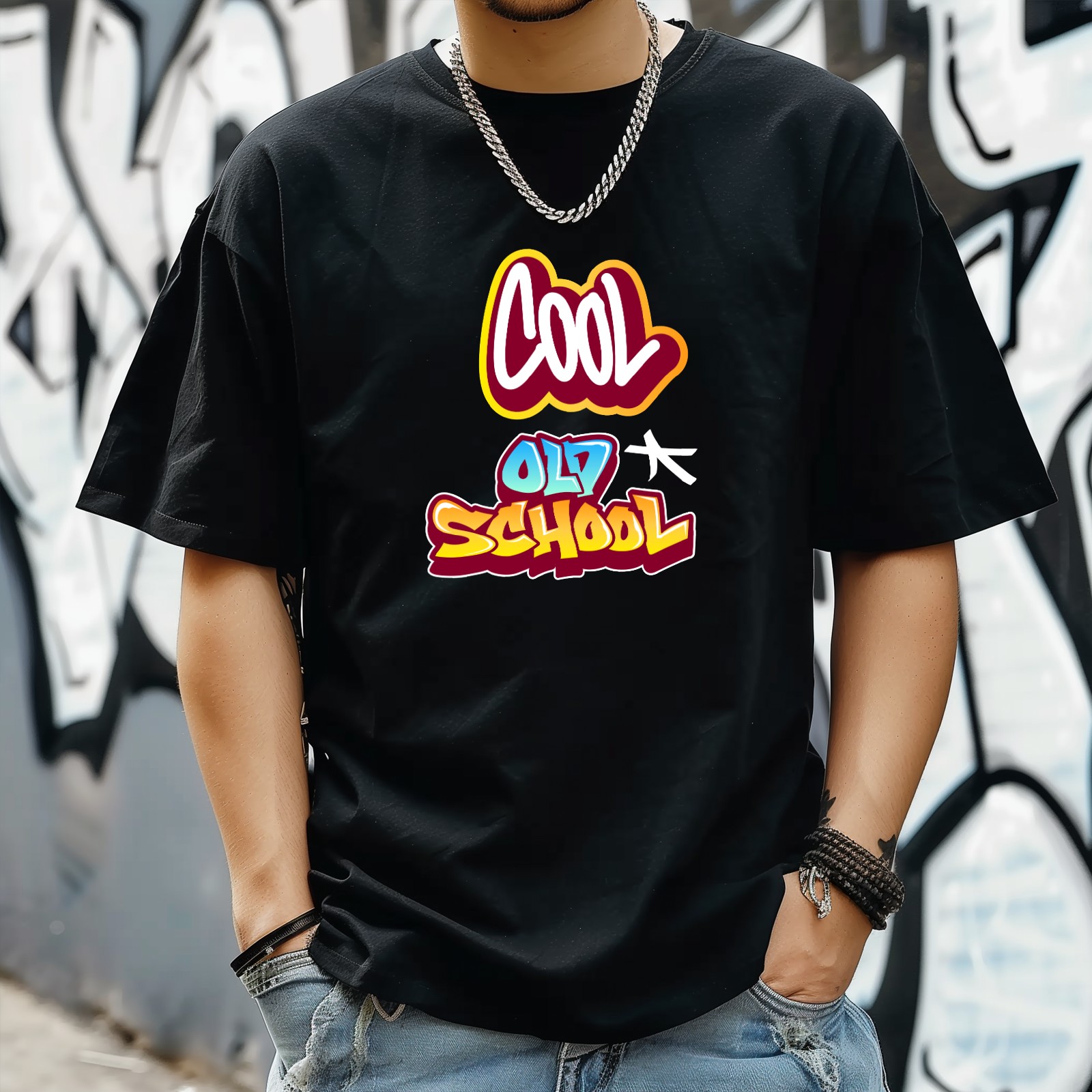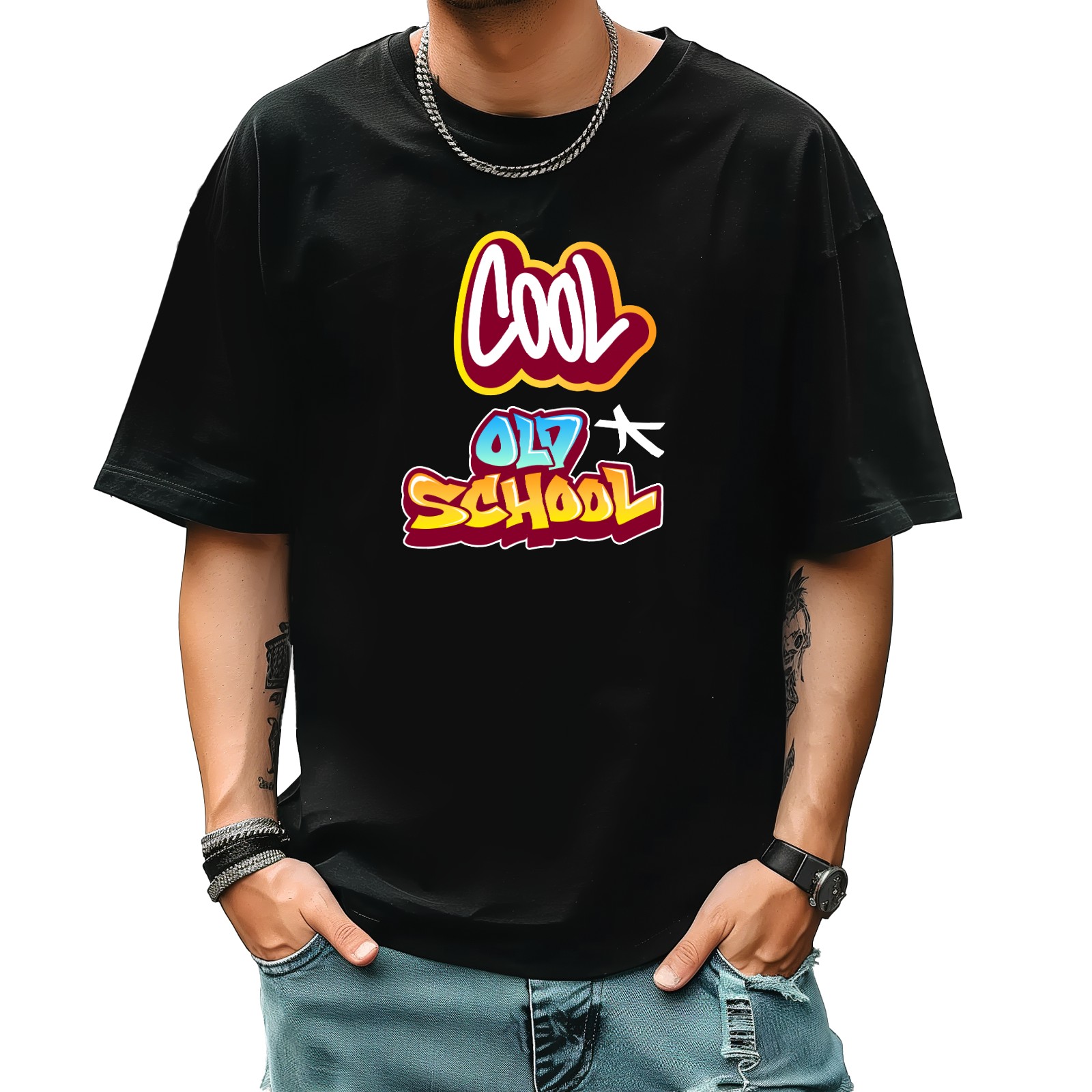 Cool Old School T-Shirt for Man Tops Short Sleeves Shirt Crew Neck Shirt XS