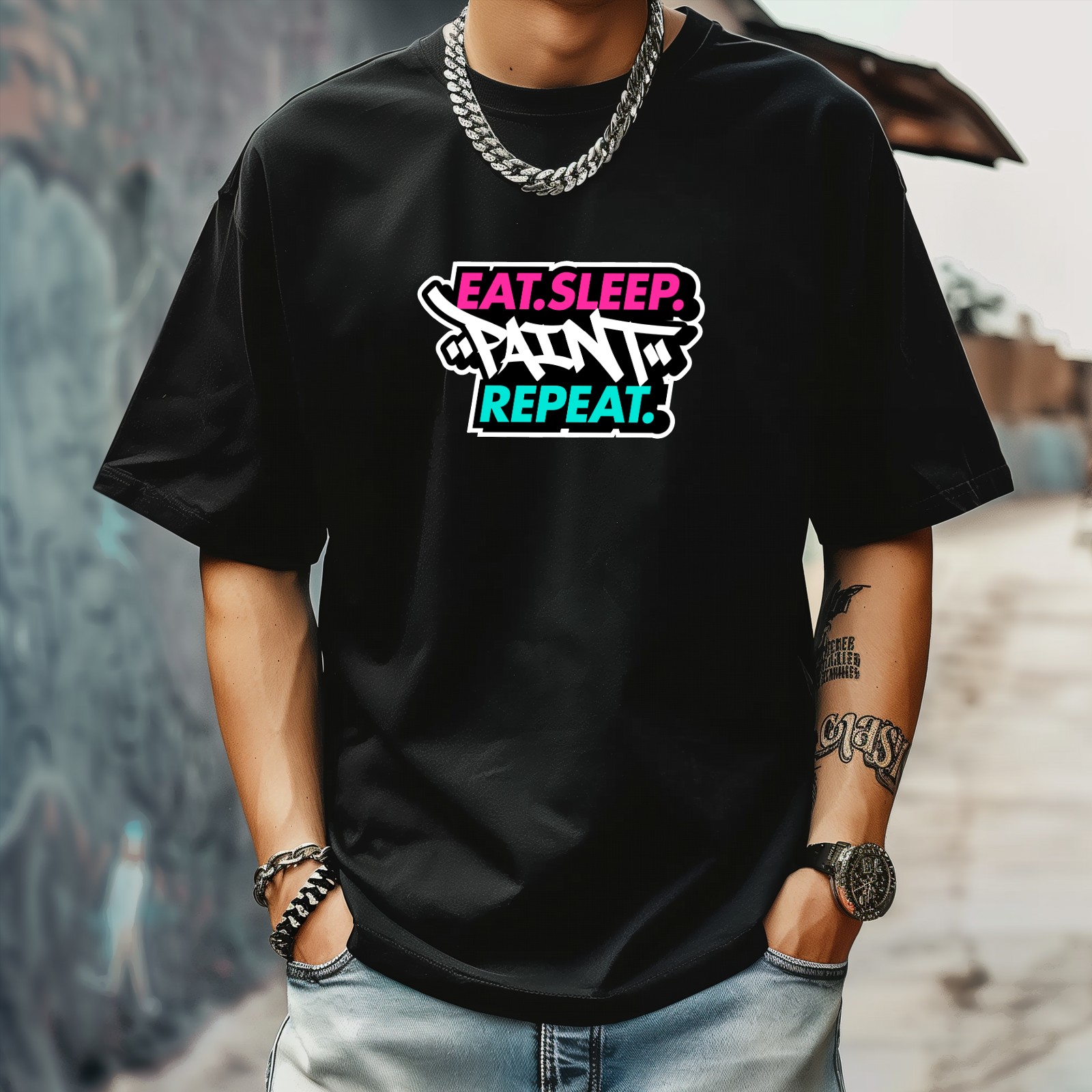 Eat Sleep T-Shirt for Man Tops Short Sleeves Shirt Crew Neck Shirt XS