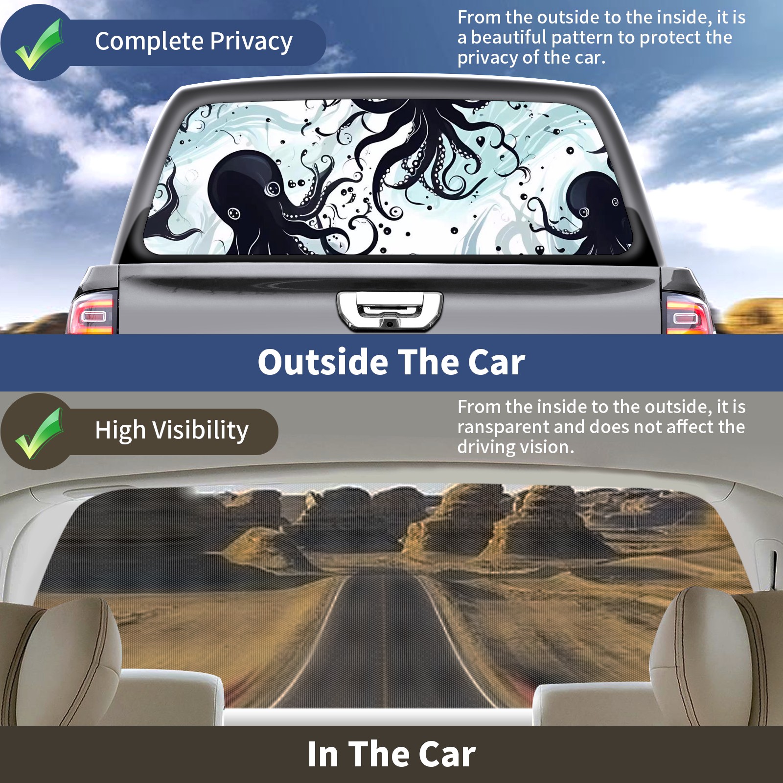 Truck Rear Window Graphics Decals Pickup Trucks Back Window Sticker Full Window Film Decal One Way Visual Waterproof Car Rear Tint Octopus