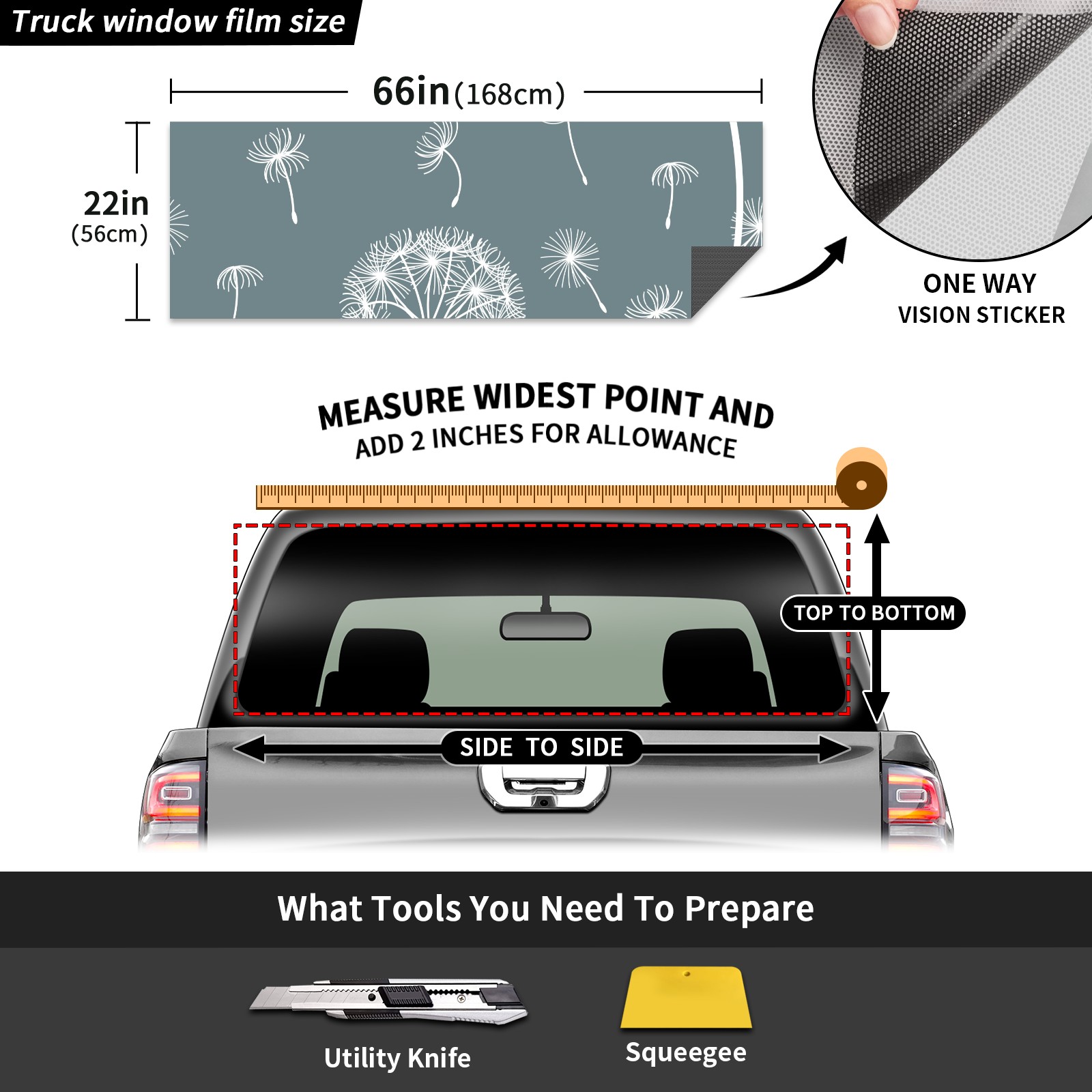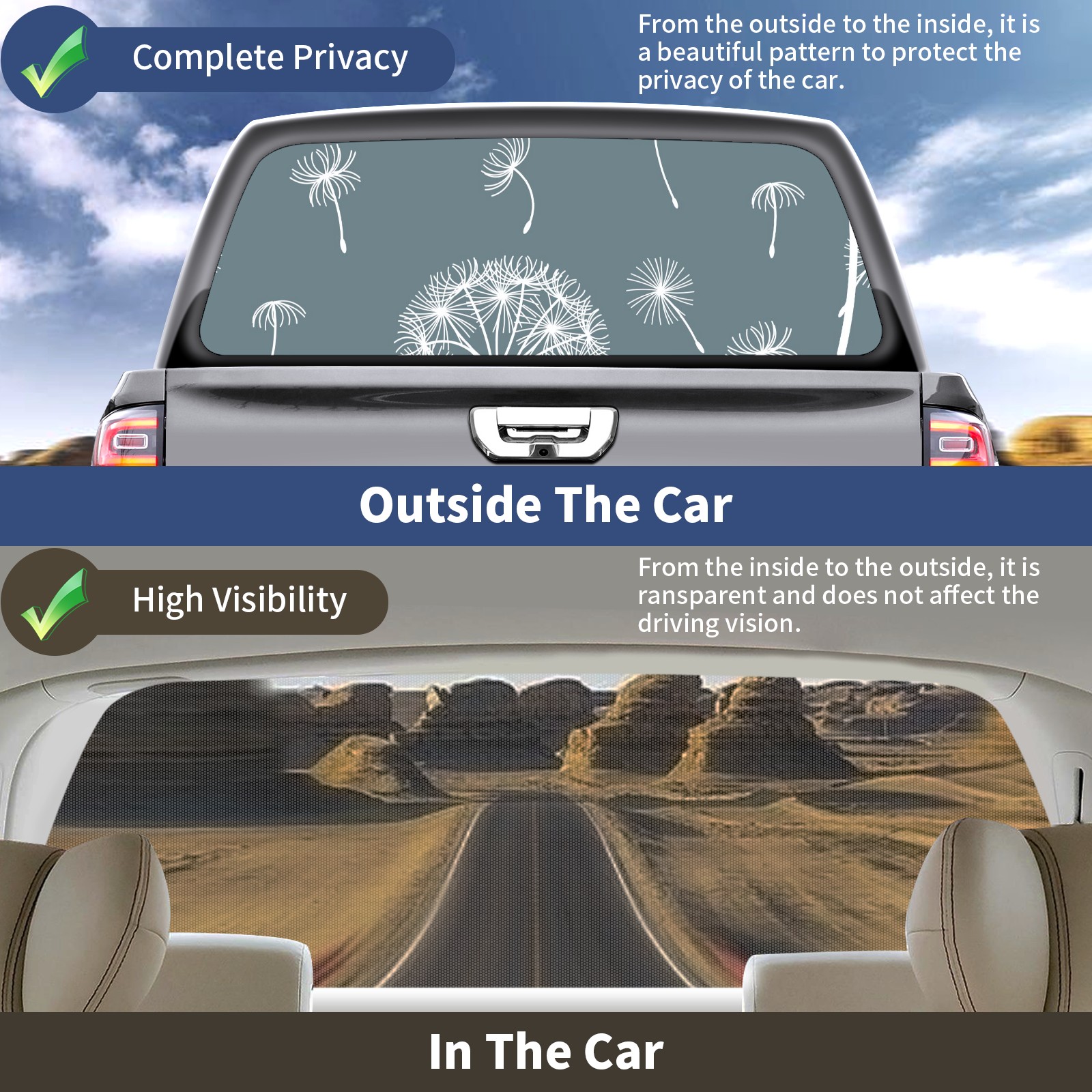 Truck Rear Window Graphics Decals Pickup Trucks Back Window Sticker Full Window Film Decal One Way Visual Waterproof Car Rear Tint Dandelions