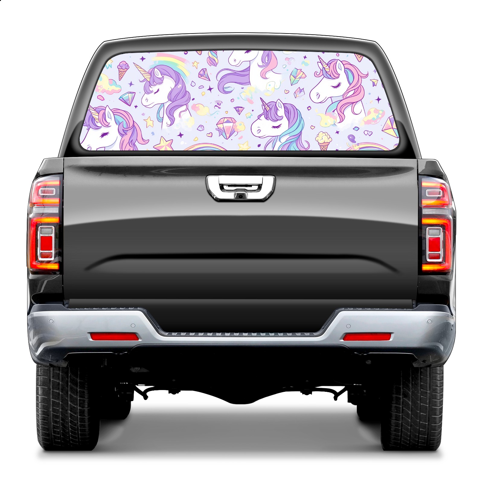 Truck Rear Window Graphics Decals Pickup Trucks Back Window Sticker Full Window Film Decal One Way Visual Waterproof Car Rear Tint Rainbow Horse