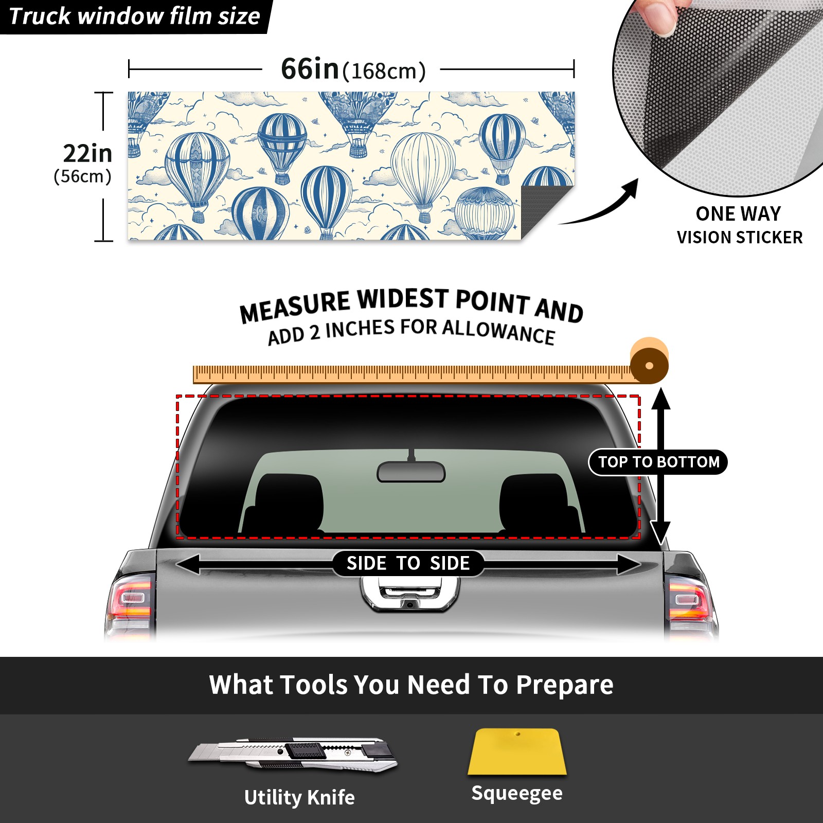 Truck Rear Window Graphics Decals Pickup Trucks Back Window Sticker Full Window Film Decal One Way Visual Waterproof Car Rear Tint Blue Balloon
