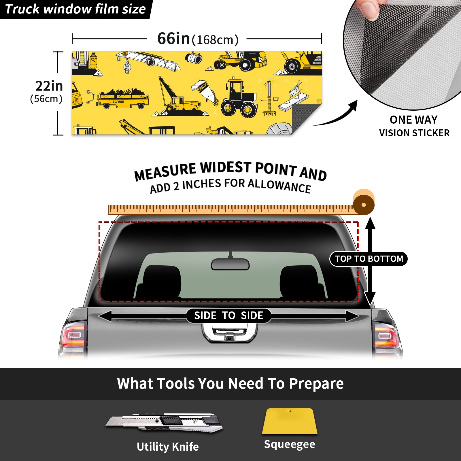 Truck Rear Window Graphics Decals Pickup Trucks Back Window Sticker Full Window Film Decal One Way Visual Waterproof Car Rear Tint Toy Car