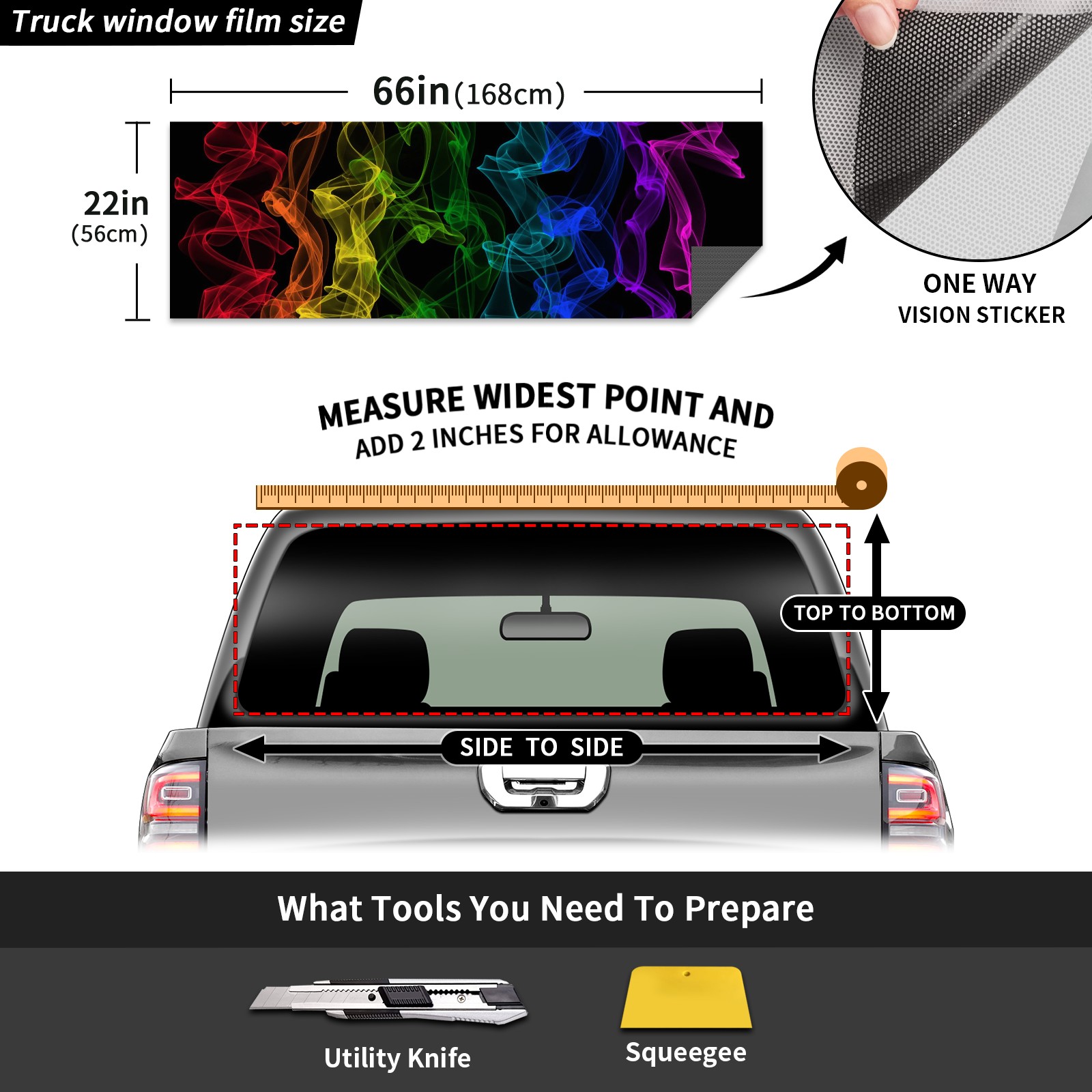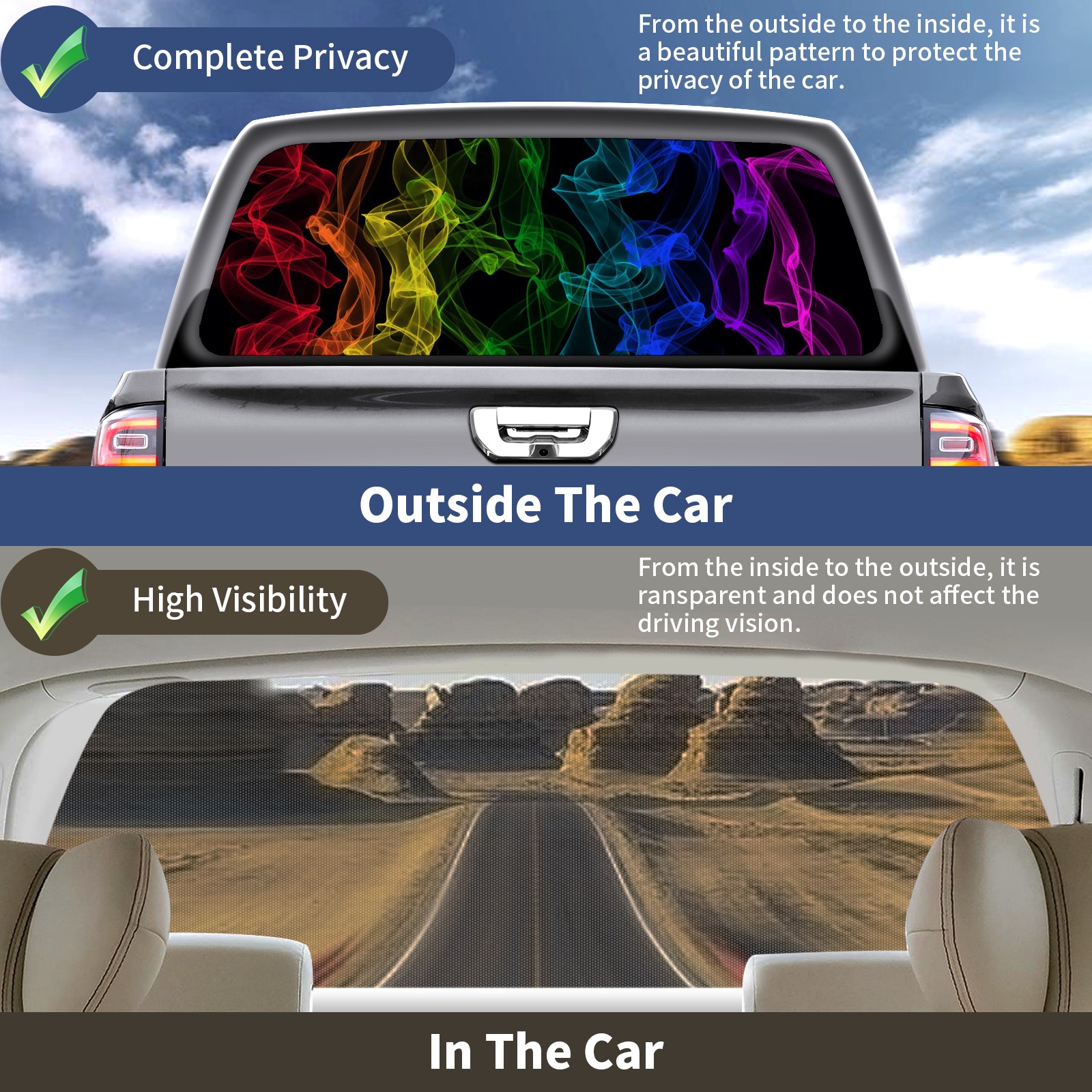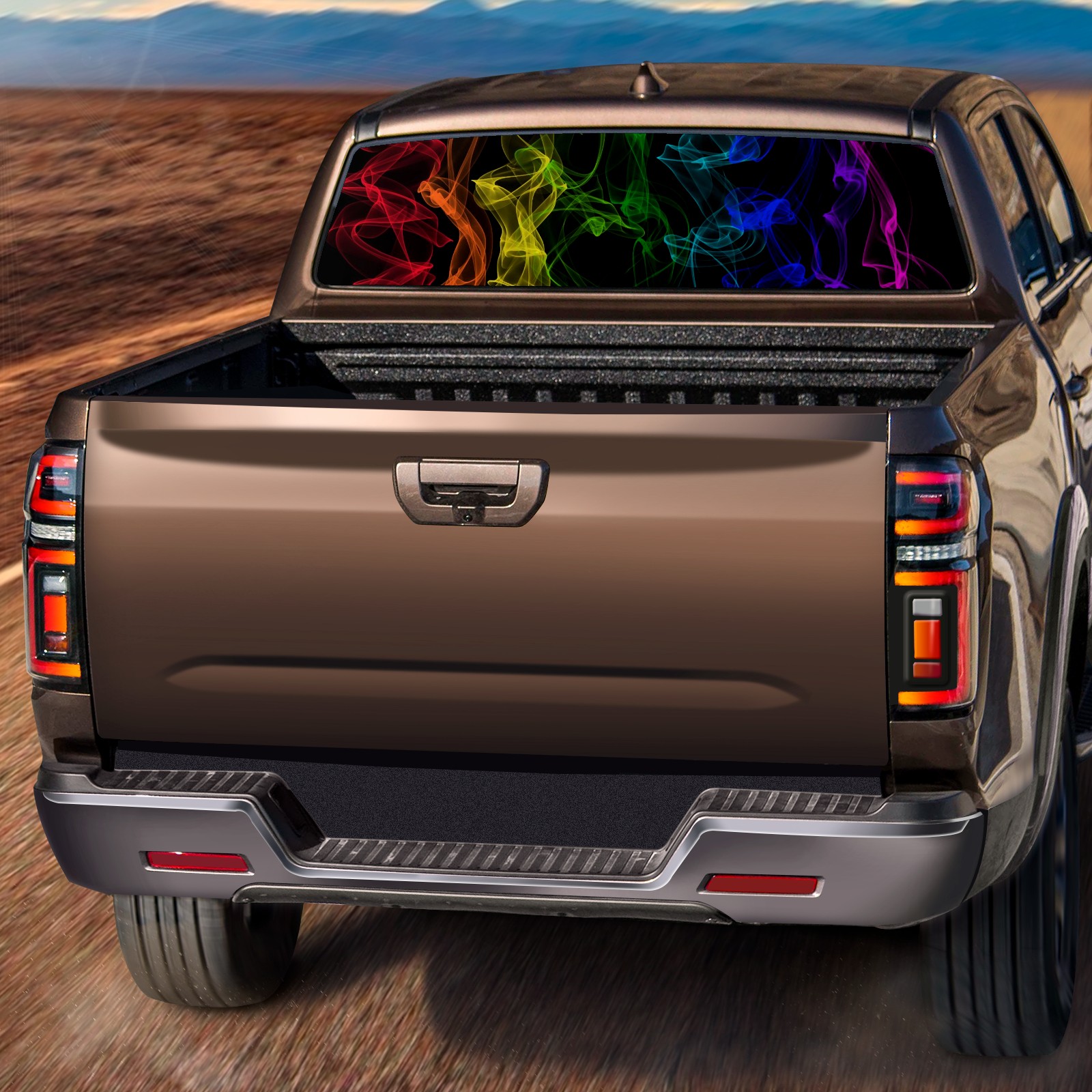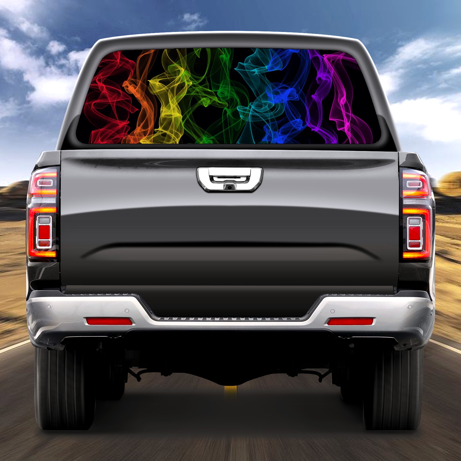 Truck Rear Window Graphics Decals Pickup Trucks Back Window Sticker Full Window Film Decal One Way Visual Waterproof Car Rear Tint Rainbow-4829847