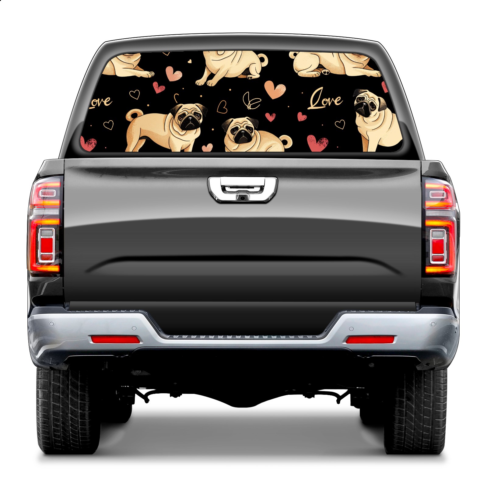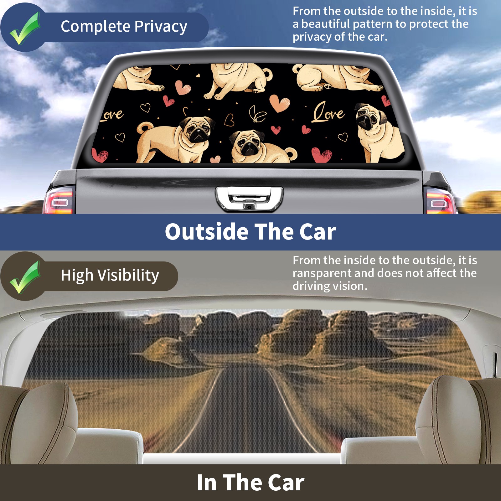 Truck Rear Window Graphics Decals Pickup Trucks Back Window Sticker Full Window Film Decal One Way Visual Waterproof Car Rear Tint Puppdog