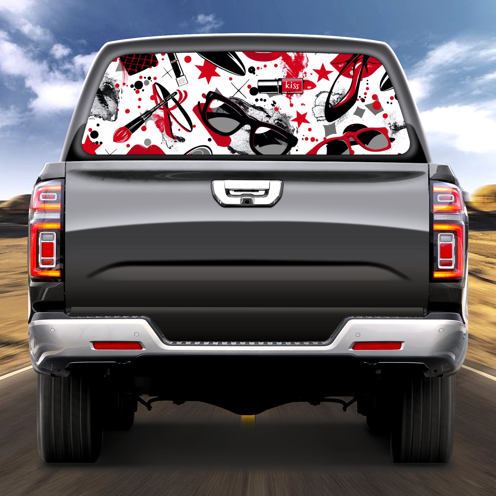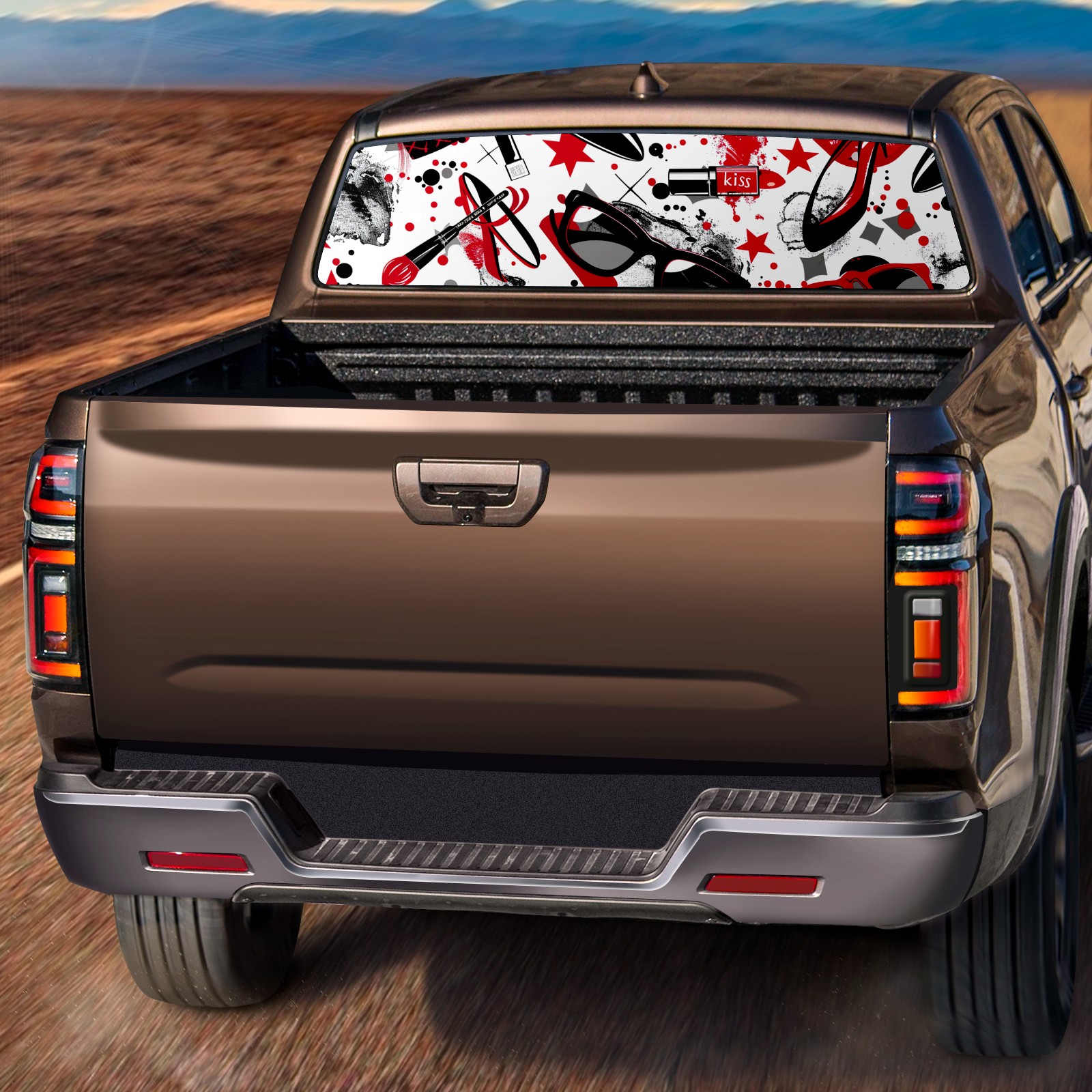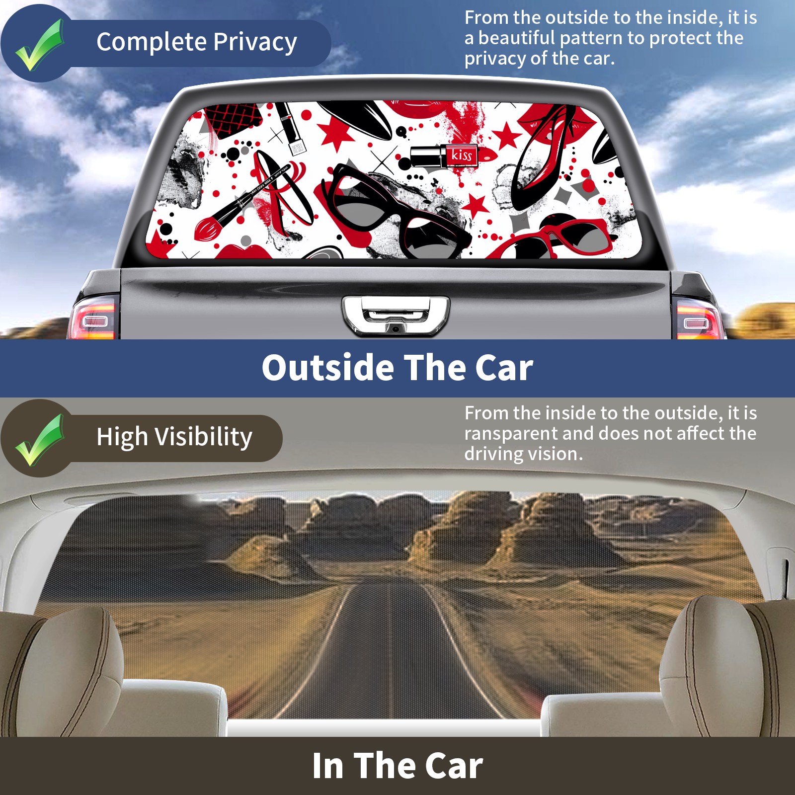 Truck Rear Window Graphics Decals Pickup Trucks Back Window Sticker Full Window Film Decal One Way Visual Waterproof Car Rear Tint Red Lips