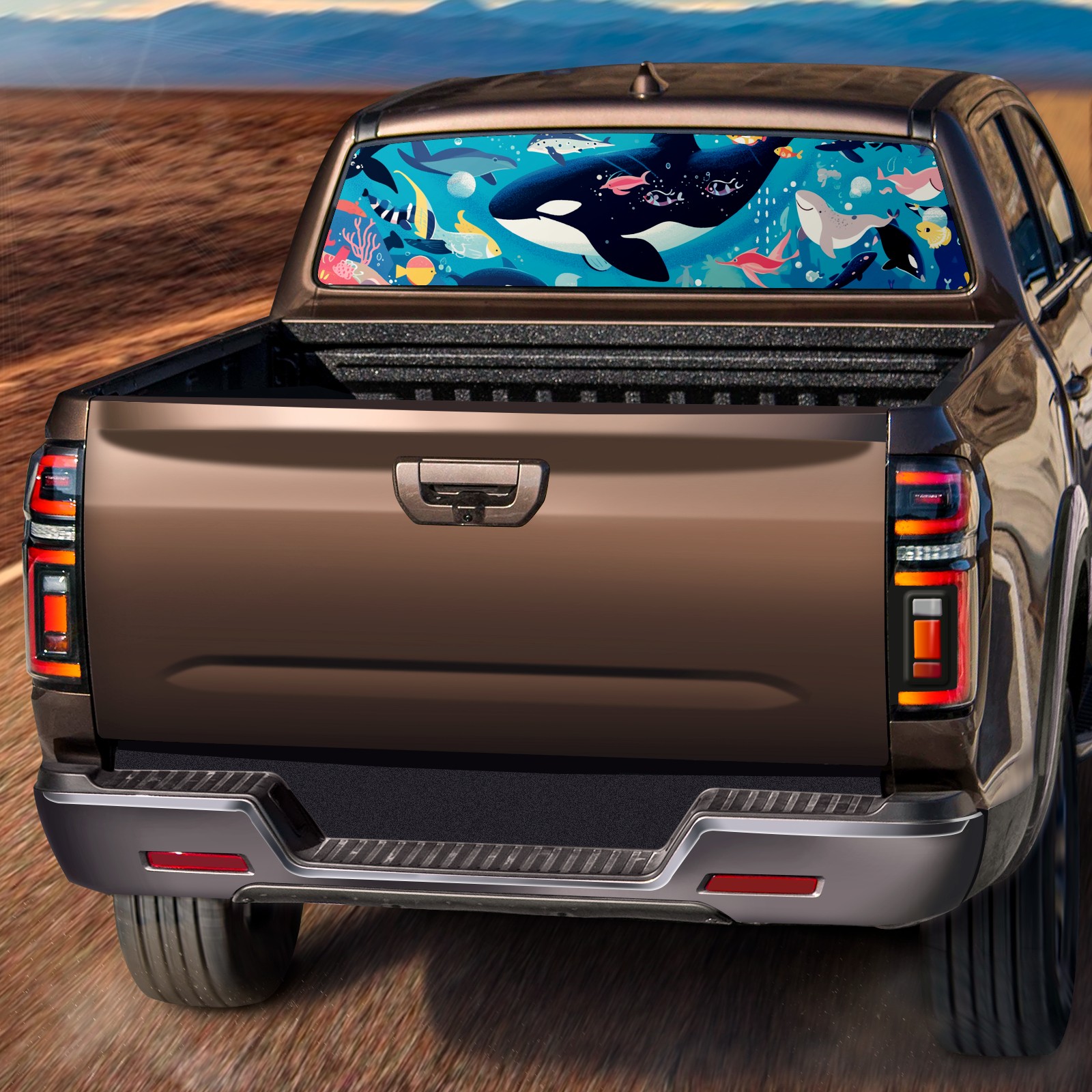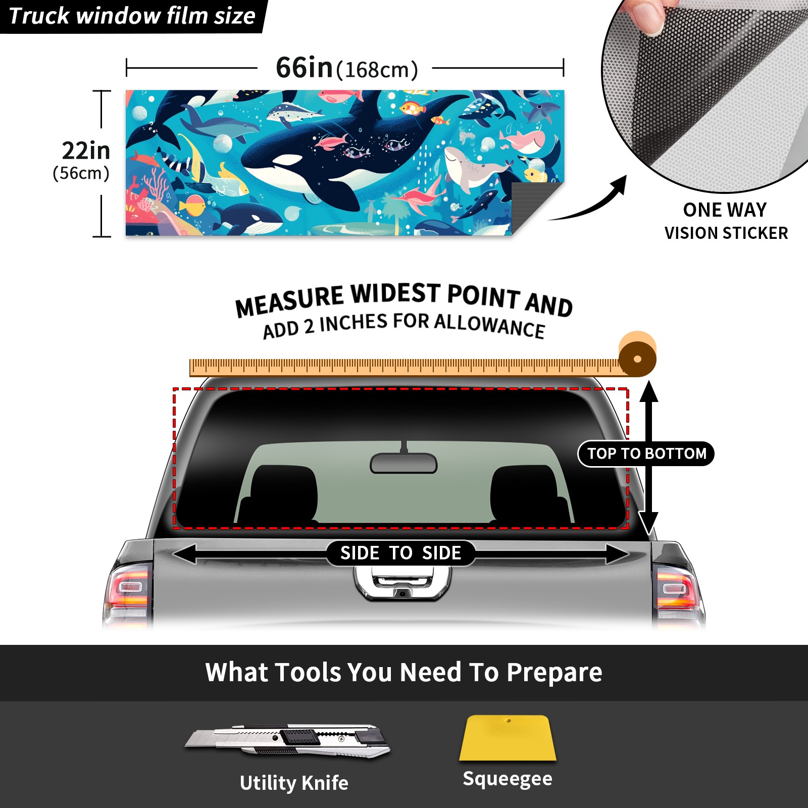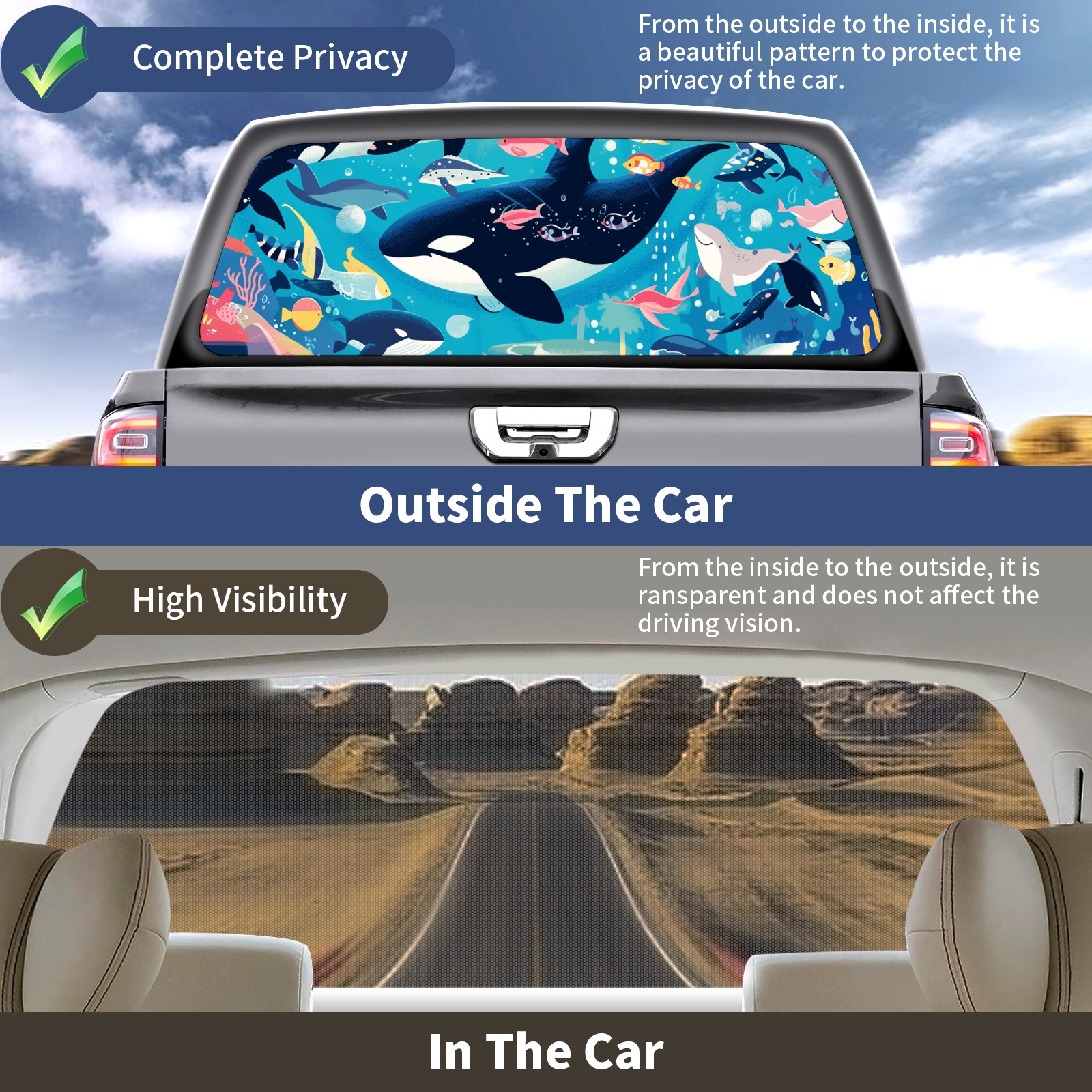 Truck Rear Window Graphics Decals Pickup Trucks Back Window Sticker Full Window Film Decal One Way Visual Waterproof Car Rear Tint Whale