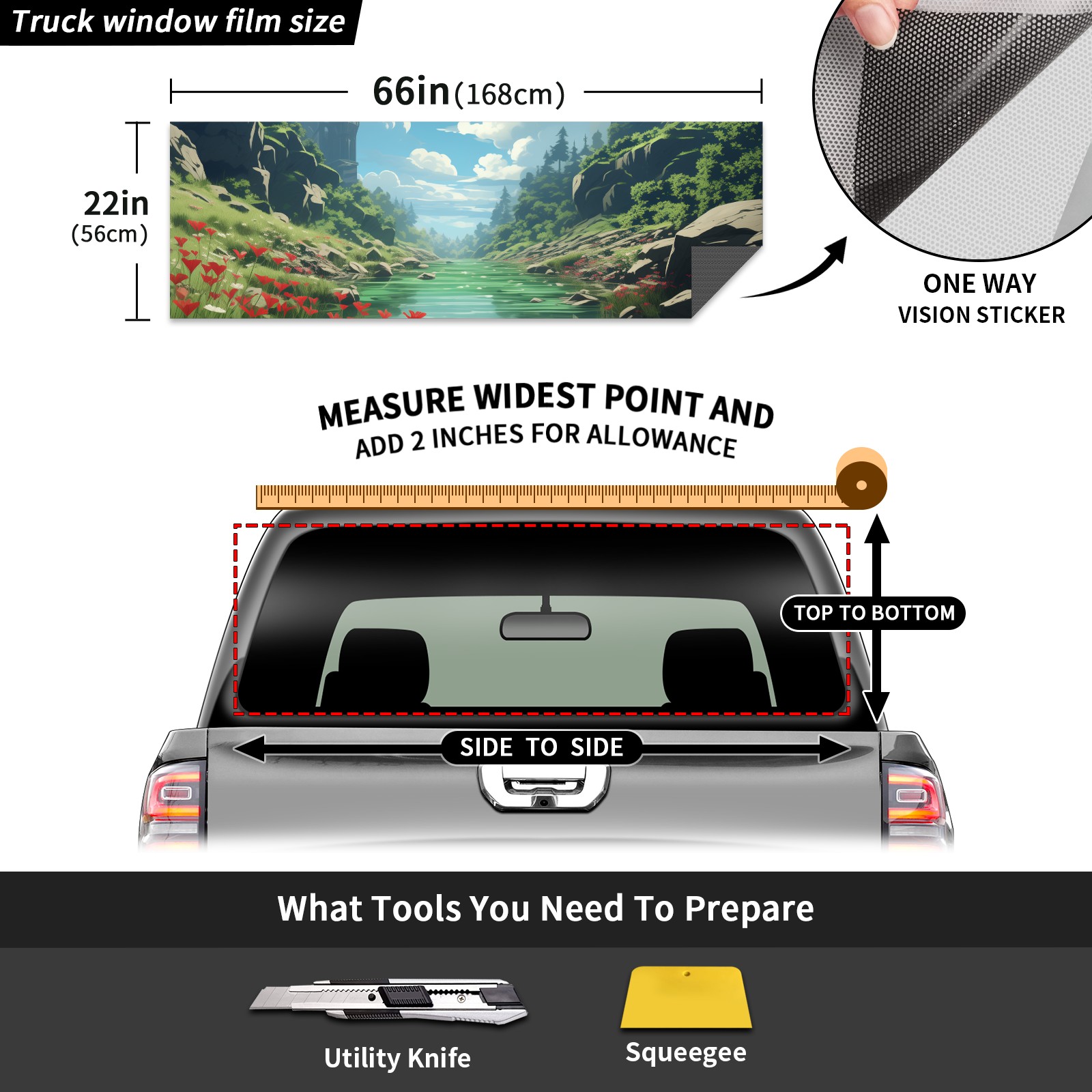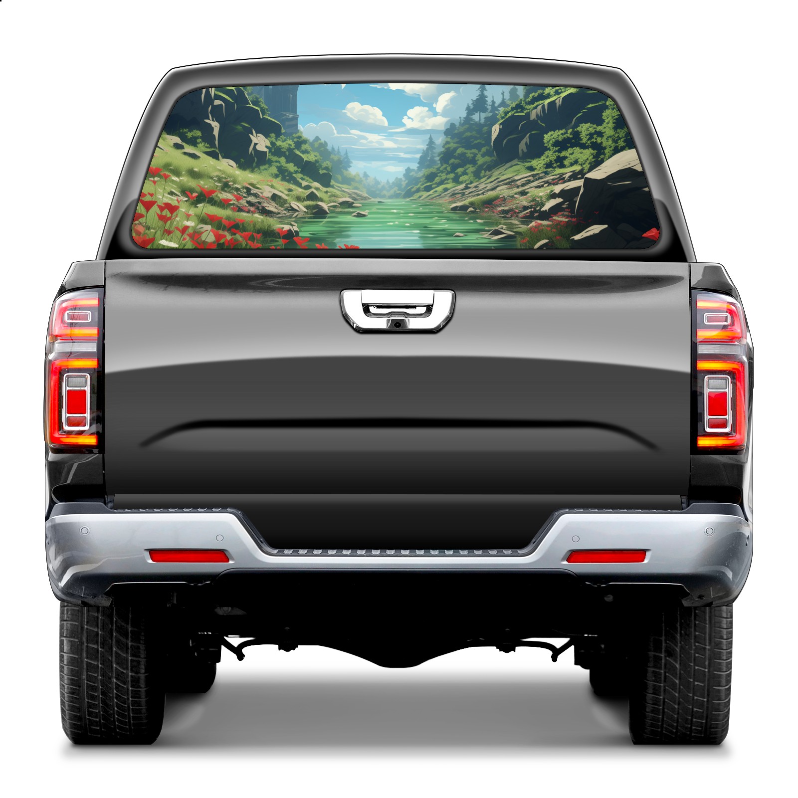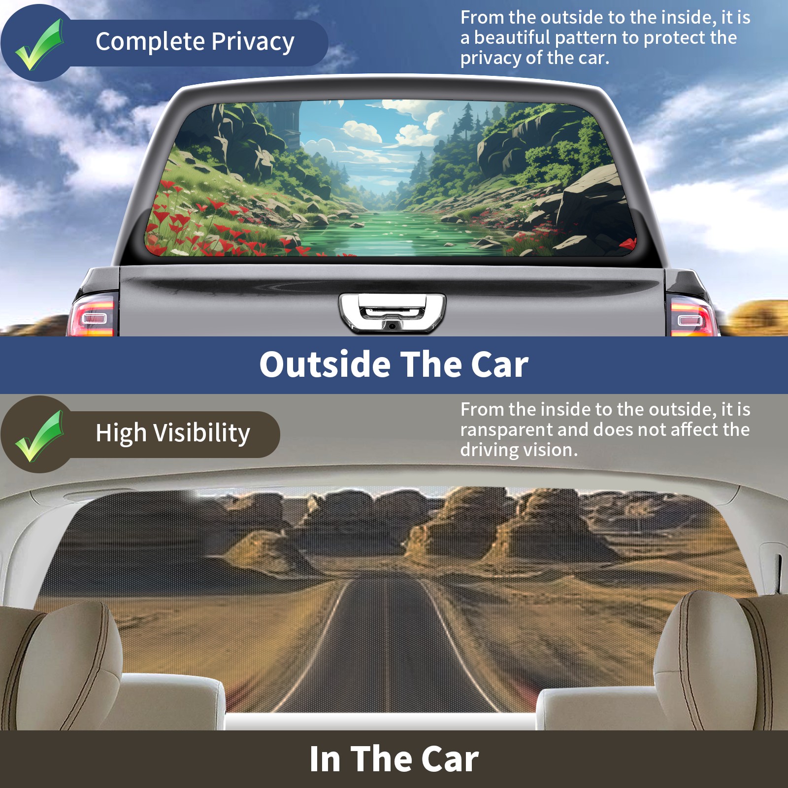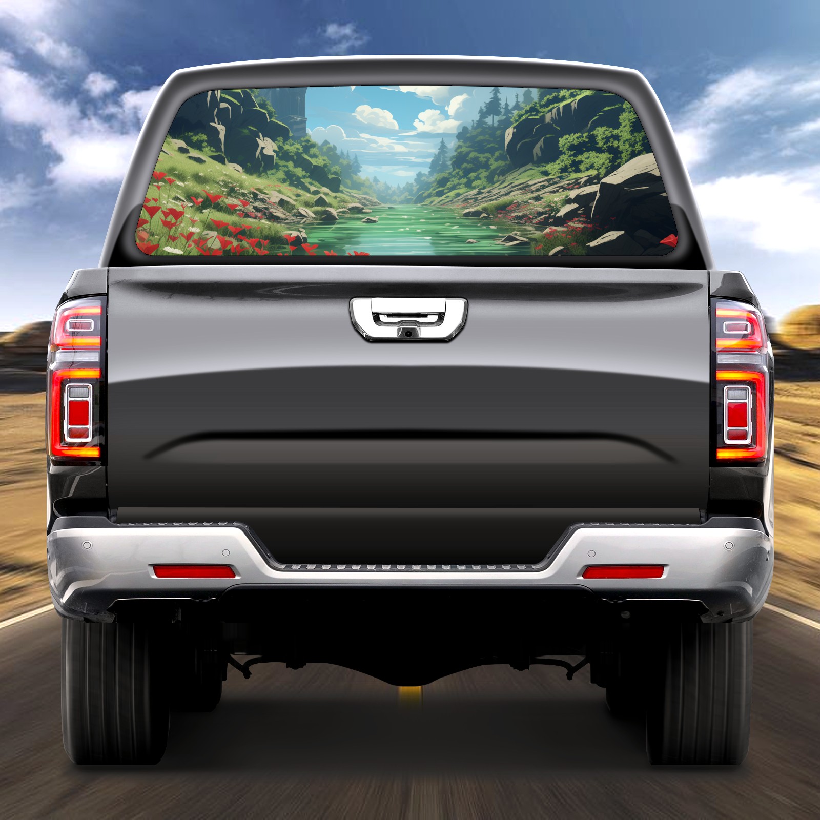 Truck Rear Window Graphics Decals Pickup Trucks Back Window Sticker Full Window Film Decal One Way Visual Waterproof Car Rear Tint River