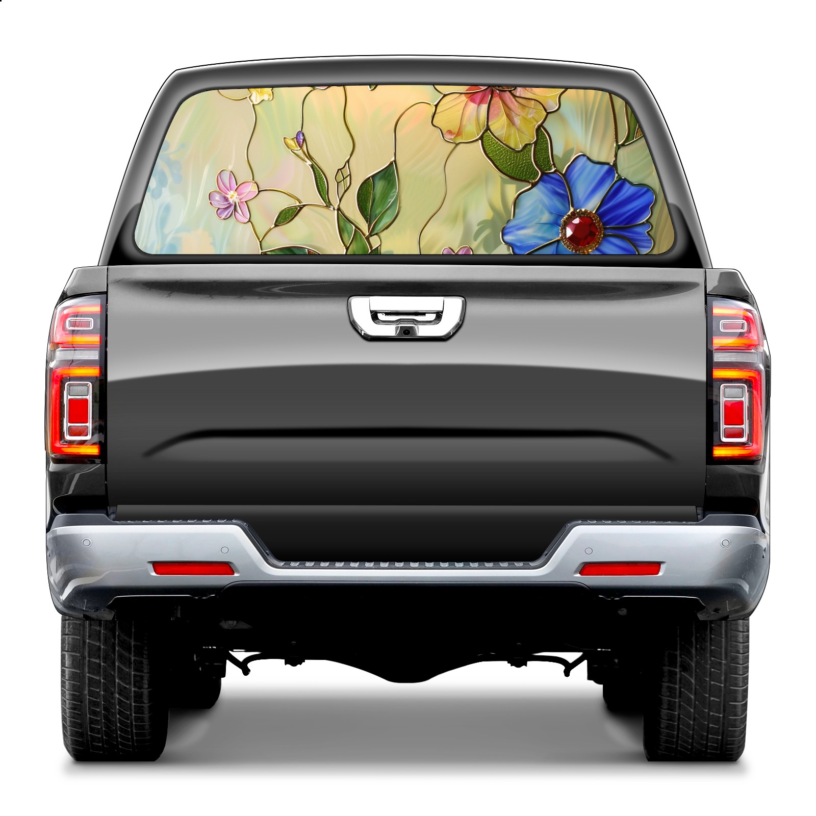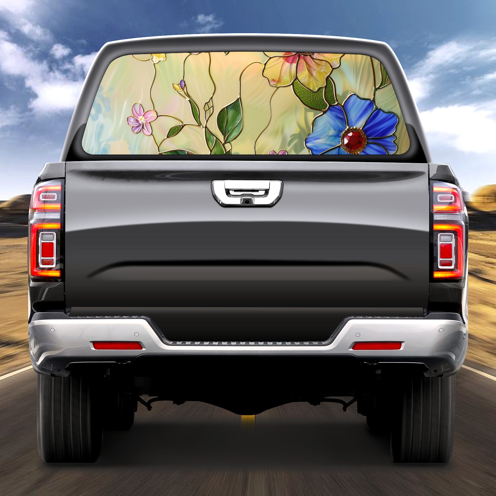 Truck Rear Window Graphics Decals Pickup Trucks Back Window Sticker Full Window Film Decal One Way Visual Waterproof Car Rear Tint White Lilies (7)