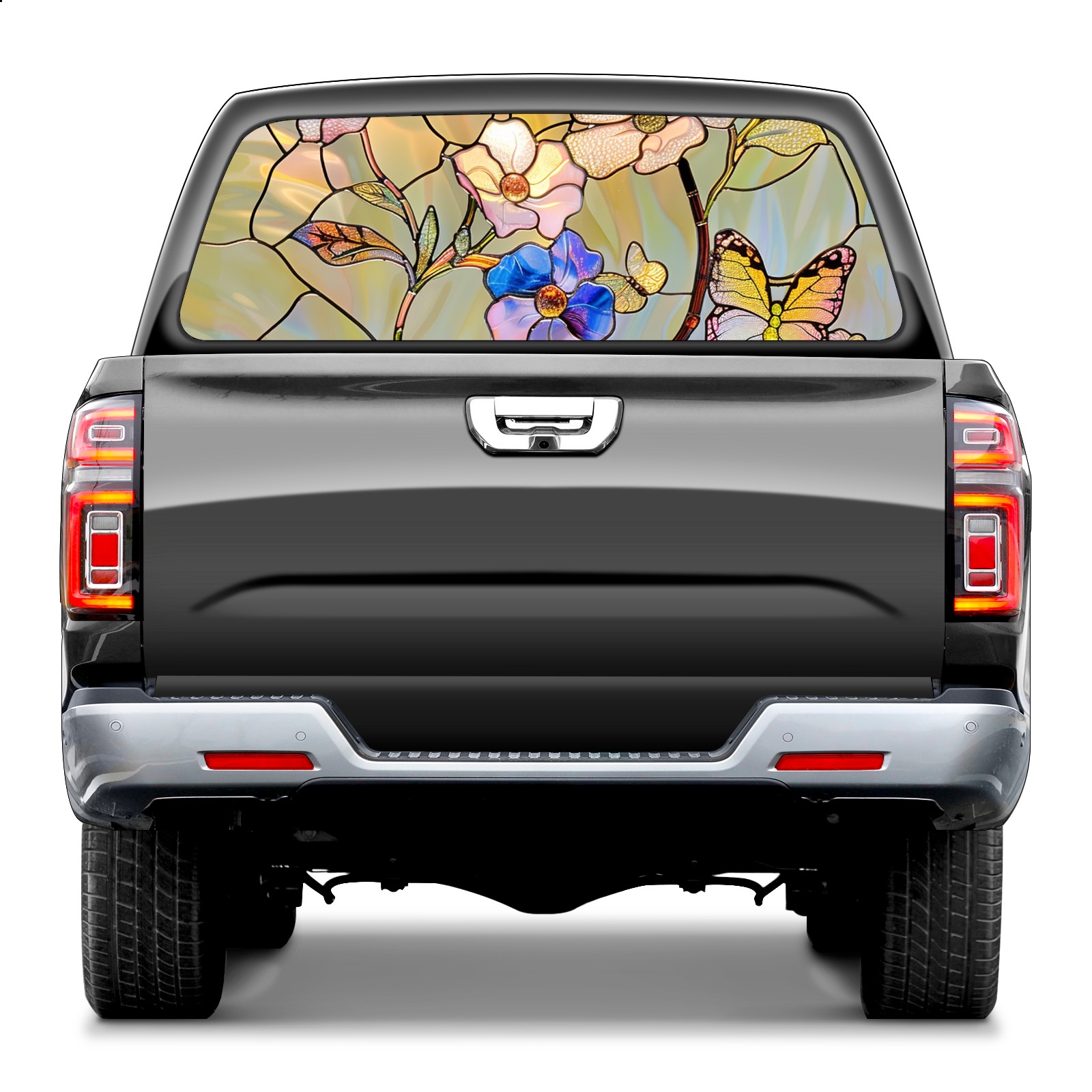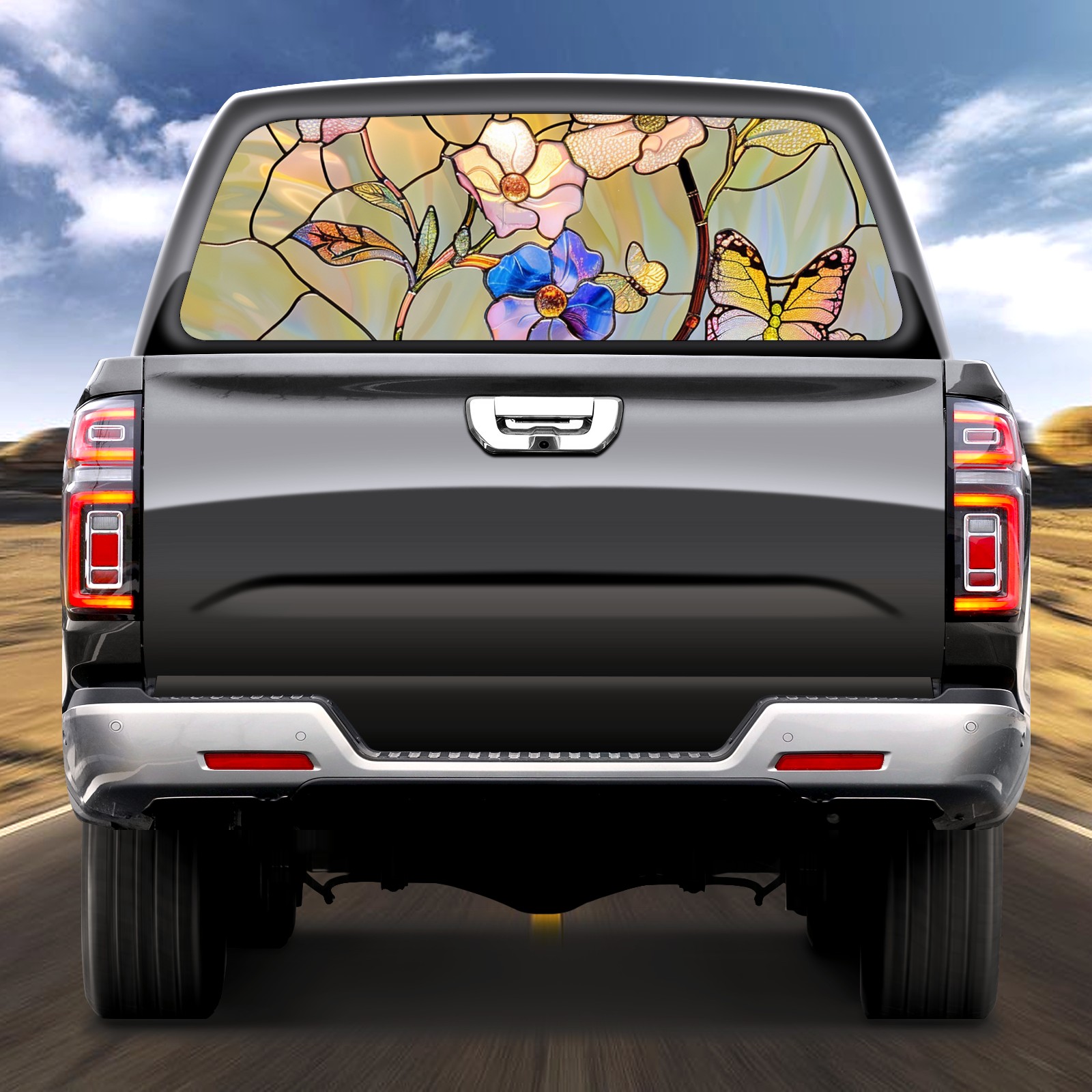 Truck Rear Window Graphics Decals Pickup Trucks Back Window Sticker Full Window Film Decal One Way Visual Waterproof Car Rear Tint White Lilies (6)