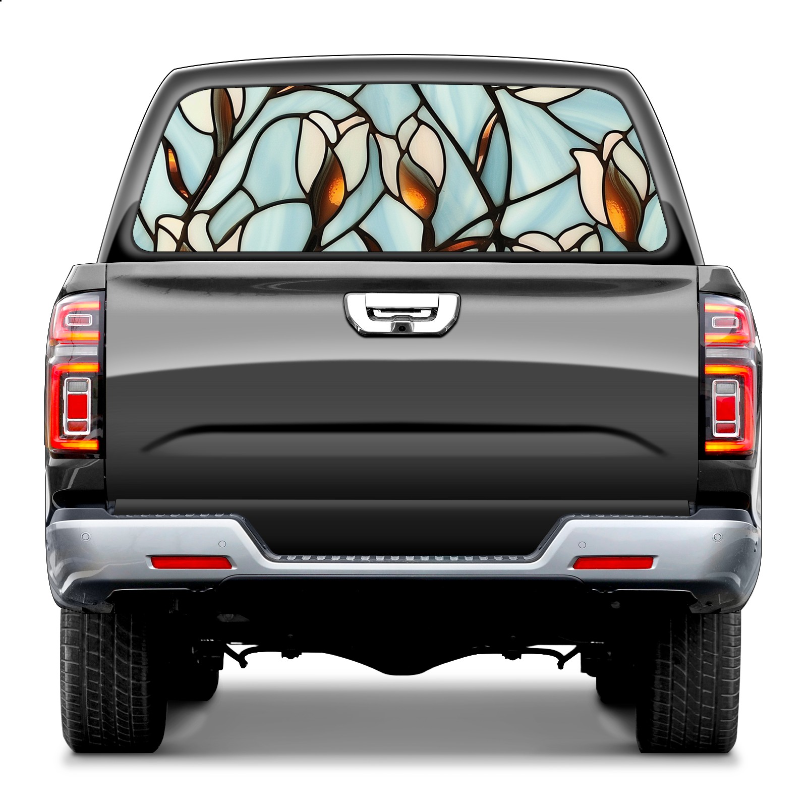 Truck Rear Window Graphics Decals Pickup Trucks Back Window Sticker Full Window Film Decal One Way Visual Waterproof Car Rear Tint Stained Leaves (13)