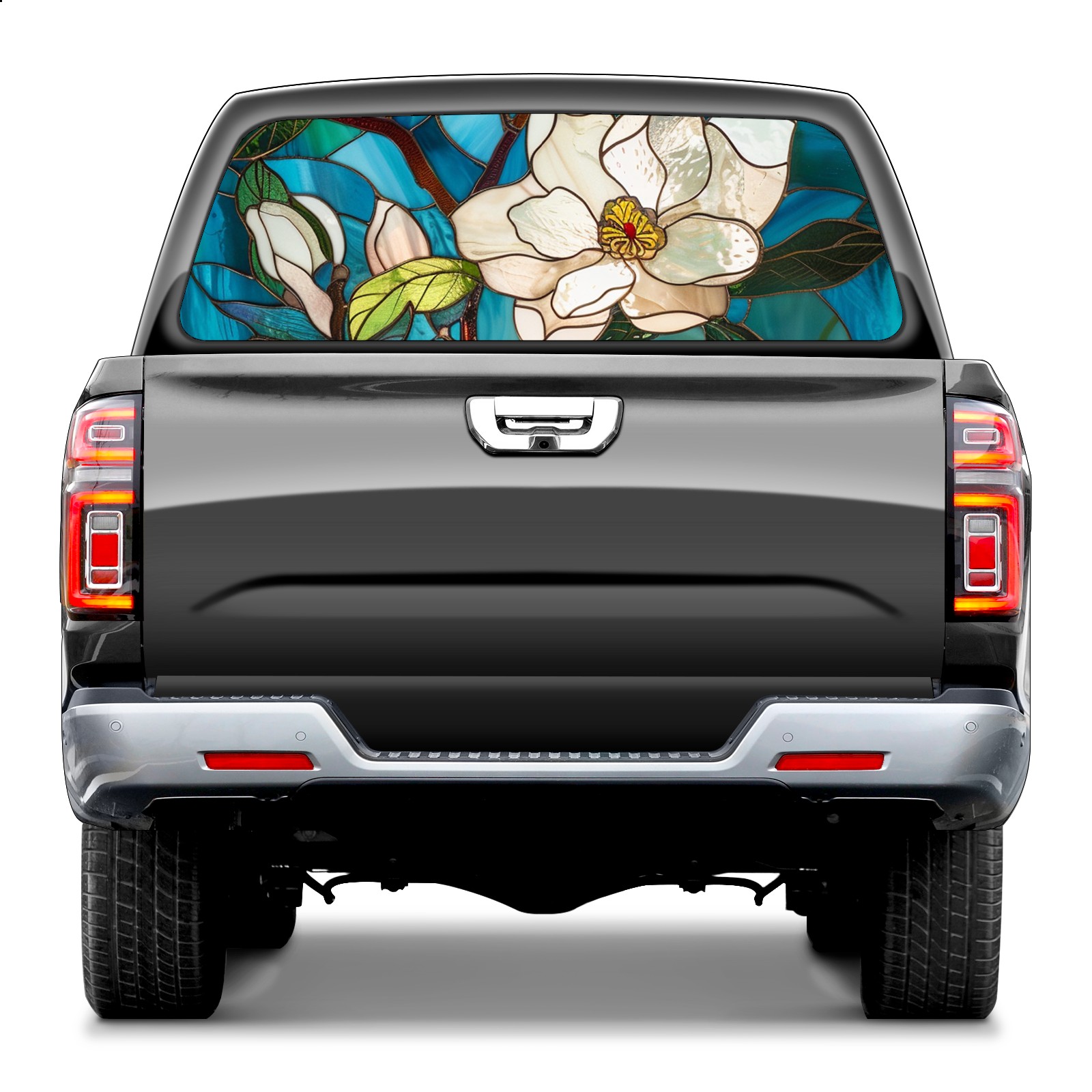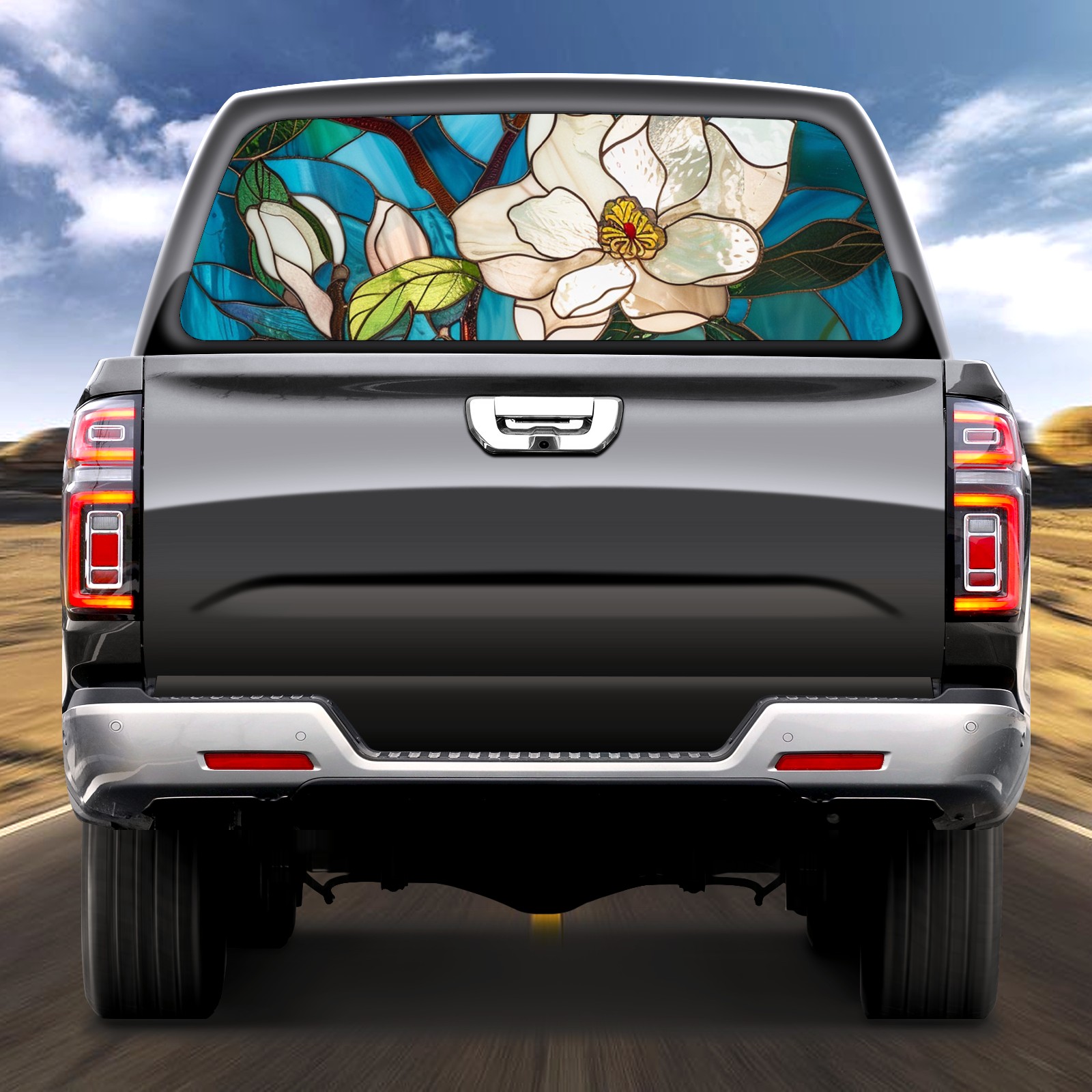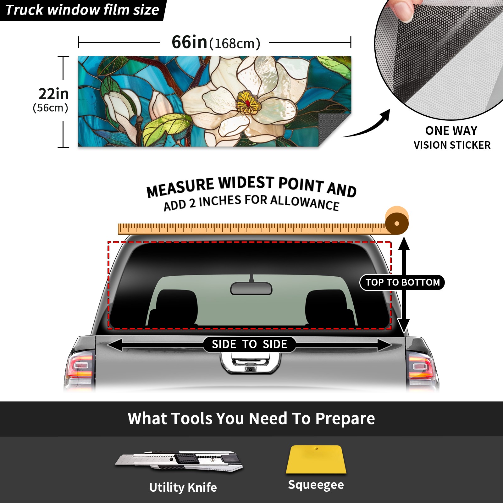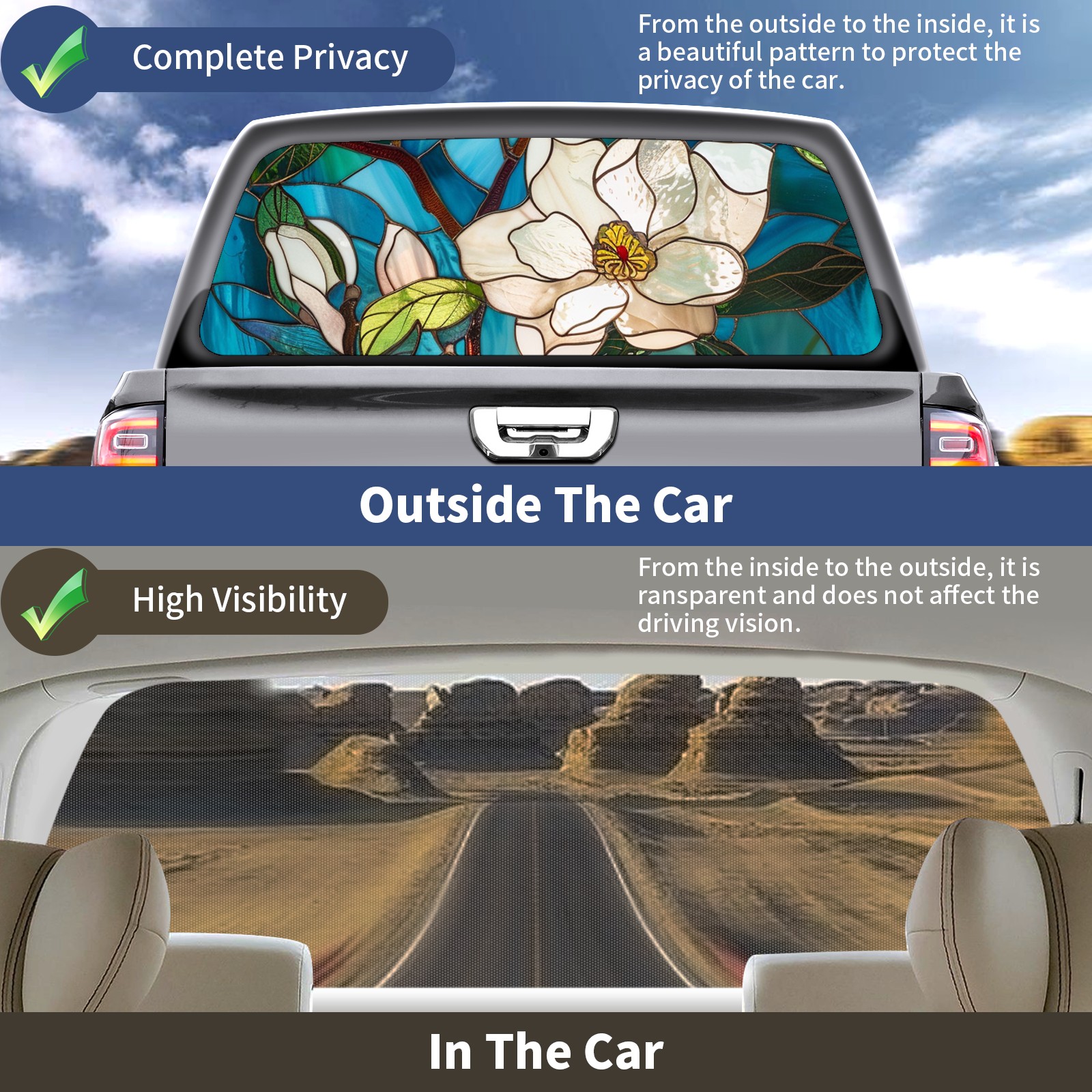 Truck Rear Window Graphics Decals Pickup Trucks Back Window Sticker Full Window Film Decal One Way Visual Waterproof Car Rear Tint Magnolia (1)