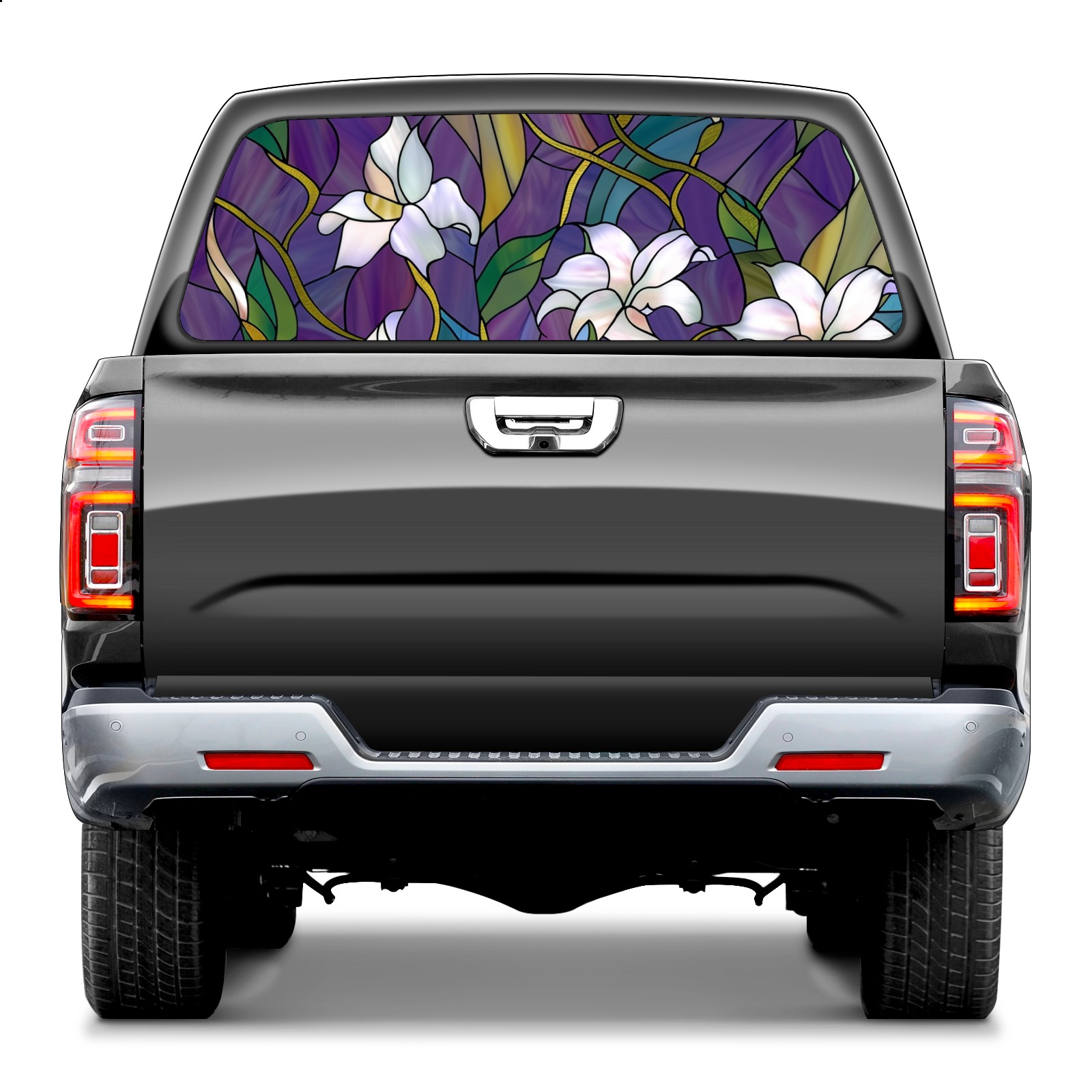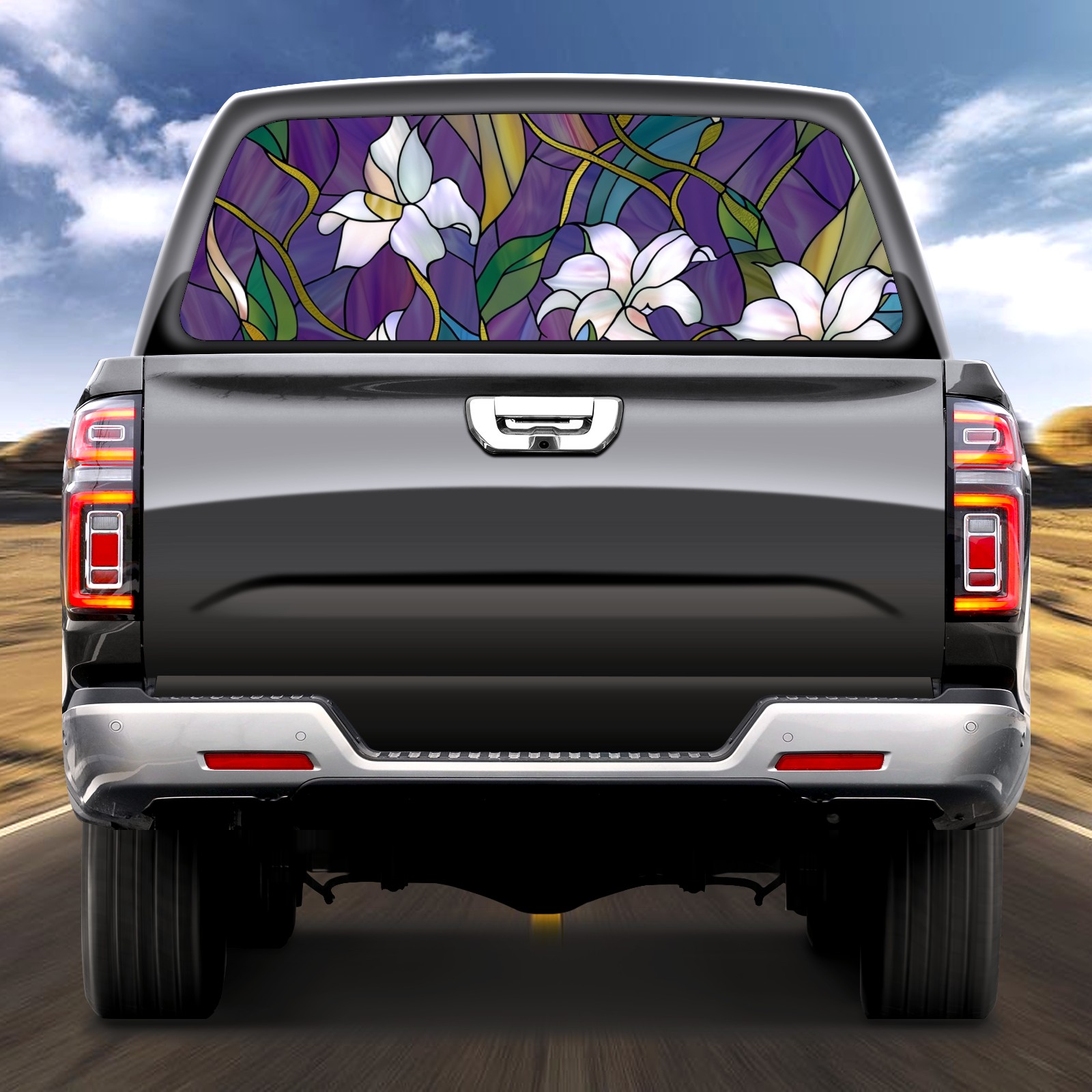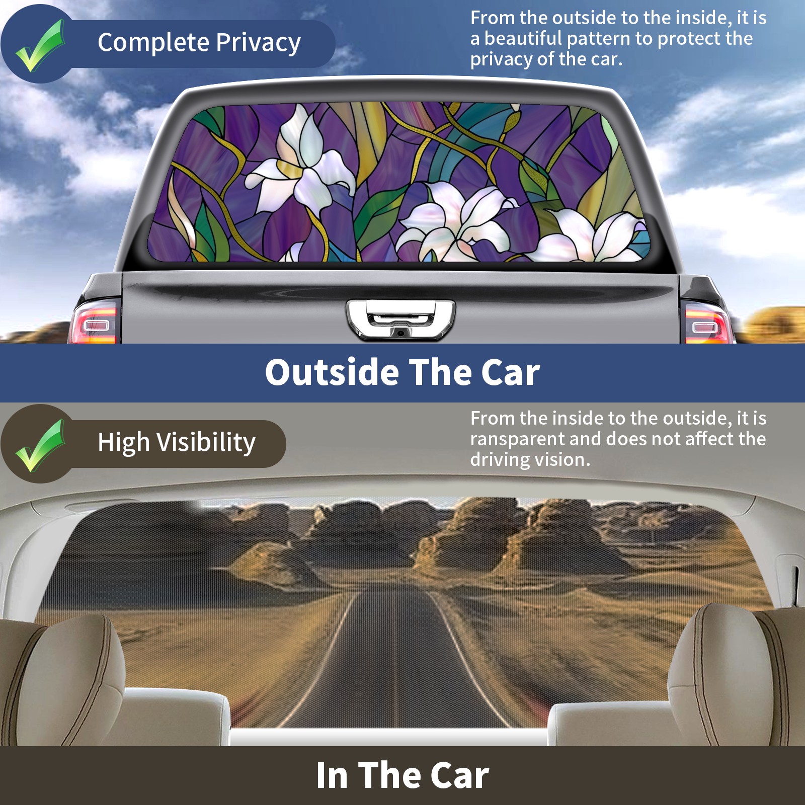 Truck Rear Window Graphics Decals Pickup Trucks Back Window Sticker Full Window Film Decal One Way Visual Waterproof Car Rear Tint Lily (3)