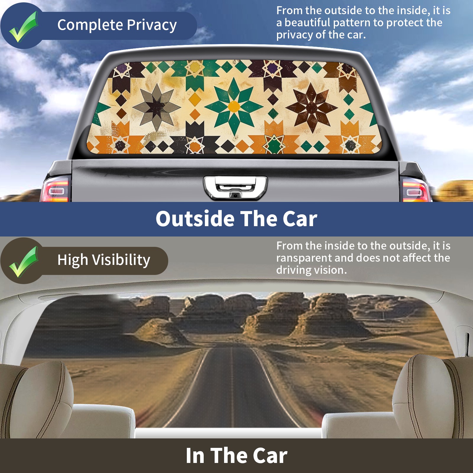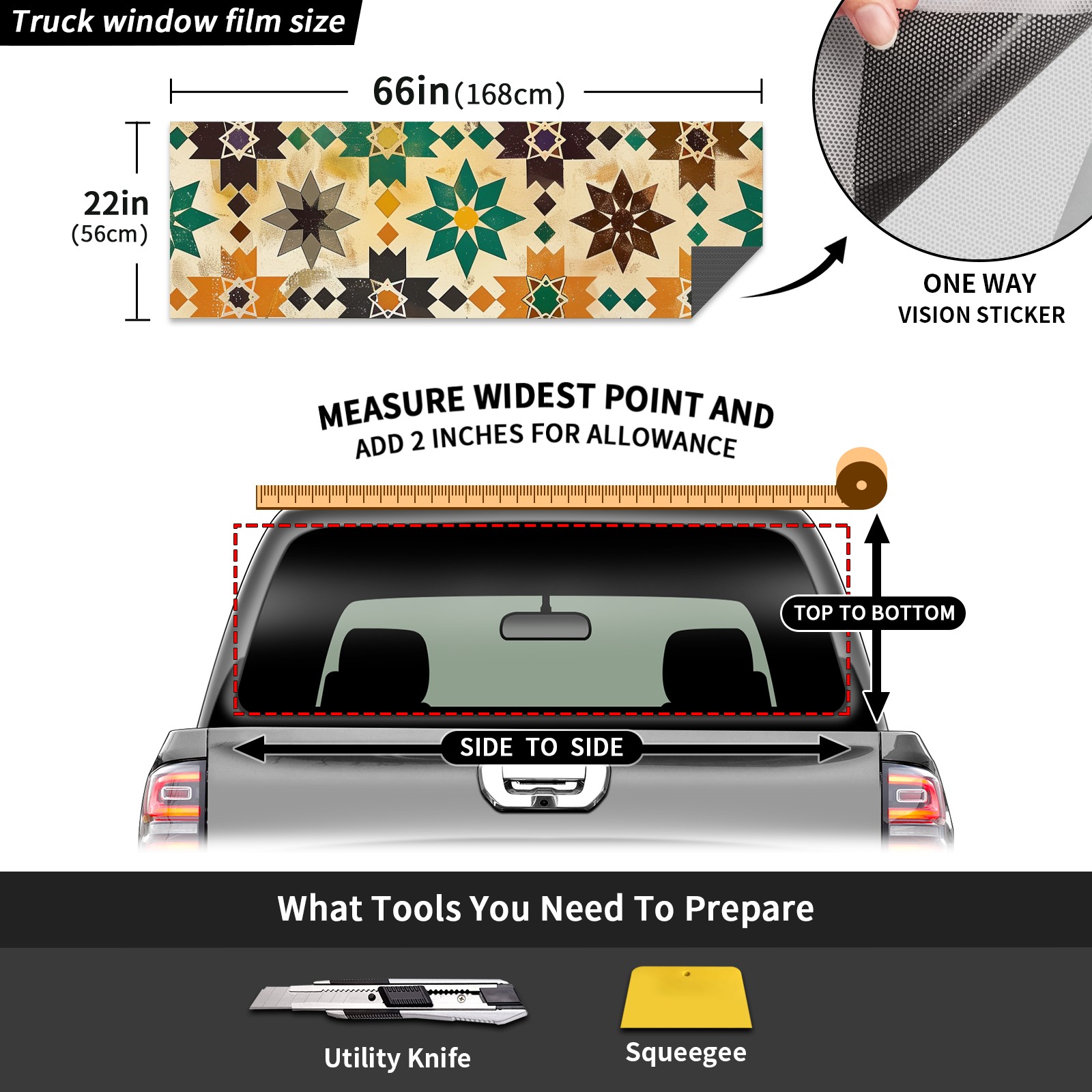 Truck Rear Window Graphics Decals Pickup Trucks Back Window Sticker Full Window Film Decal One Way Visual Waterproof Car Rear Tint Geometric Shapes (6)