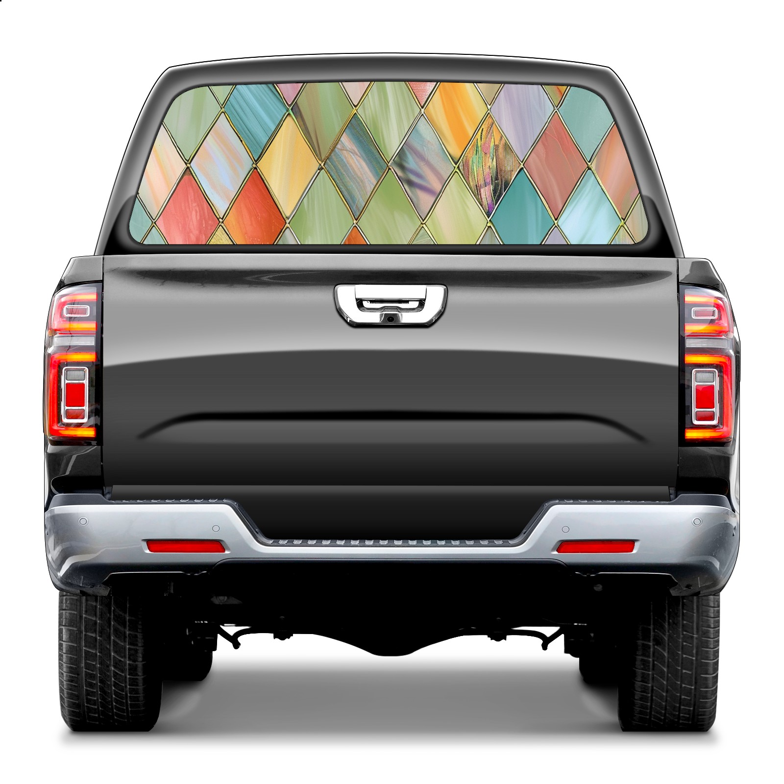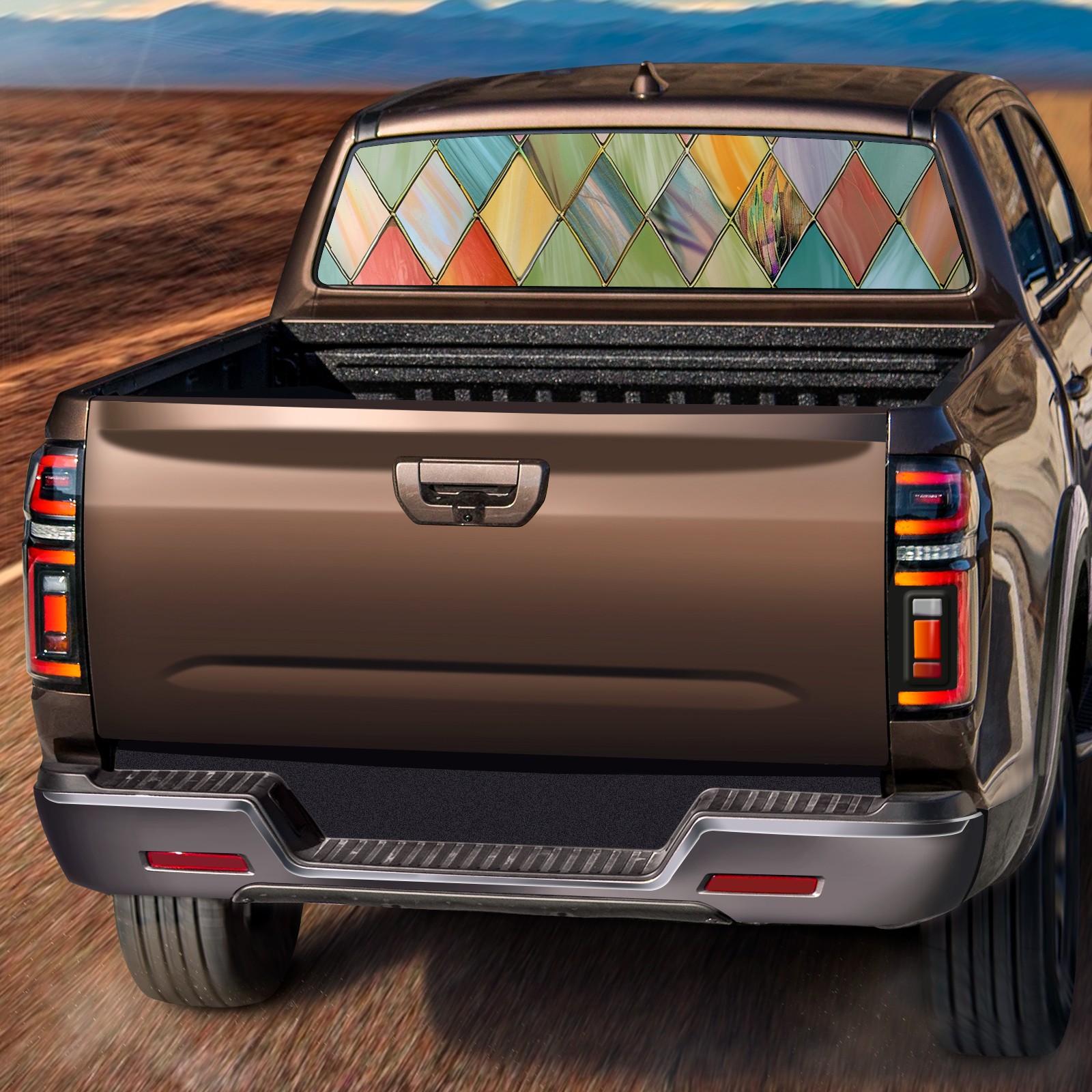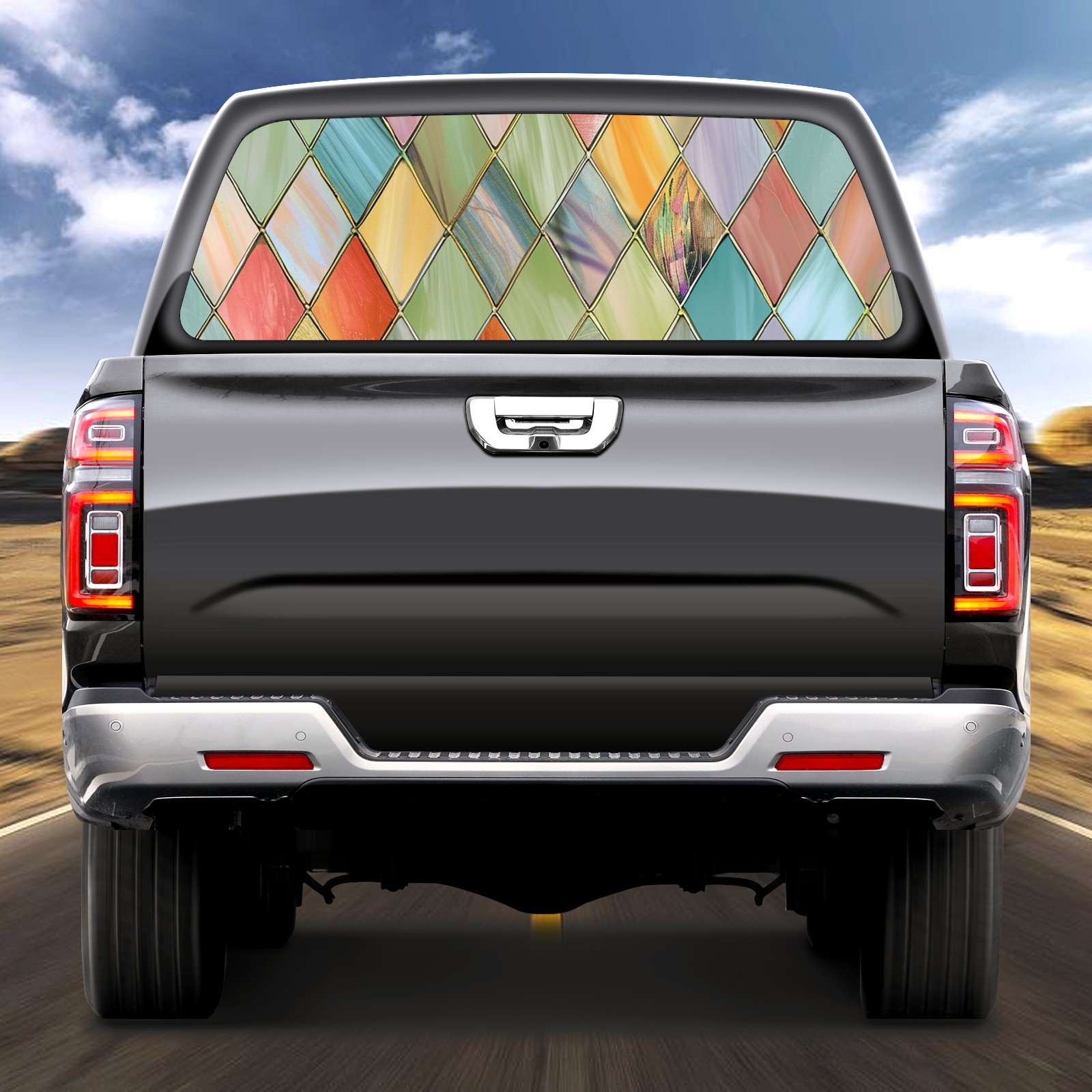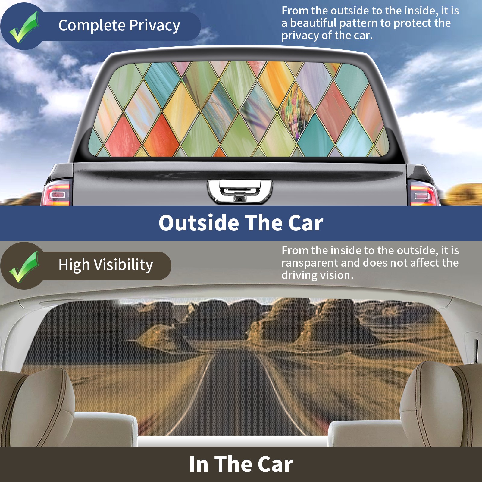 Truck Rear Window Graphics Decals Pickup Trucks Back Window Sticker Full Window Film Decal One Way Visual Waterproof Car Rear Tint Color Lattice (5)