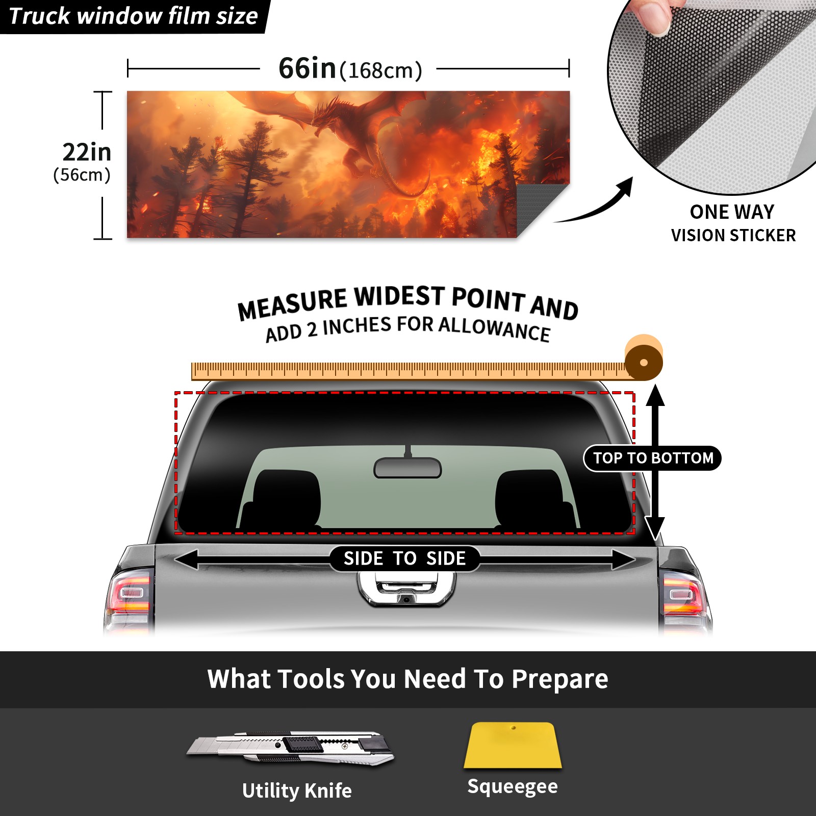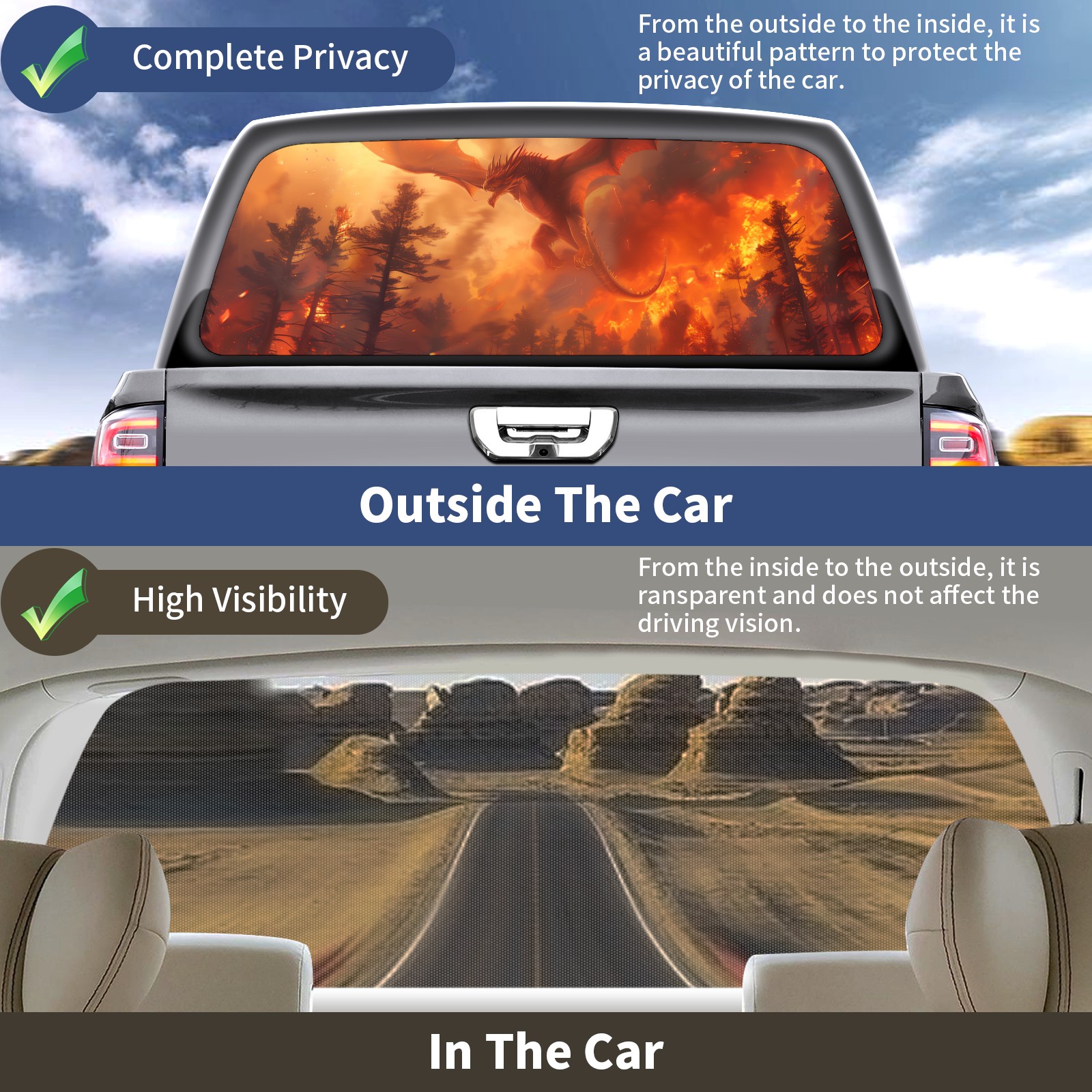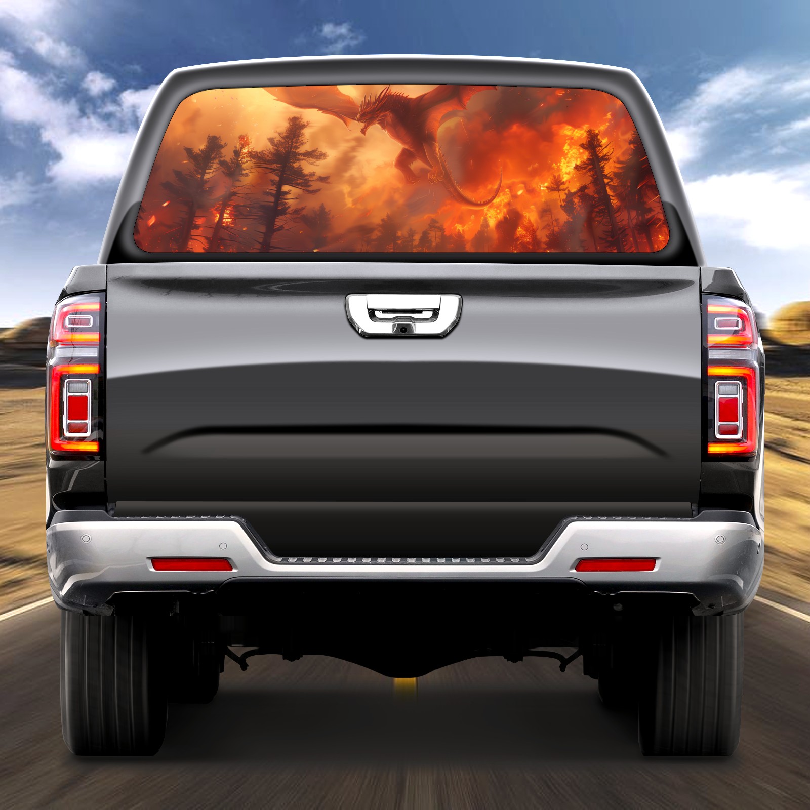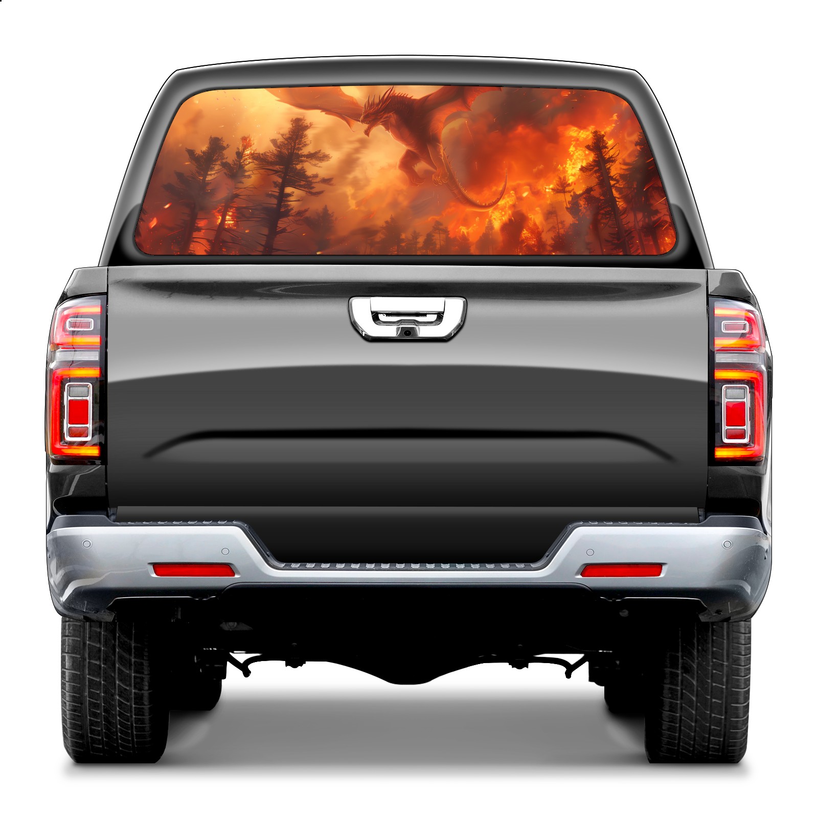 Truck Rear Window Graphics Decals Pickup Trucks Back Window Sticker Full Window Film Decal One Way Visual Waterproof Car Rear Tint Red Dragon (1)