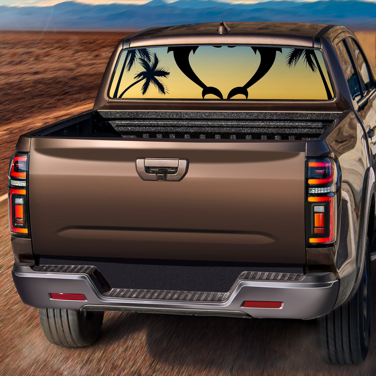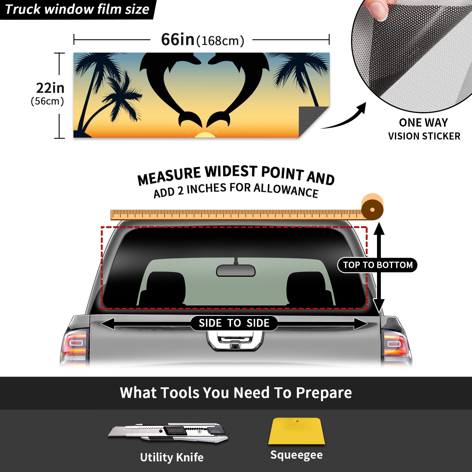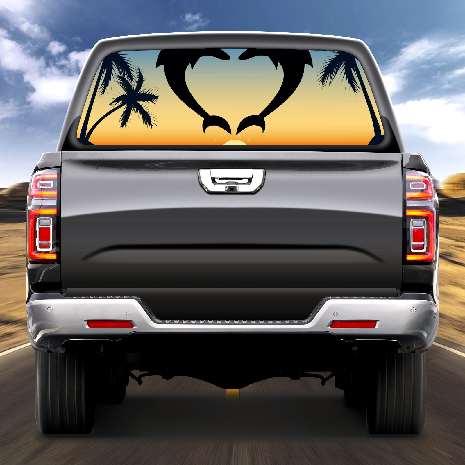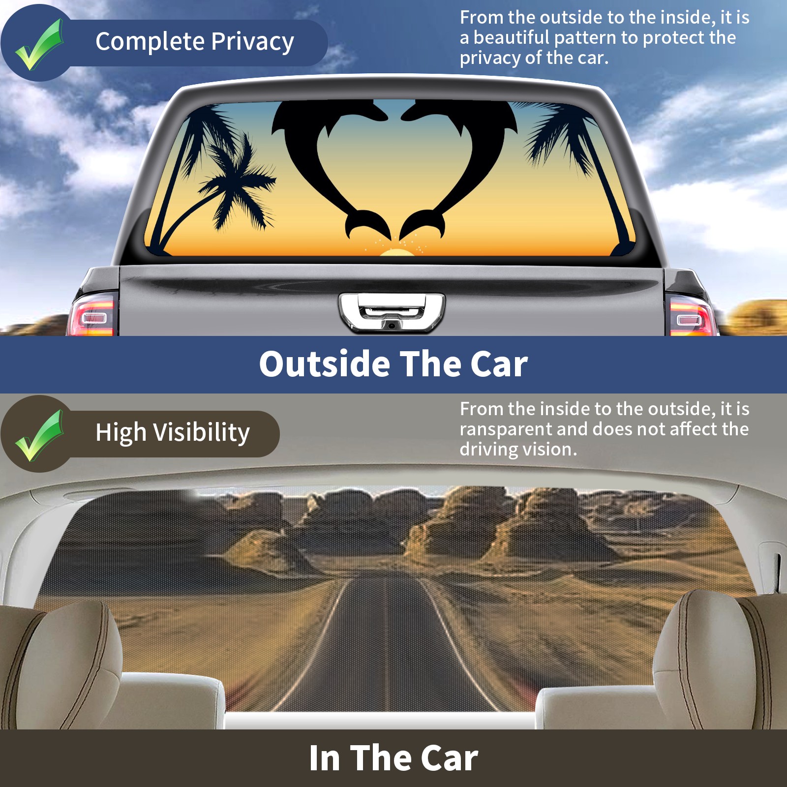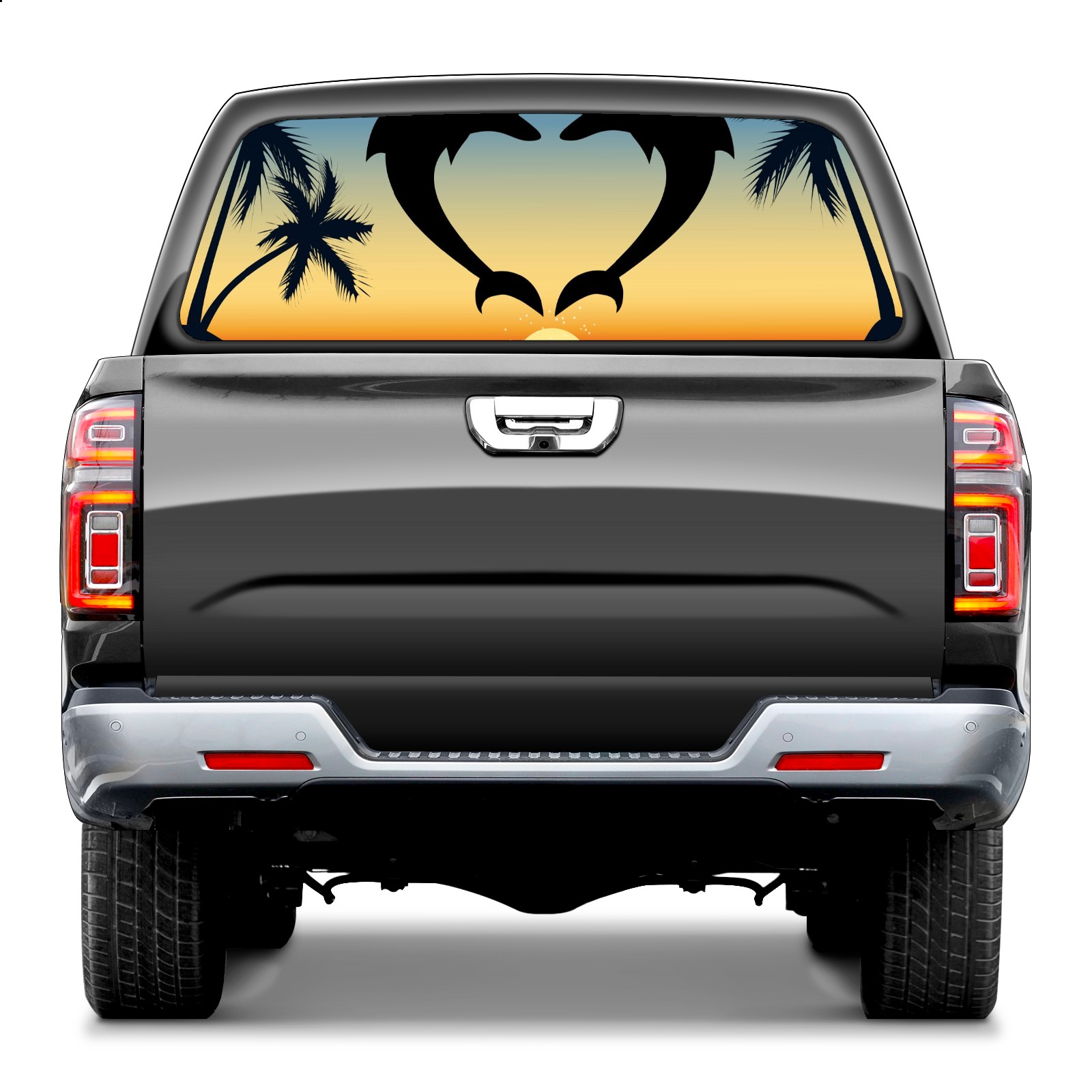 Truck Rear Window Graphics Decals Pickup Trucks Back Window Sticker Full Window Film Decal One Way Visual Waterproof Car Rear Tint Dolphin Sunset