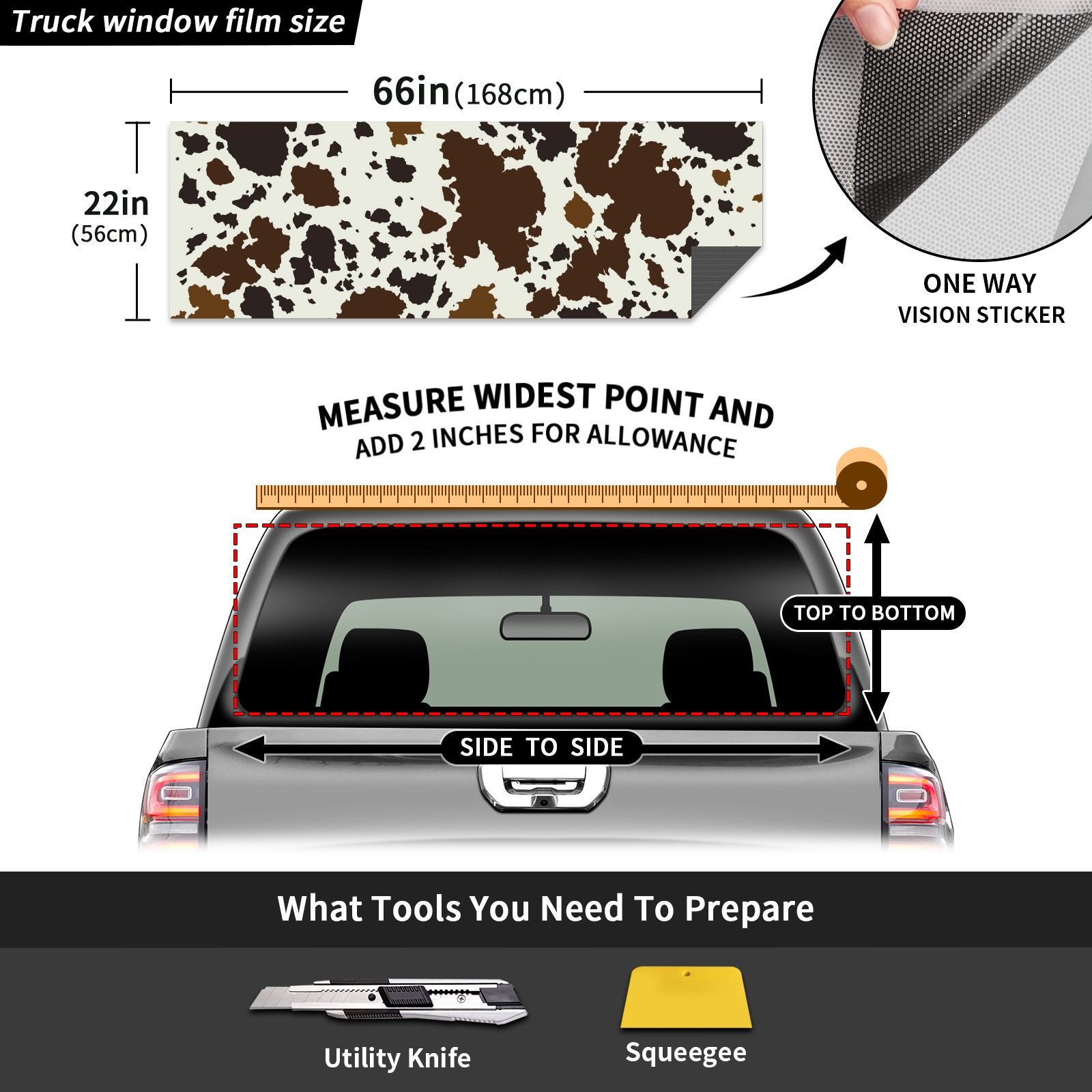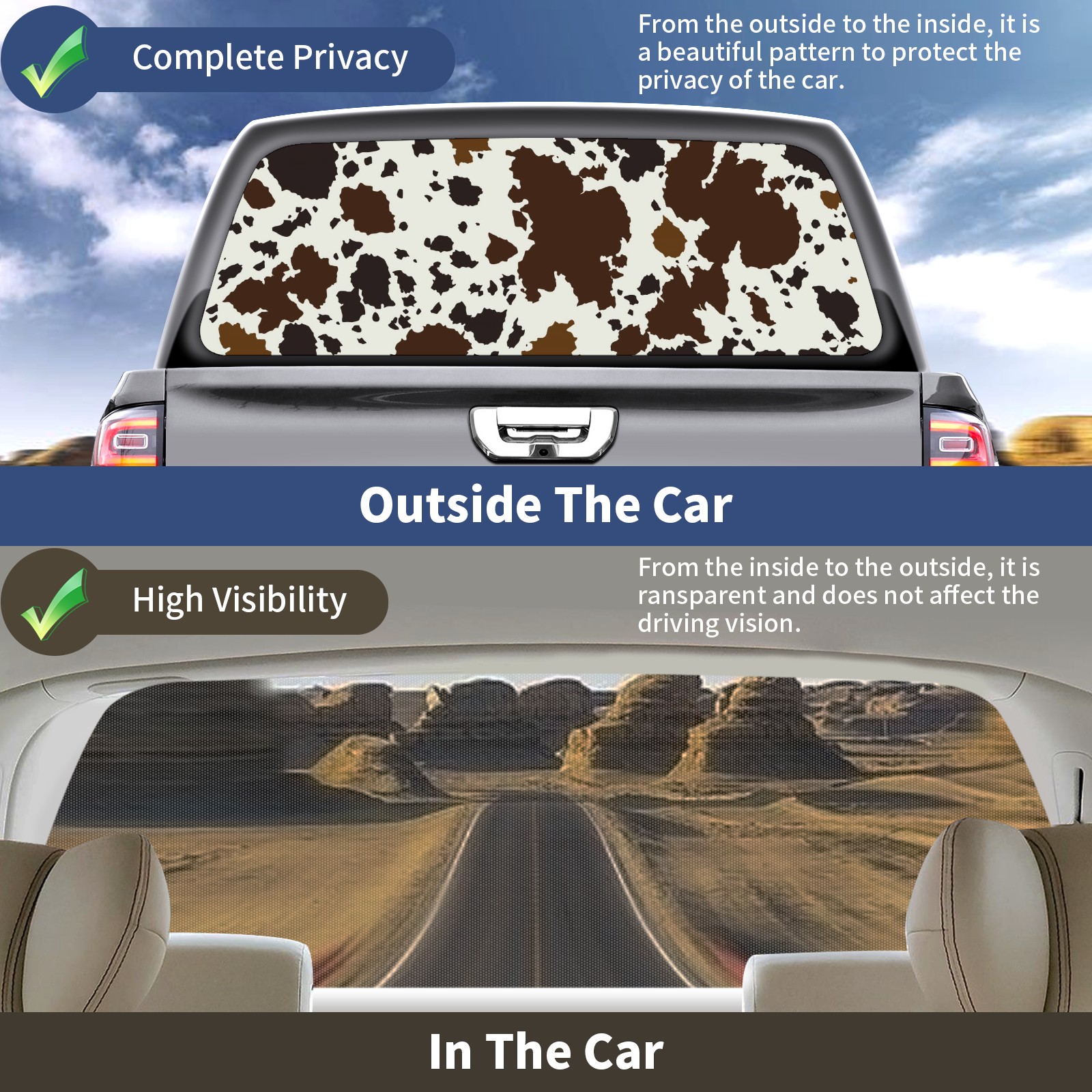 Truck Rear Window Graphics Decals Pickup Trucks Back Window Sticker Full Window Film Decal One Way Visual Waterproof Car Rear Tint Brown Cow