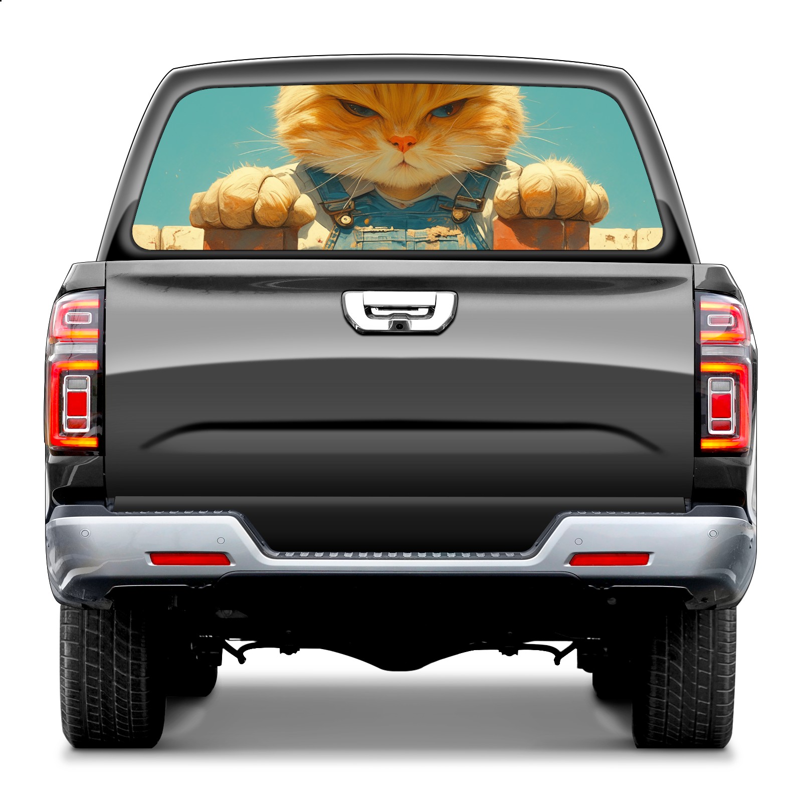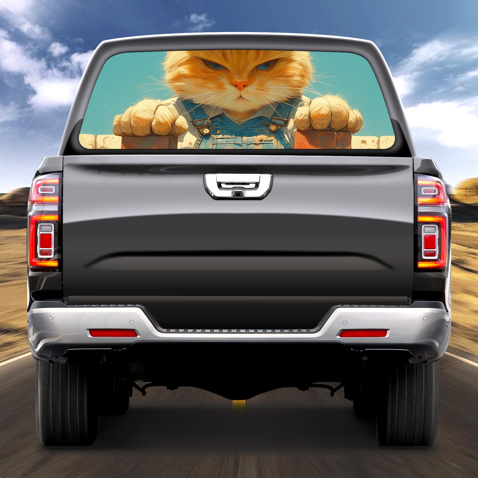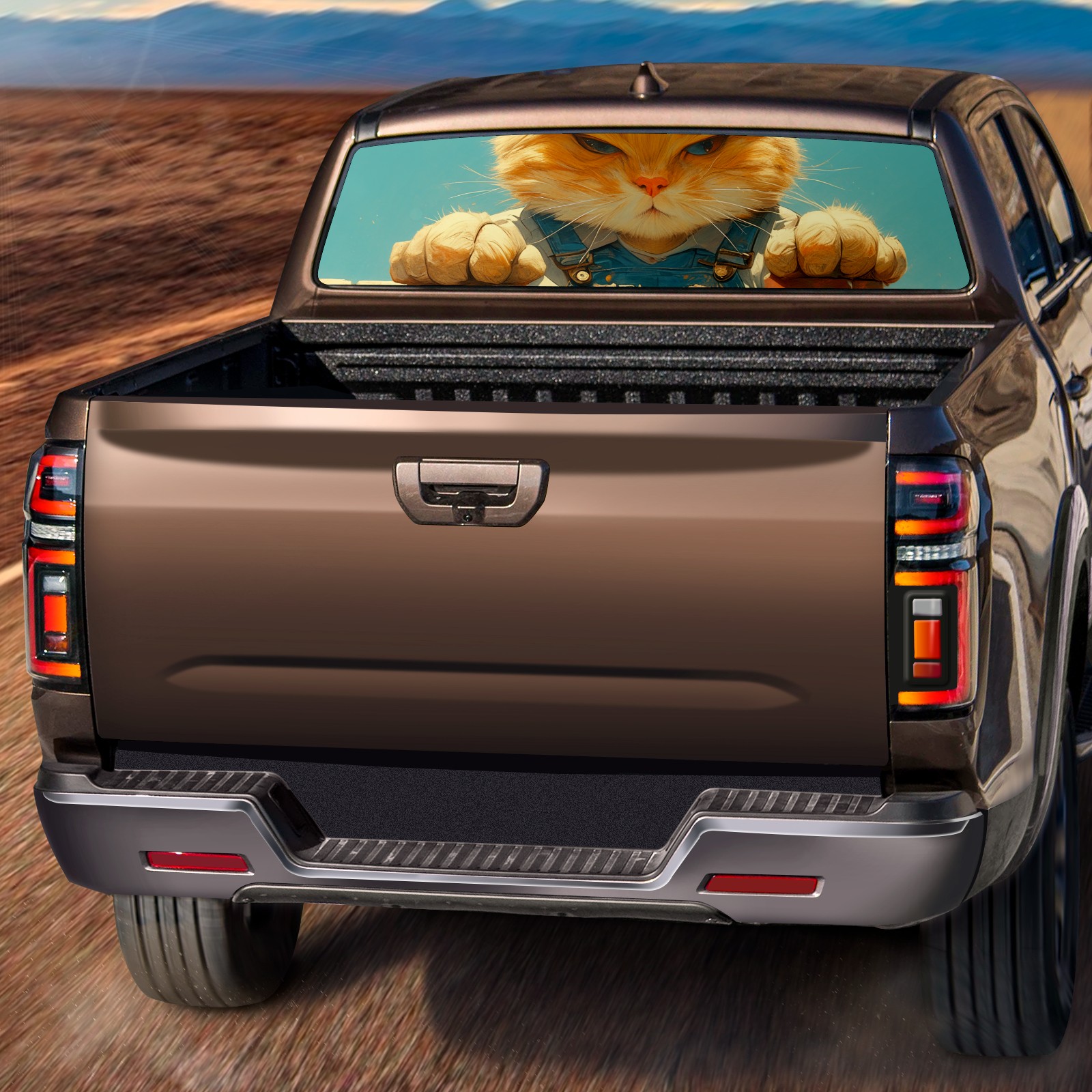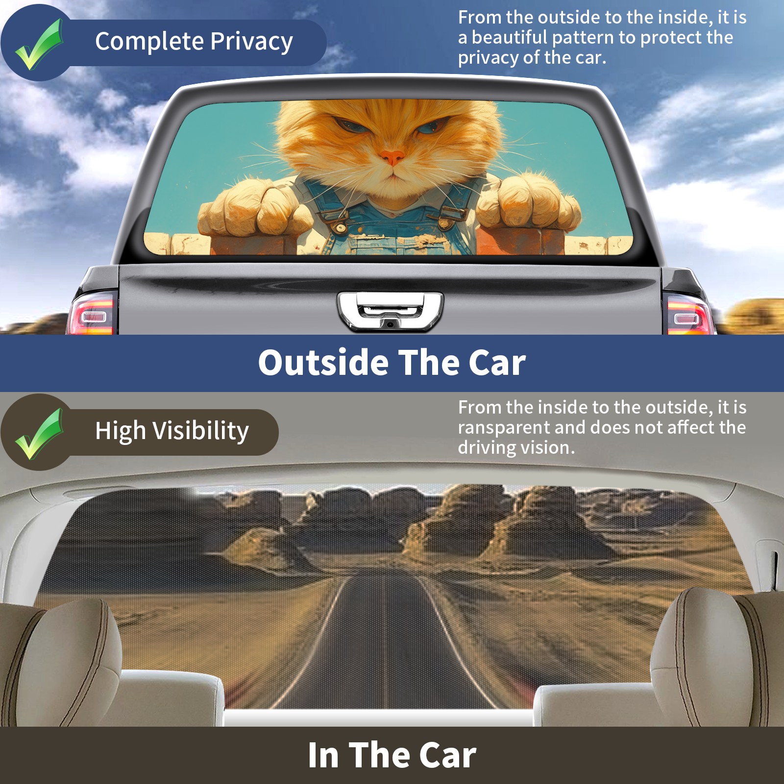 Truck Rear Window Graphics Decals Pickup Trucks Back Window Sticker Full Window Film Decal One Way Visual Waterproof Car Rear Tint Fierce Cat