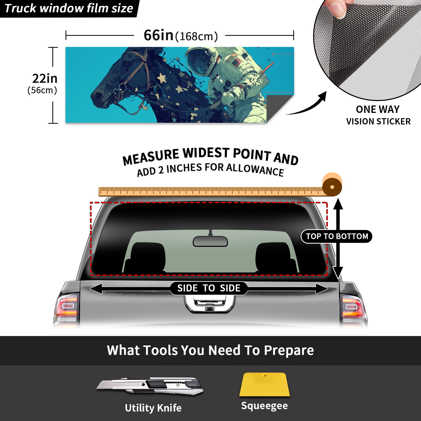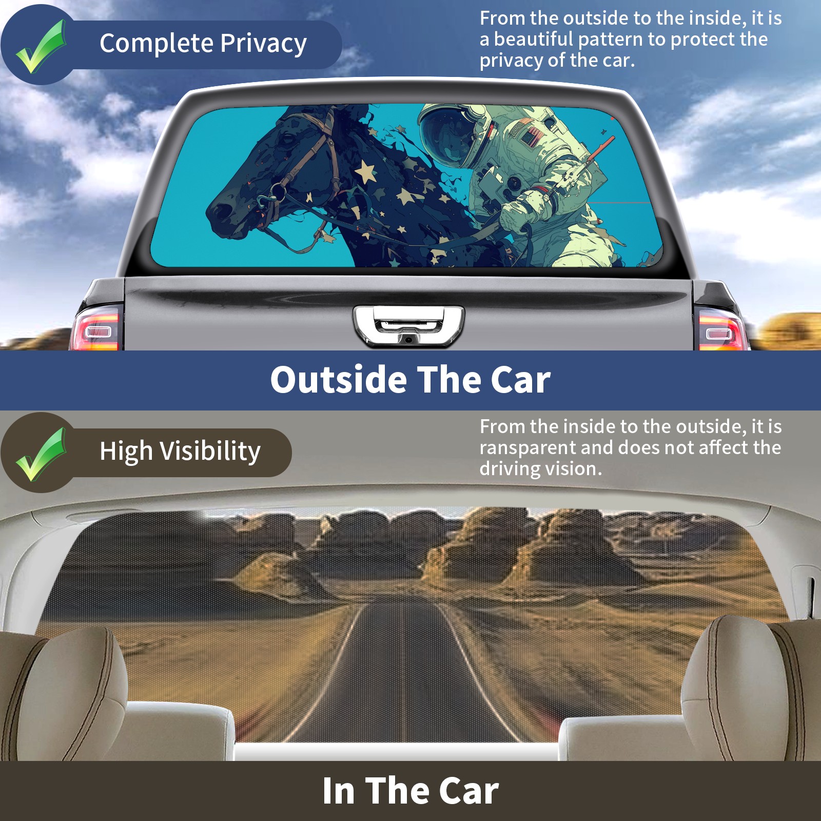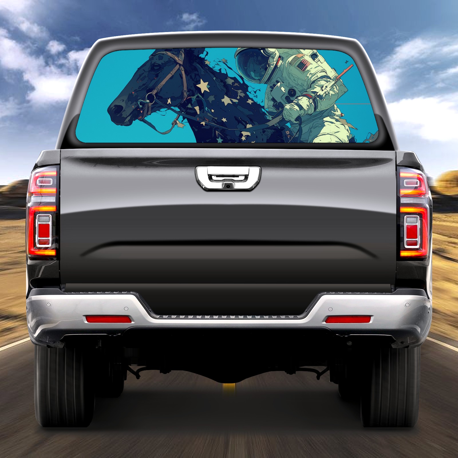 Truck Rear Window Graphics Decals Pickup Trucks Back Window Sticker Full Window Film Decal One Way Visual Waterproof Car Rear Tint Astronauts Horses
