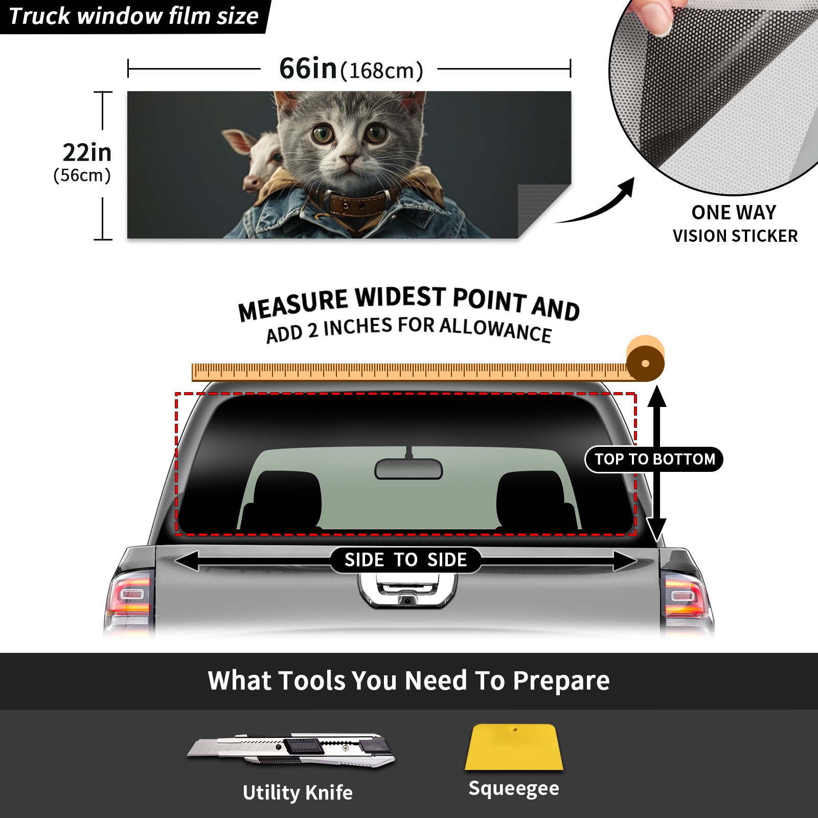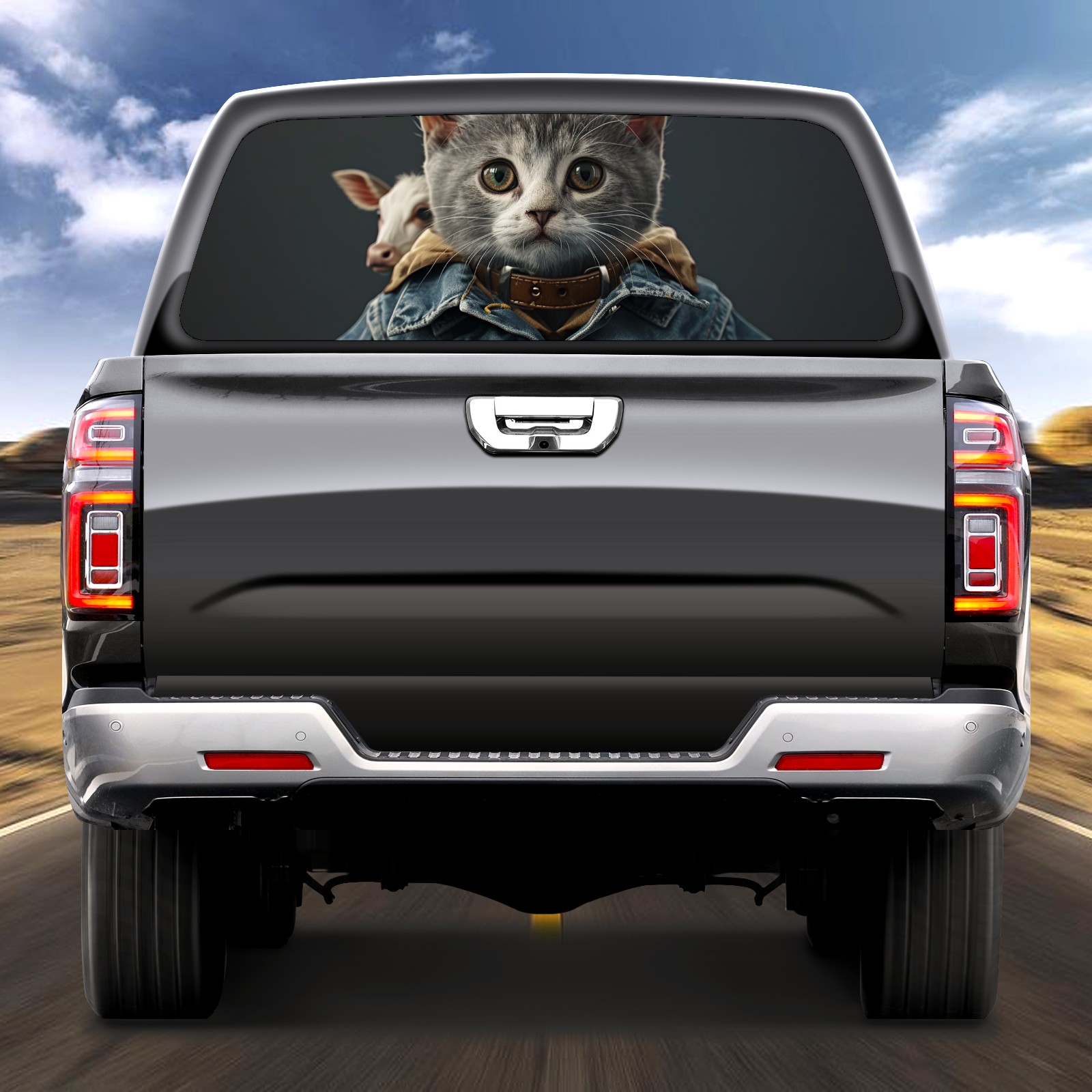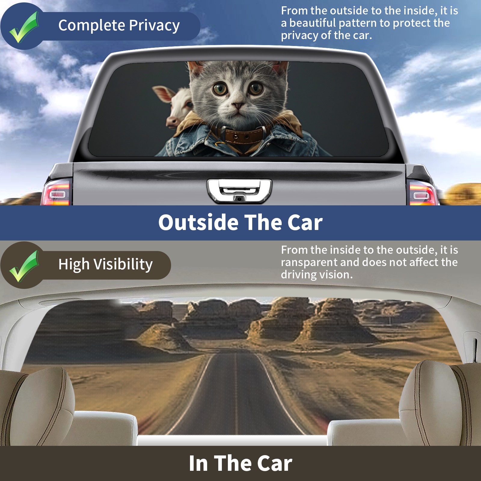 Truck Rear Window Graphics Decals Pickup Trucks Back Window Sticker Full Window Film Decal One Way Visual Waterproof Car Rear Tint Cowboy Cat