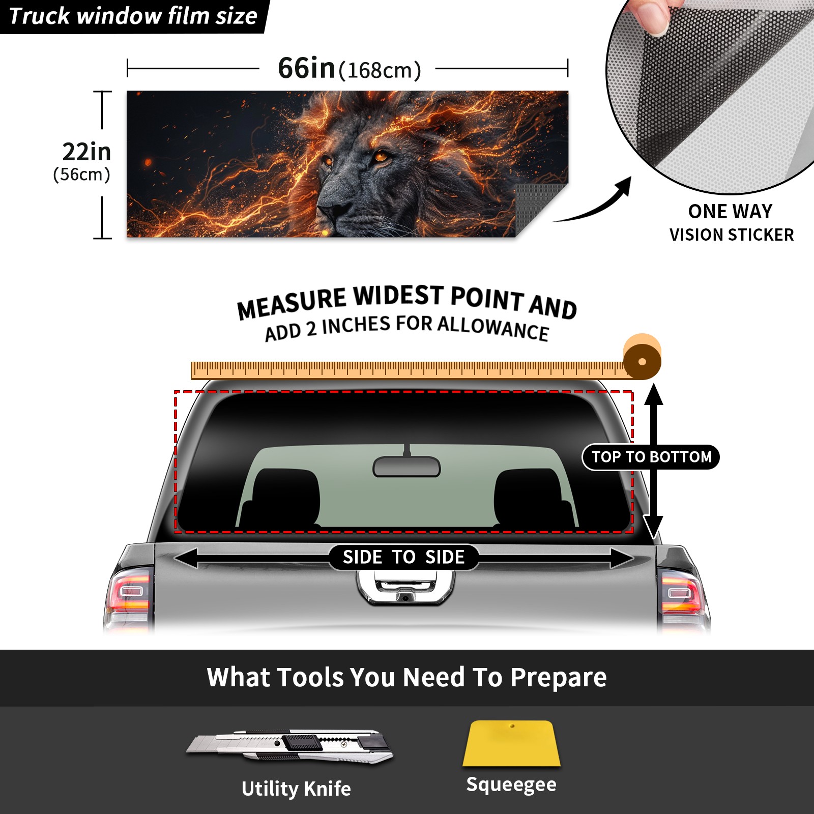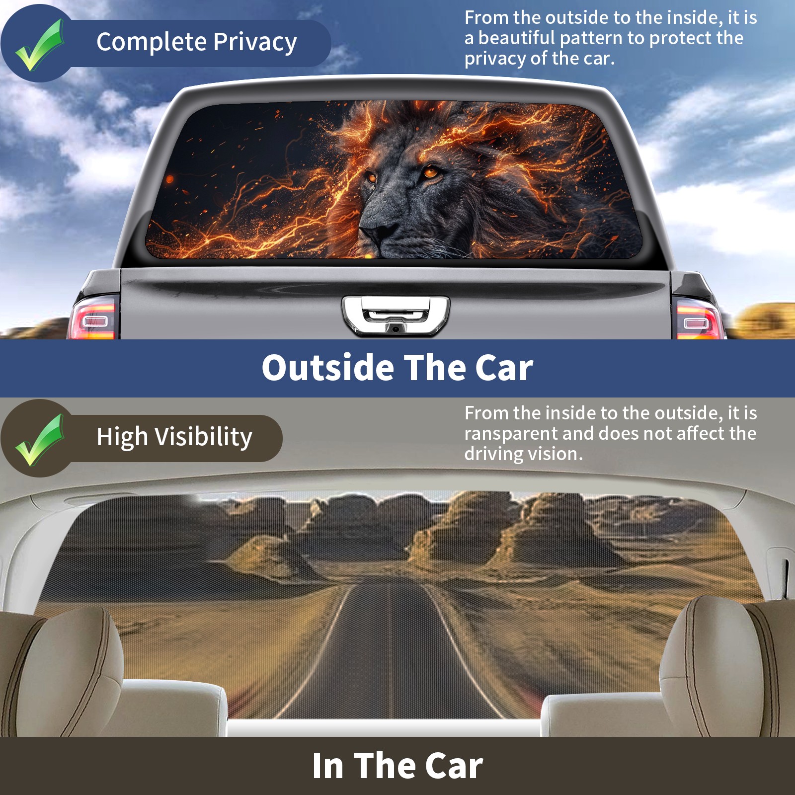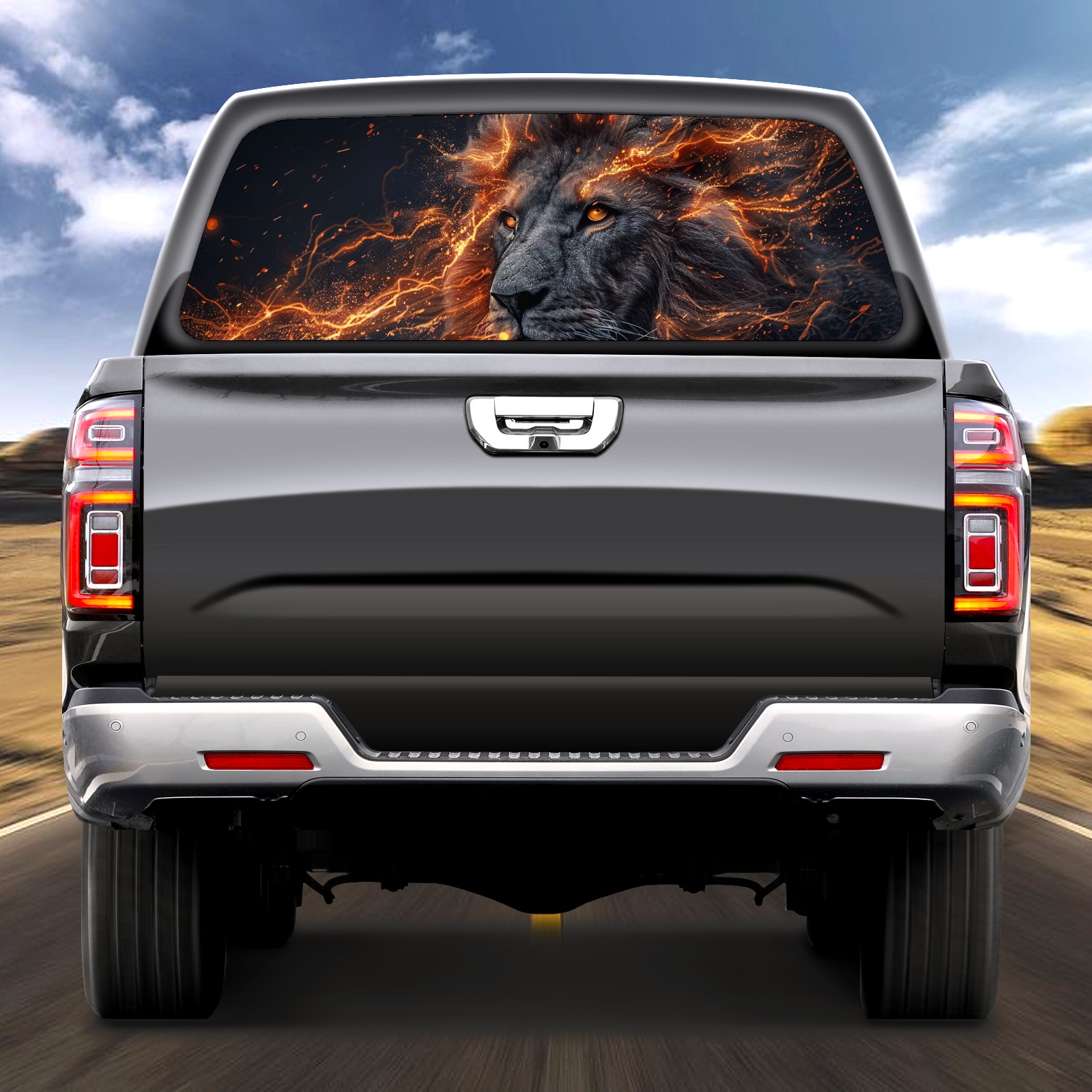 Truck Rear Window Graphics Decals Pickup Trucks Back Window Sticker Full Window Film Decal One Way Visual Waterproof Car Rear Tint Lightning Lion