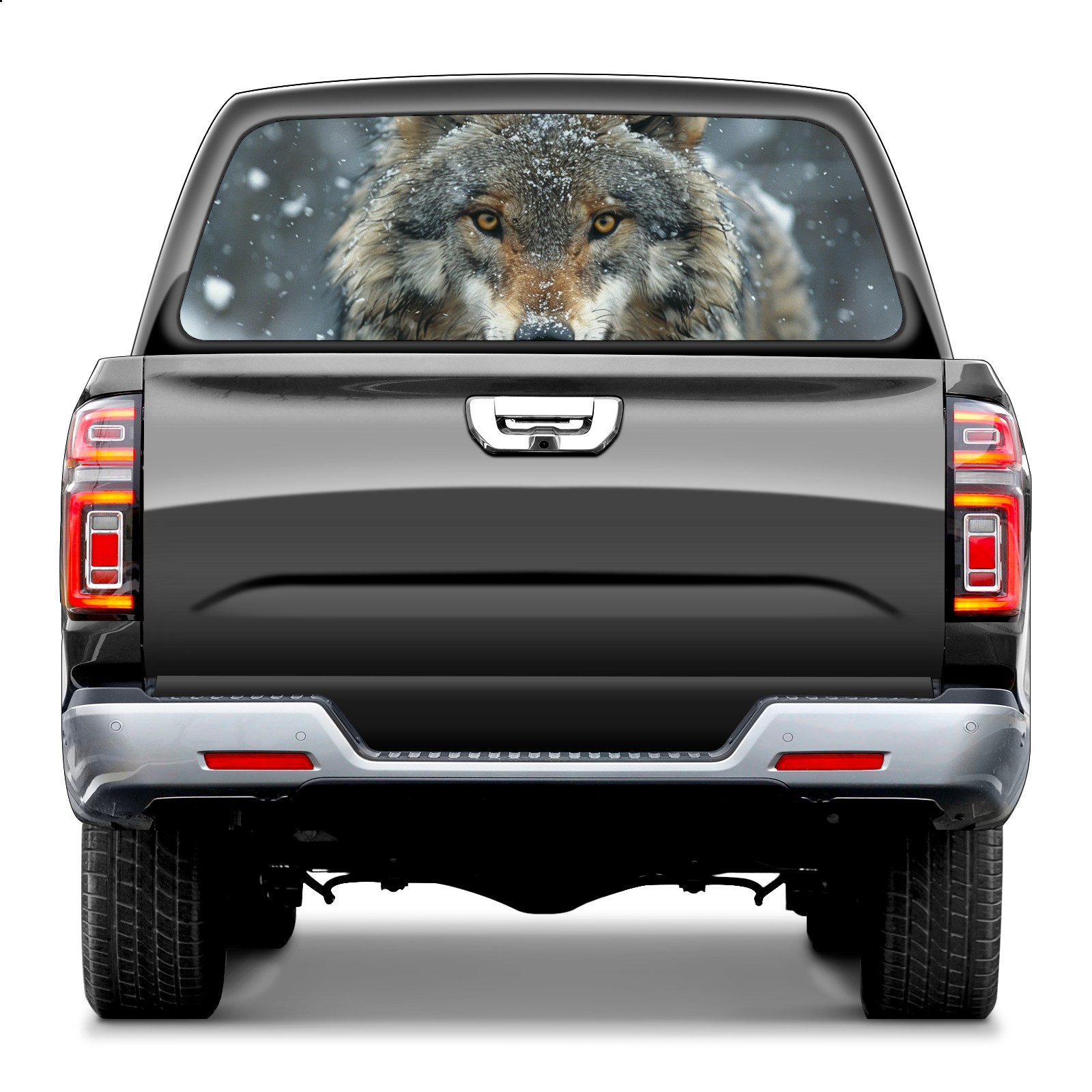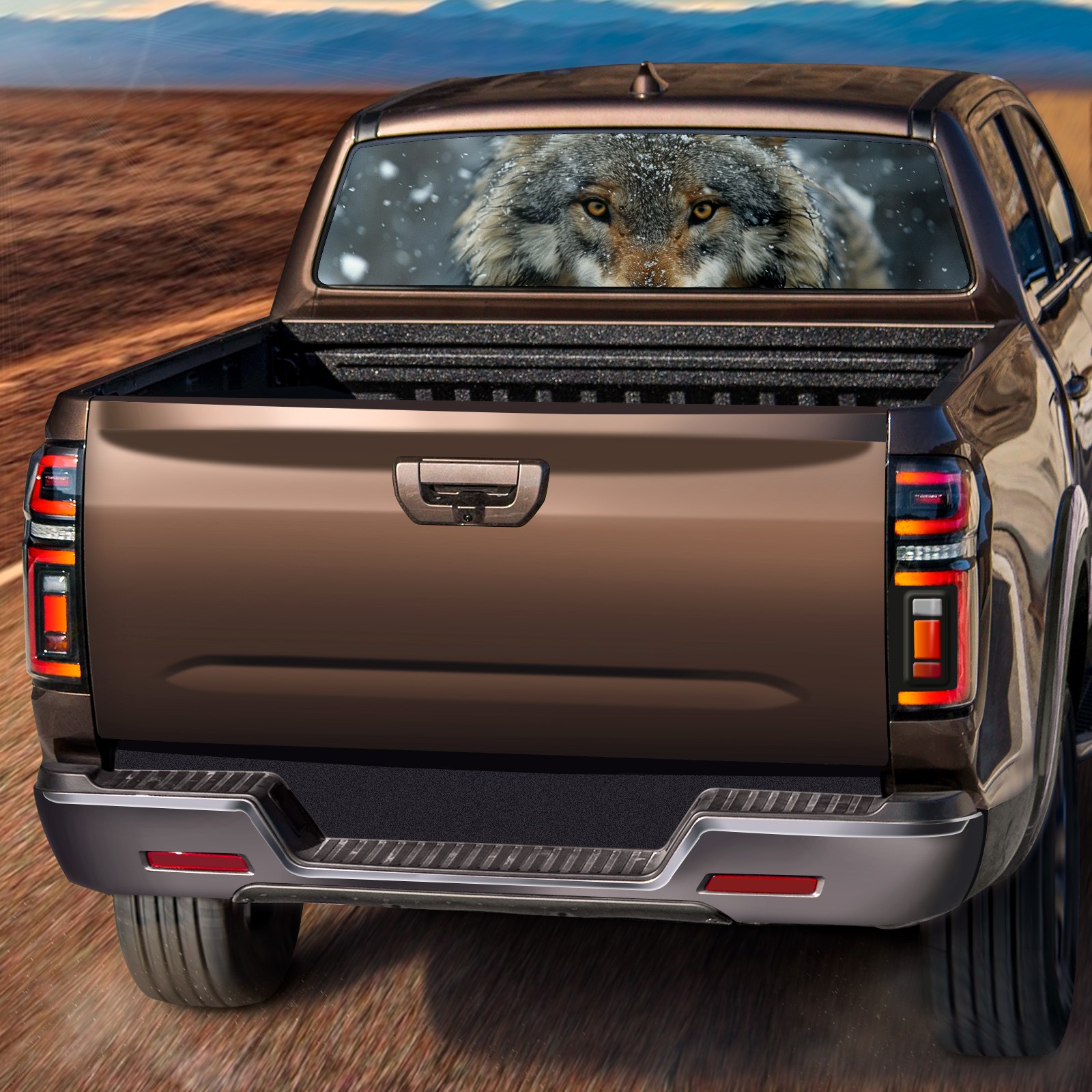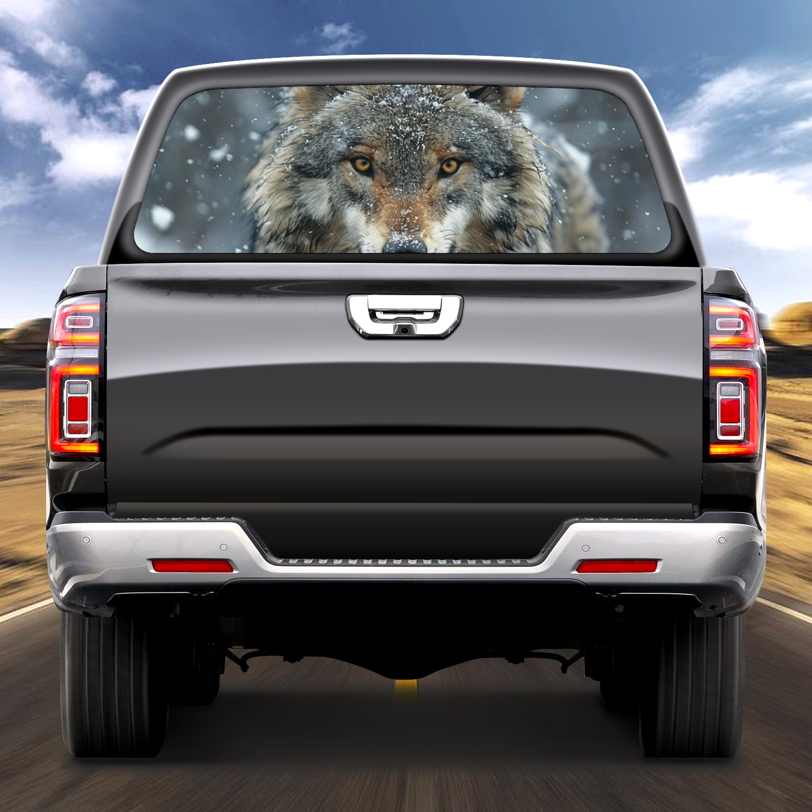 Truck Rear Window Graphics Decals Pickup Trucks Back Window Sticker Full Window Film Decal One Way Visual Waterproof Car Rear Tint Snow Wolf