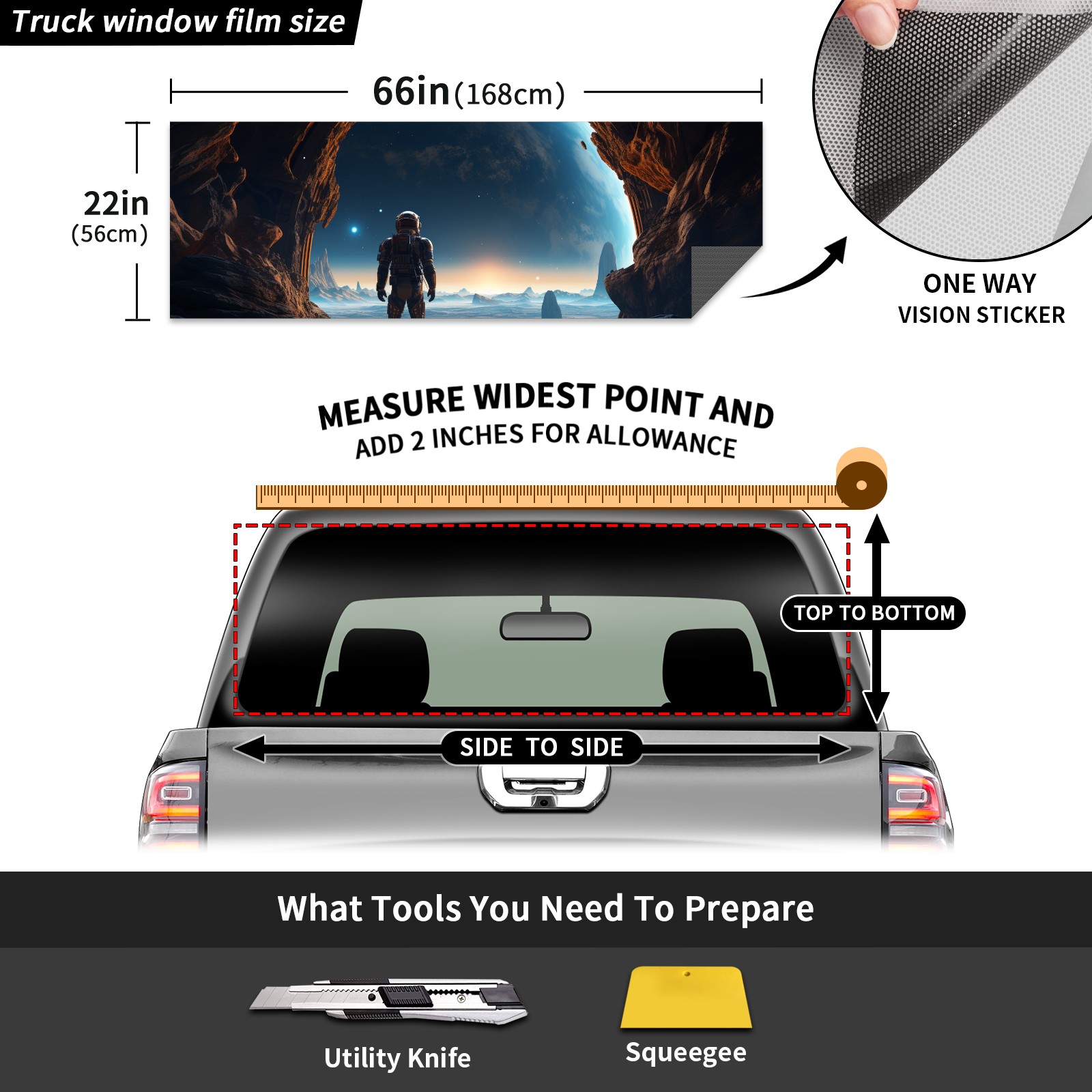 Truck Rear Window Graphics Decals Pickup Trucks Back Window Sticker Full Window Film Decal One Way Visual Waterproof Car Rear Tint Astronauts
