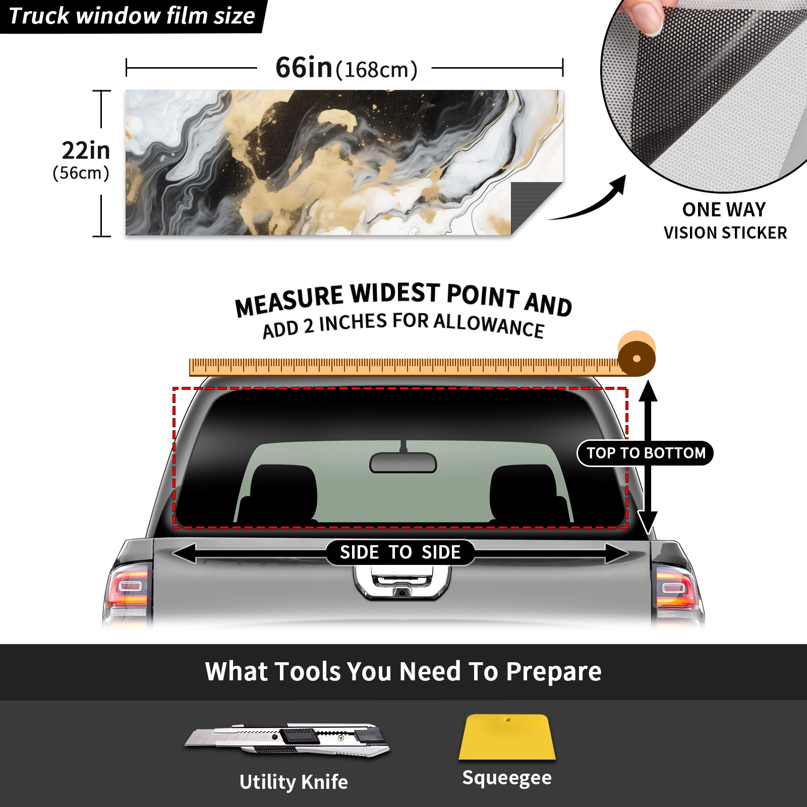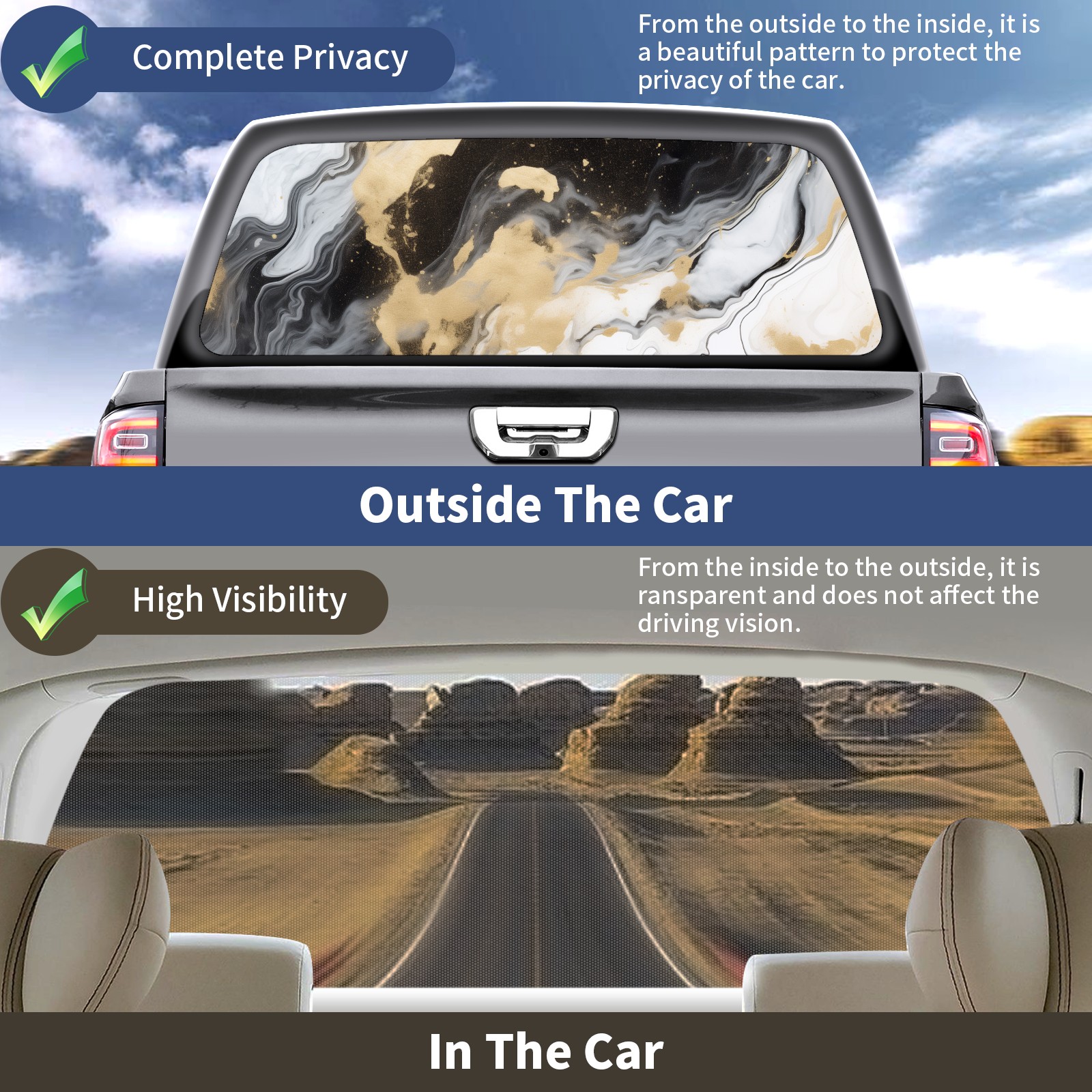 Truck Rear Window Graphics Decals Pickup Trucks Back Window Sticker Full Window Film Decal One Way Visual Waterproof Car Rear Tint Marble
