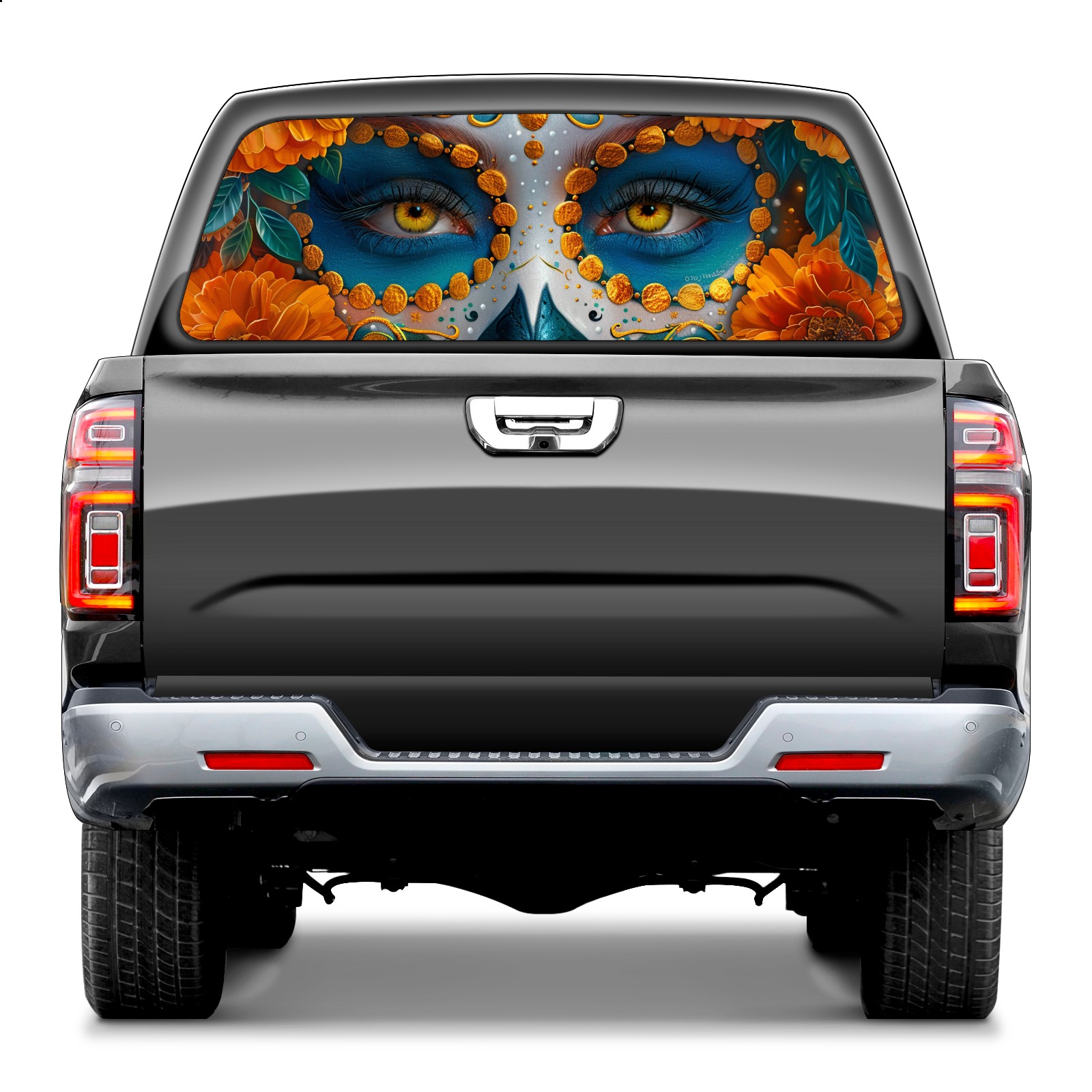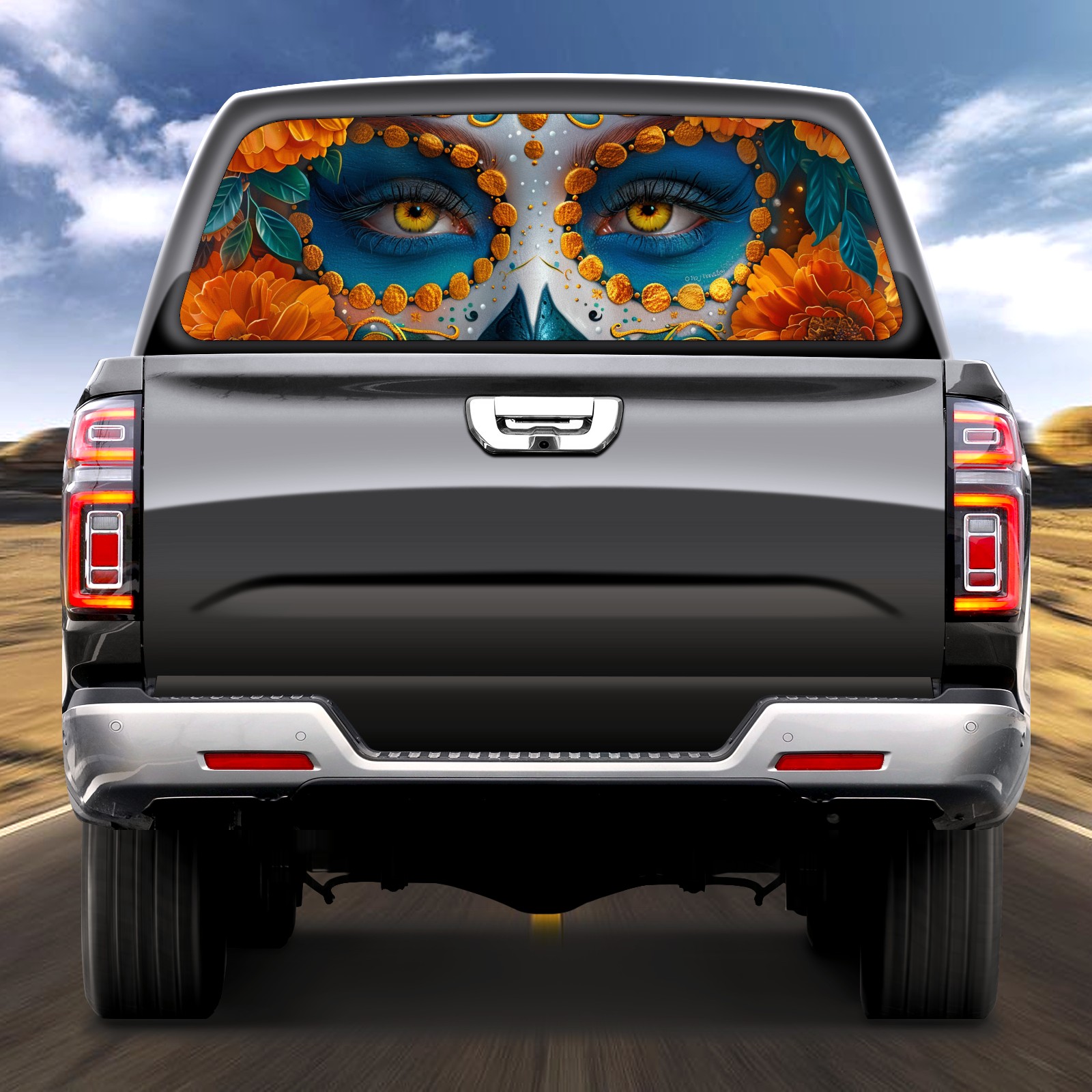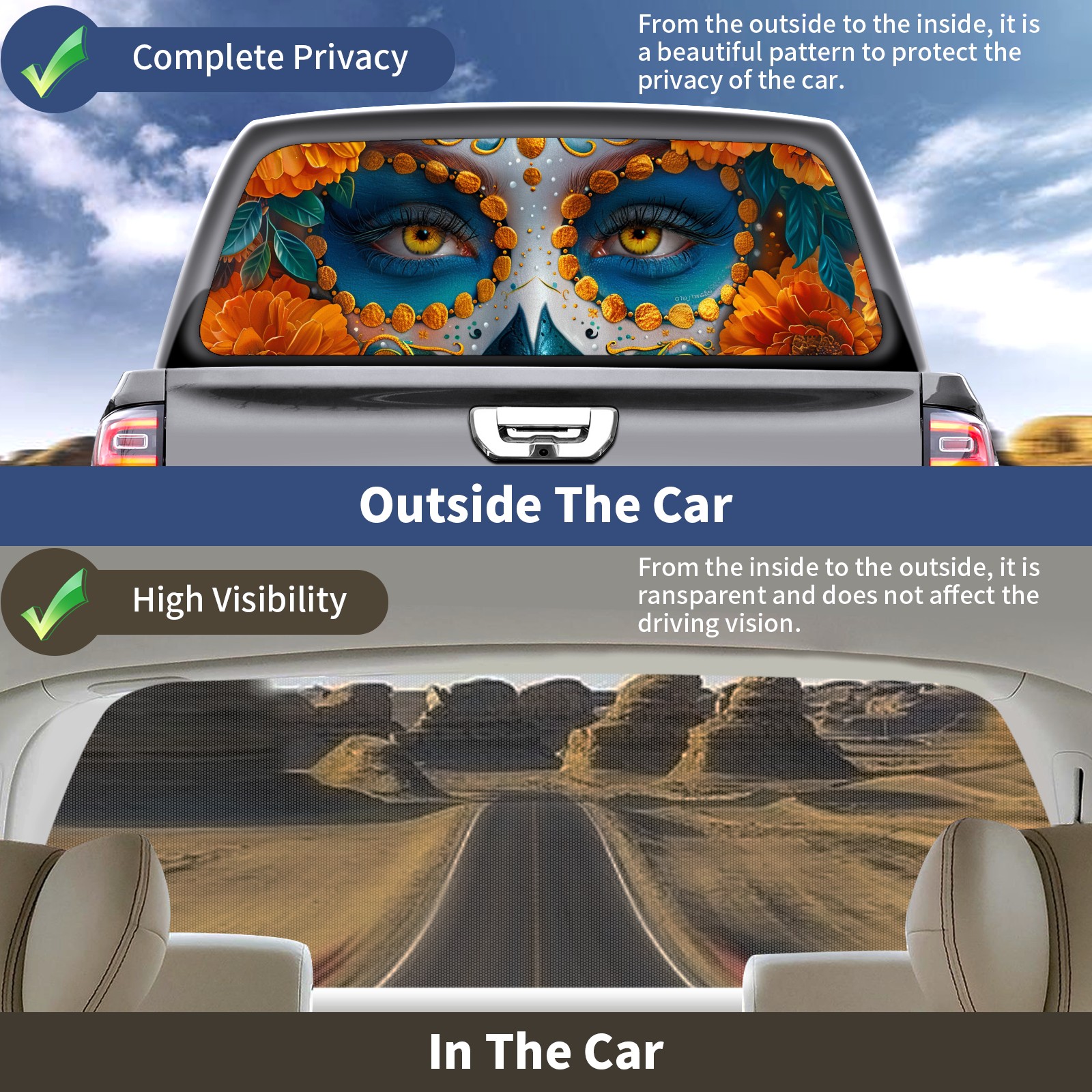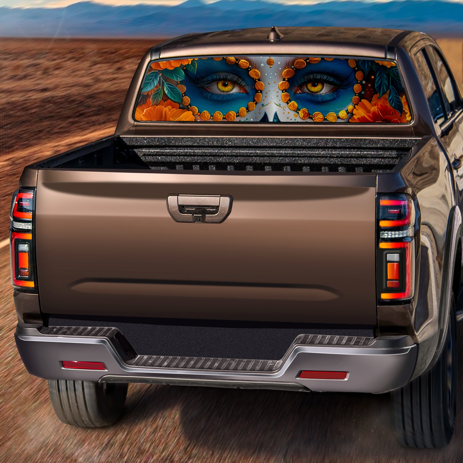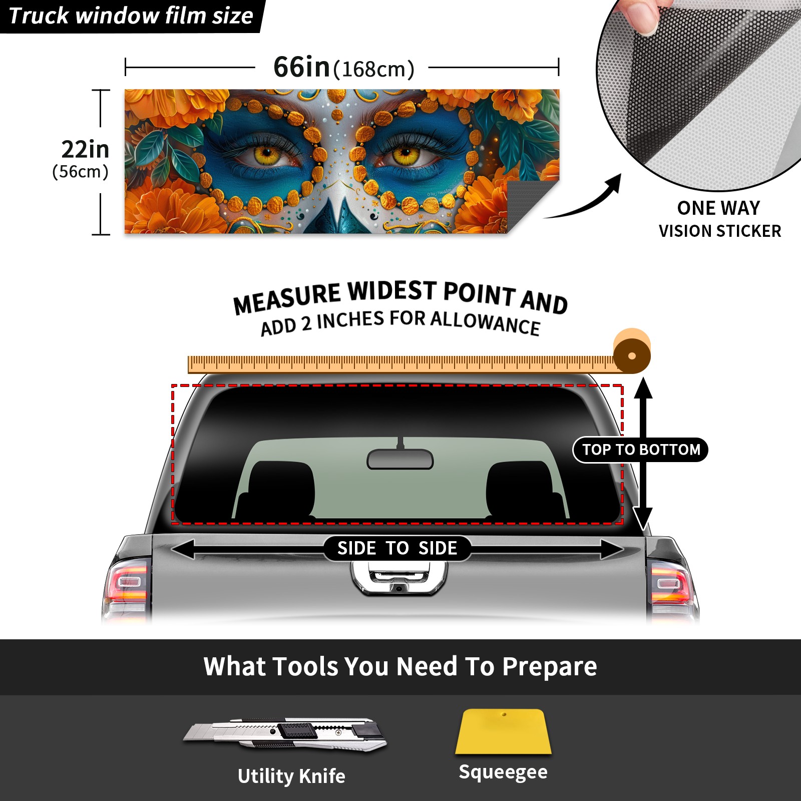 Truck Rear Window Graphics Decals Pickup Trucks Back Window Sticker Full Window Film Decal One Way Visual Waterproof Car Rear Tint Sunflower Eyes