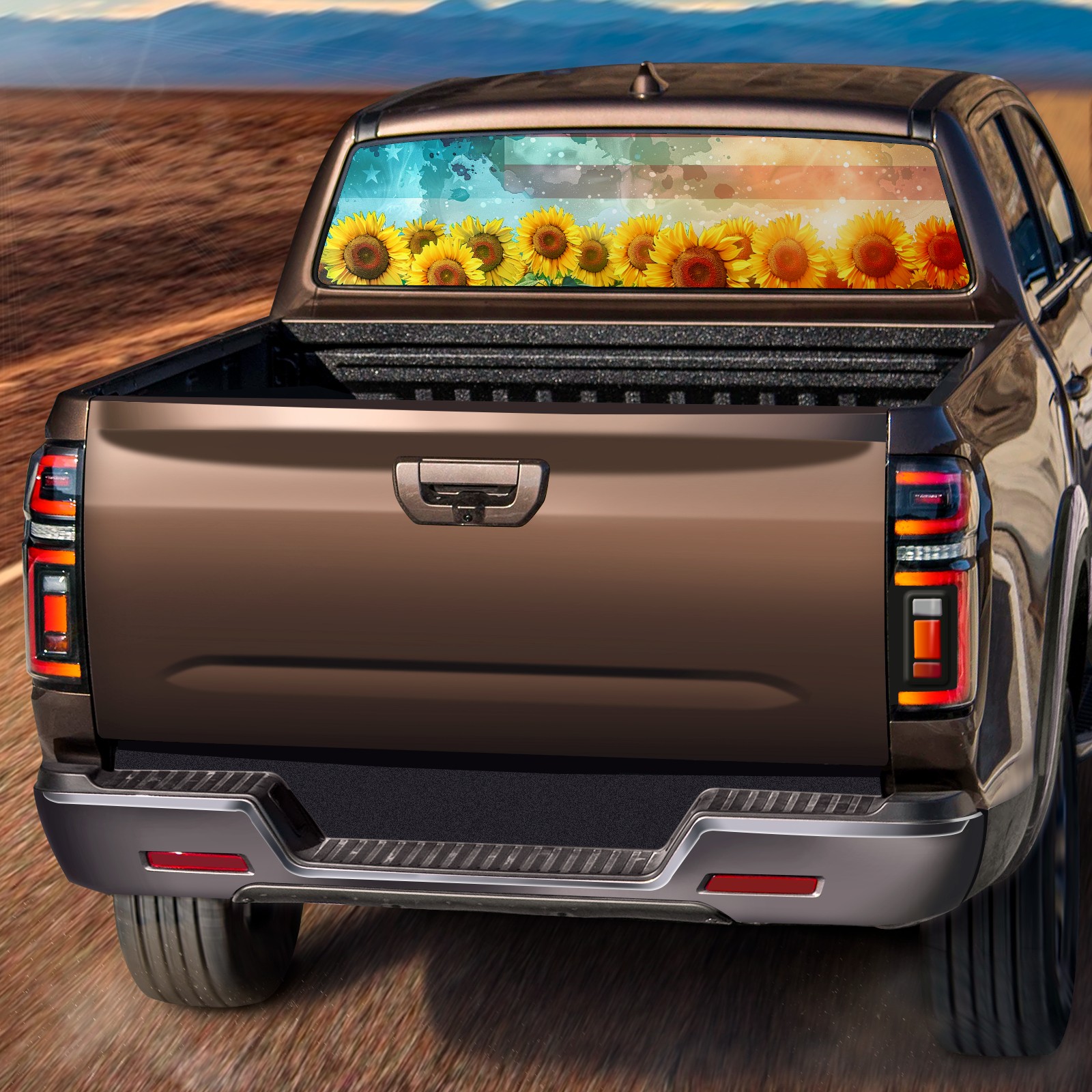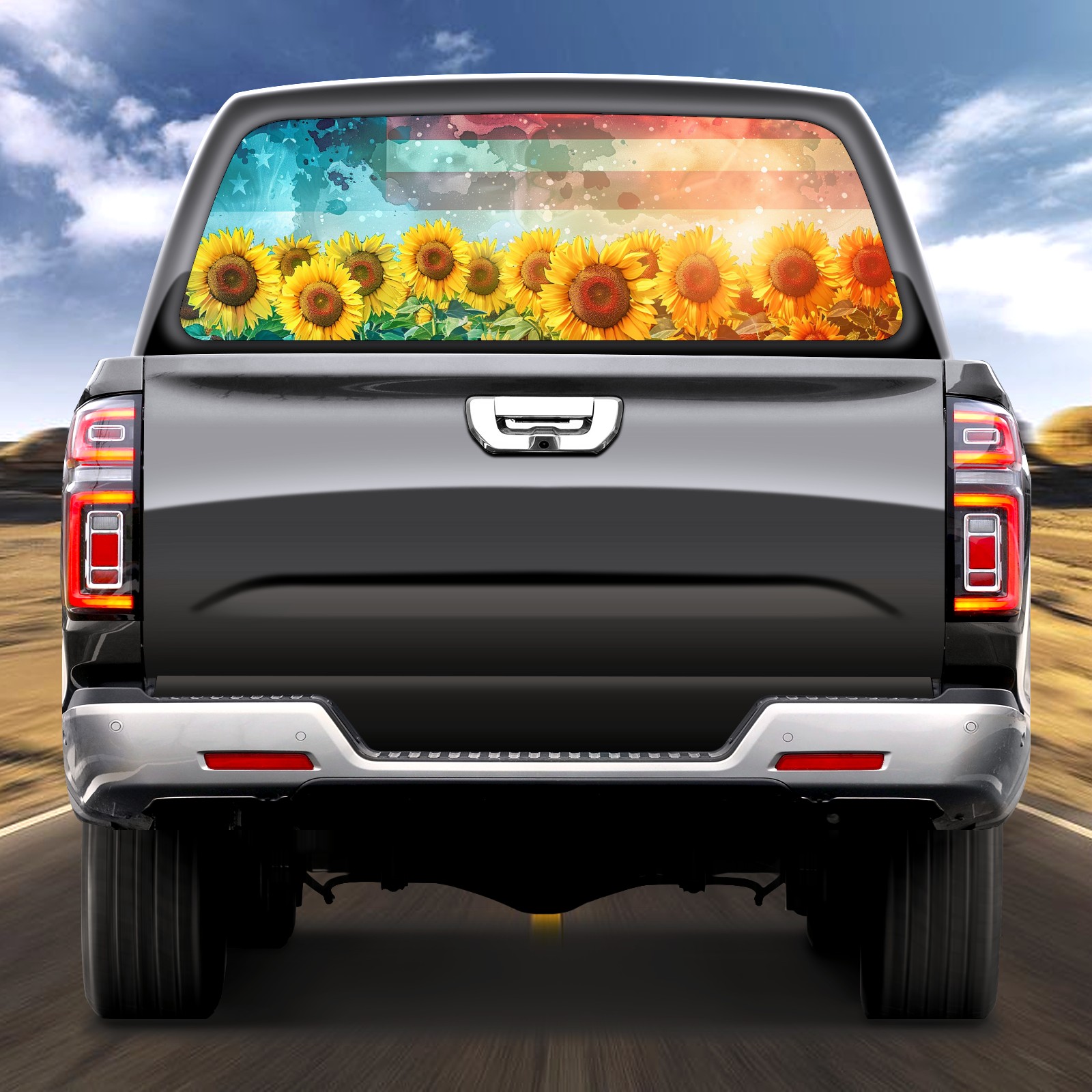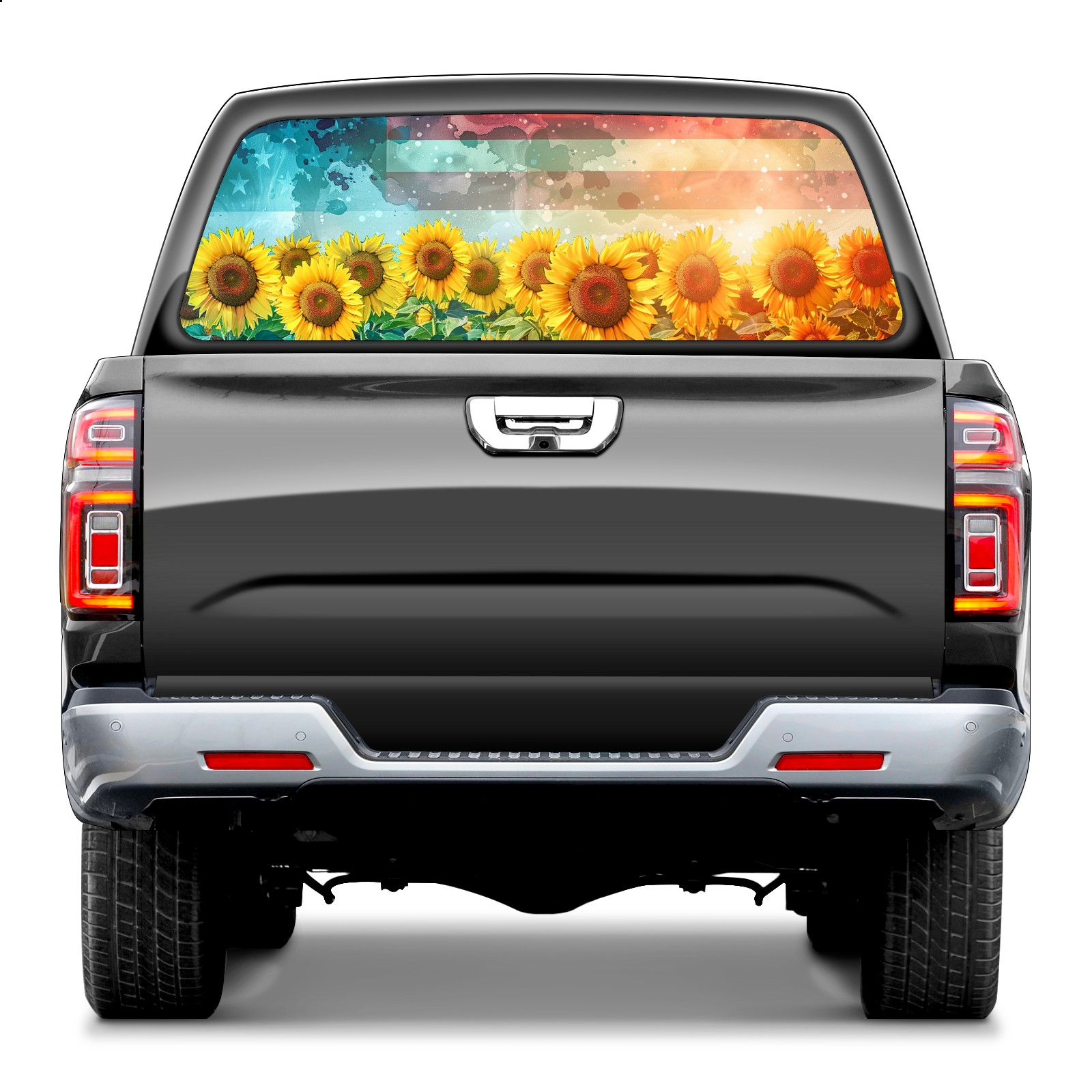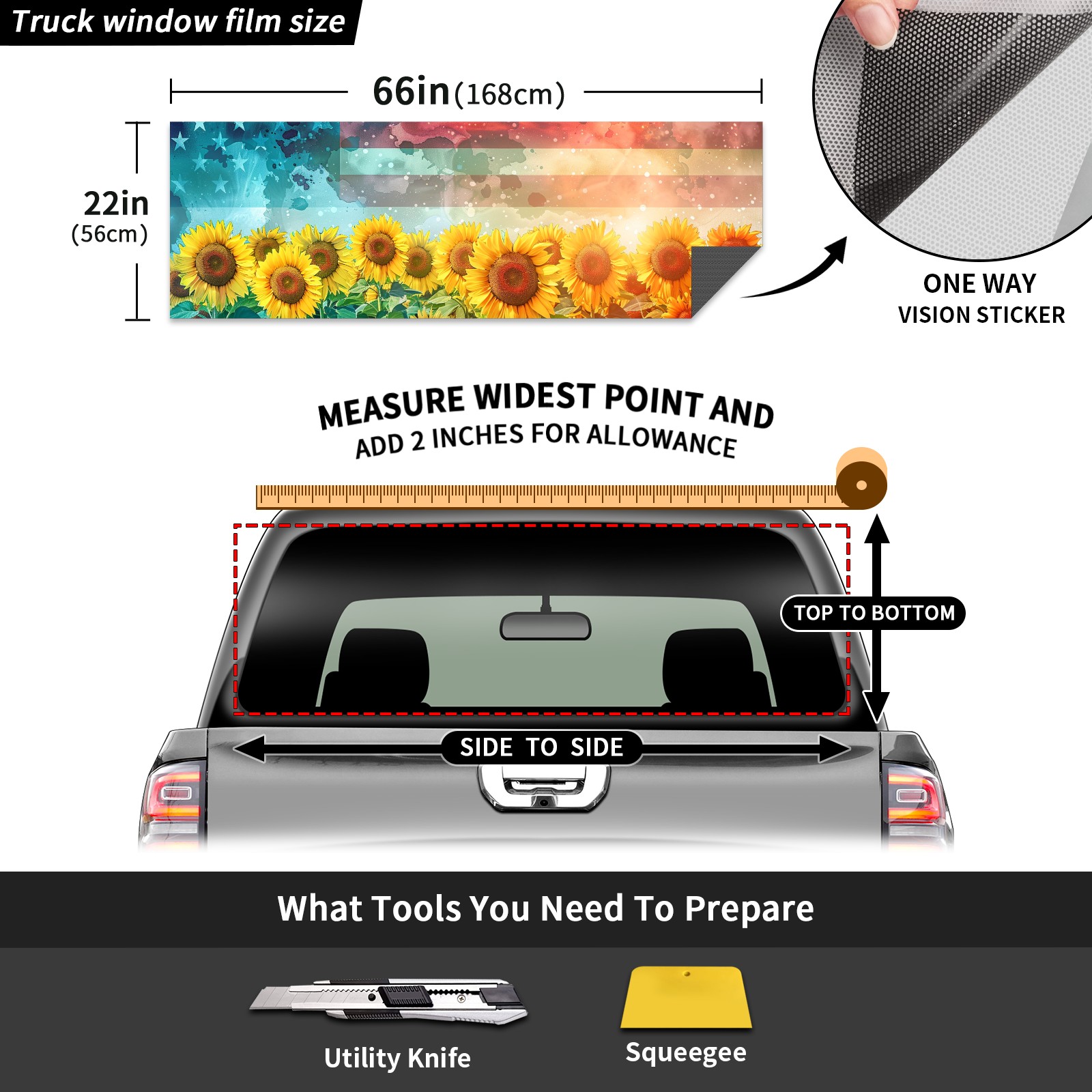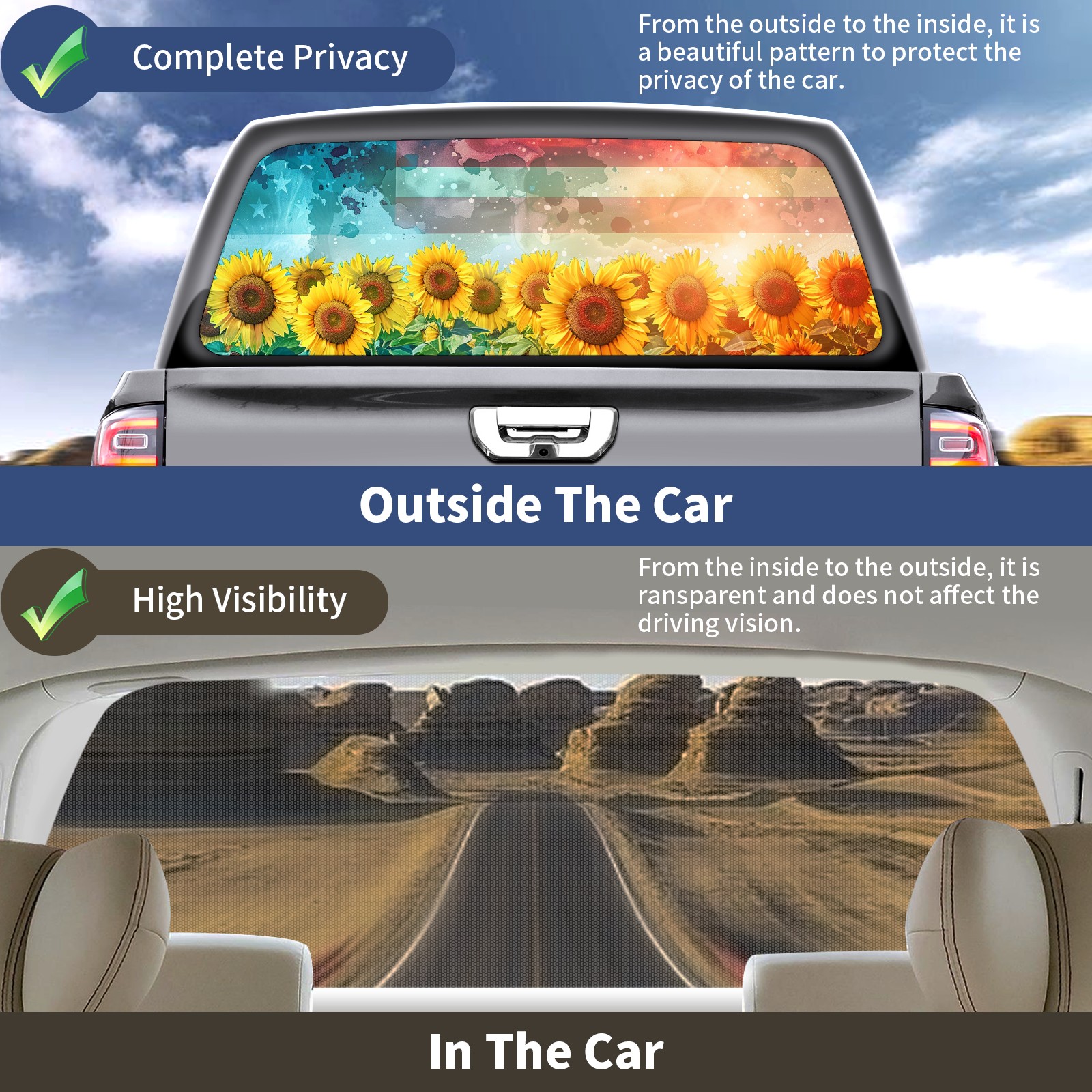 Truck Rear Window Graphics Decals Pickup Trucks Back Window Sticker Full Window Film Decal One Way Visual Waterproof Car Rear Tint Flag Sunflower