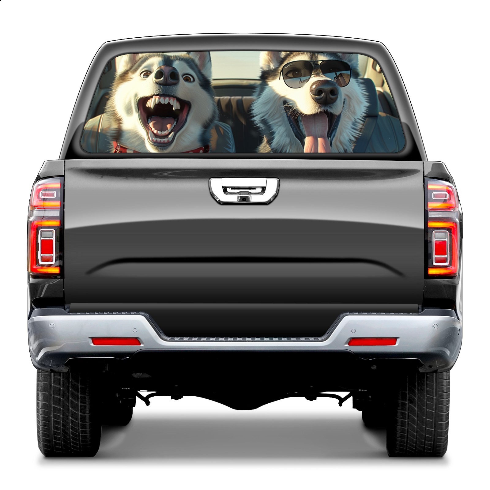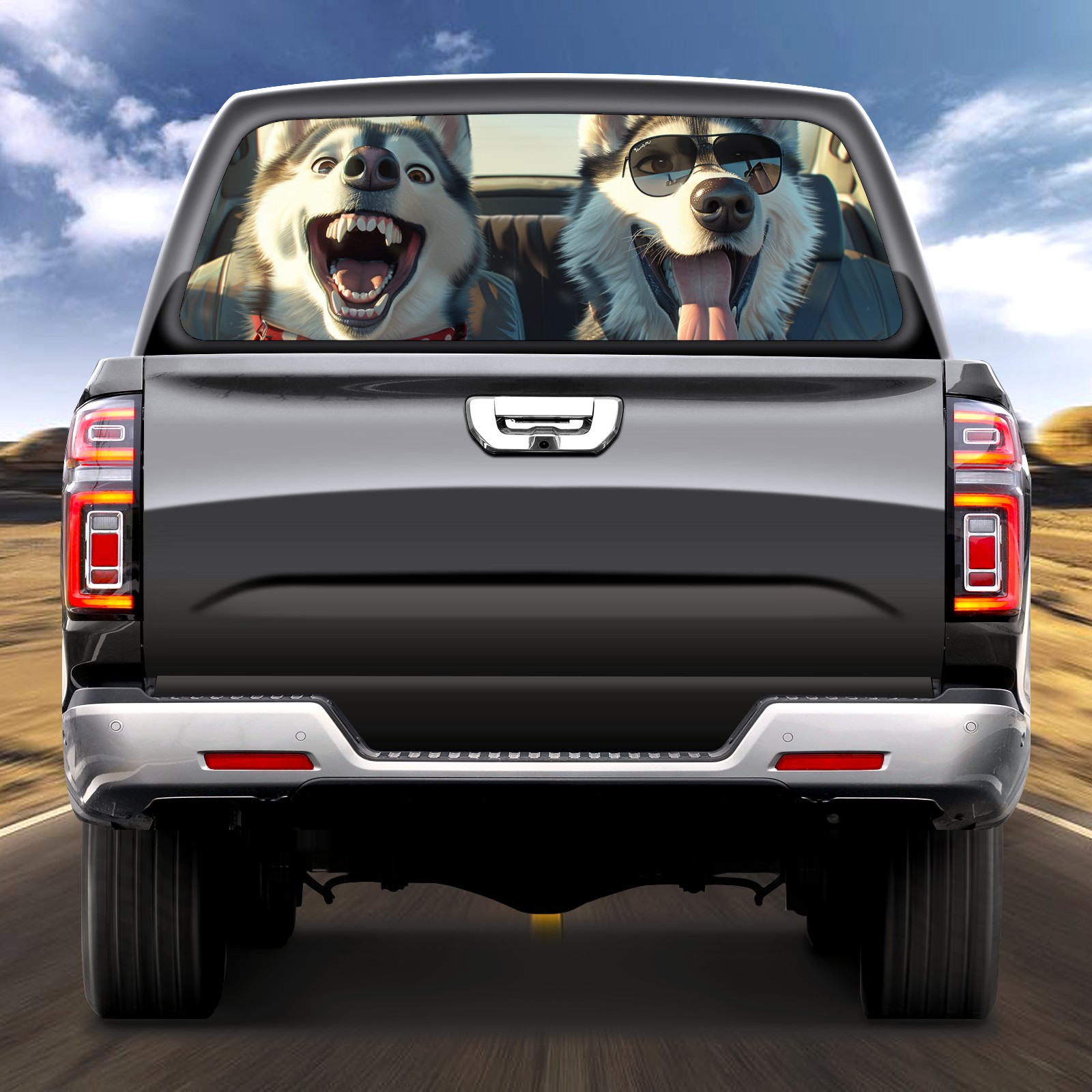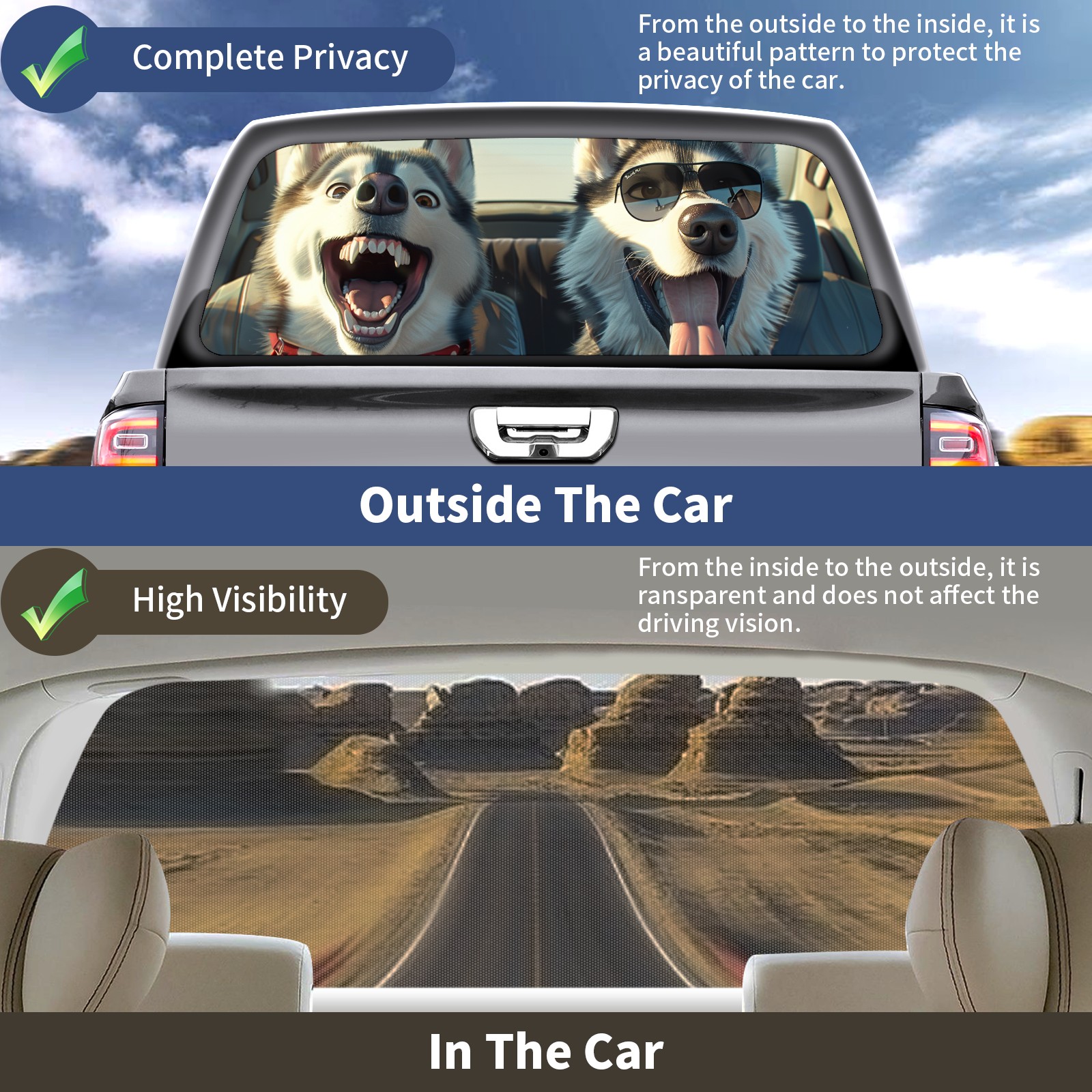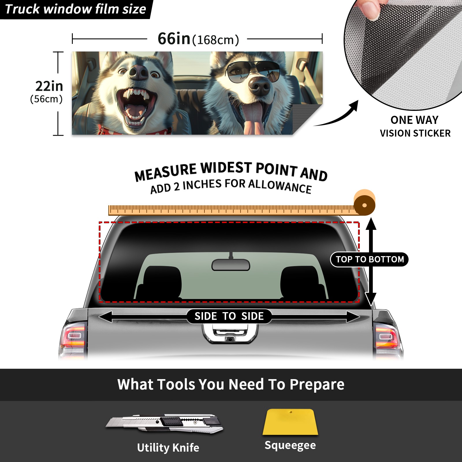 Truck Rear Window Graphics Decals Pickup Trucks Back Window Sticker Full Window Film Decal One Way Visual Waterproof Car Rear Tint Funny Husky