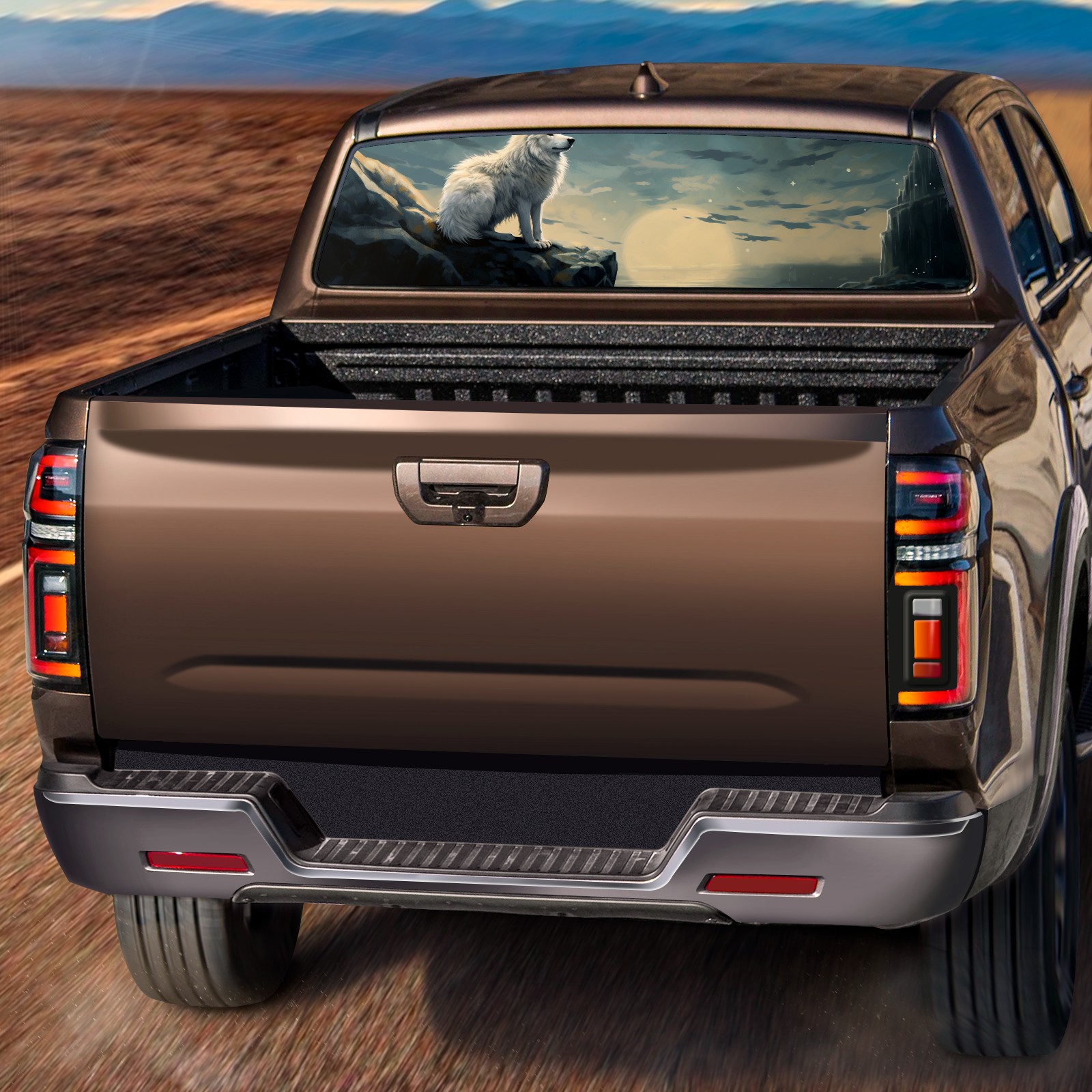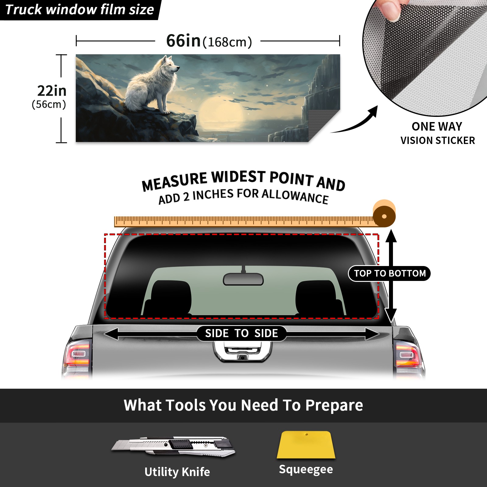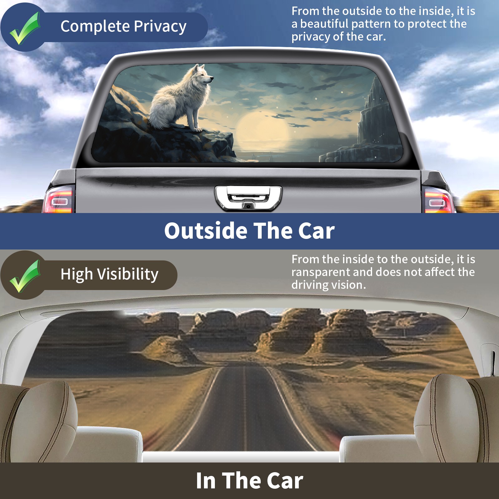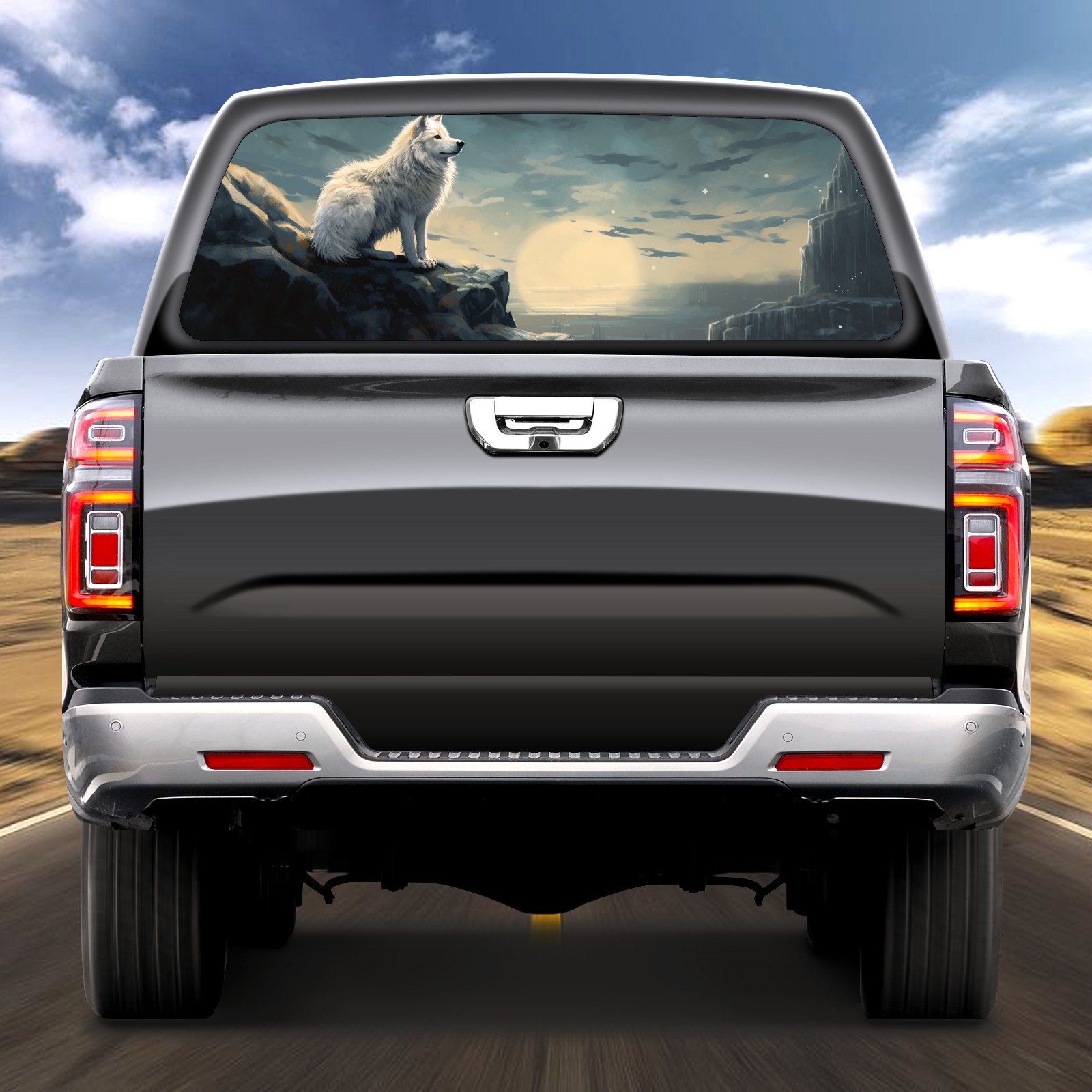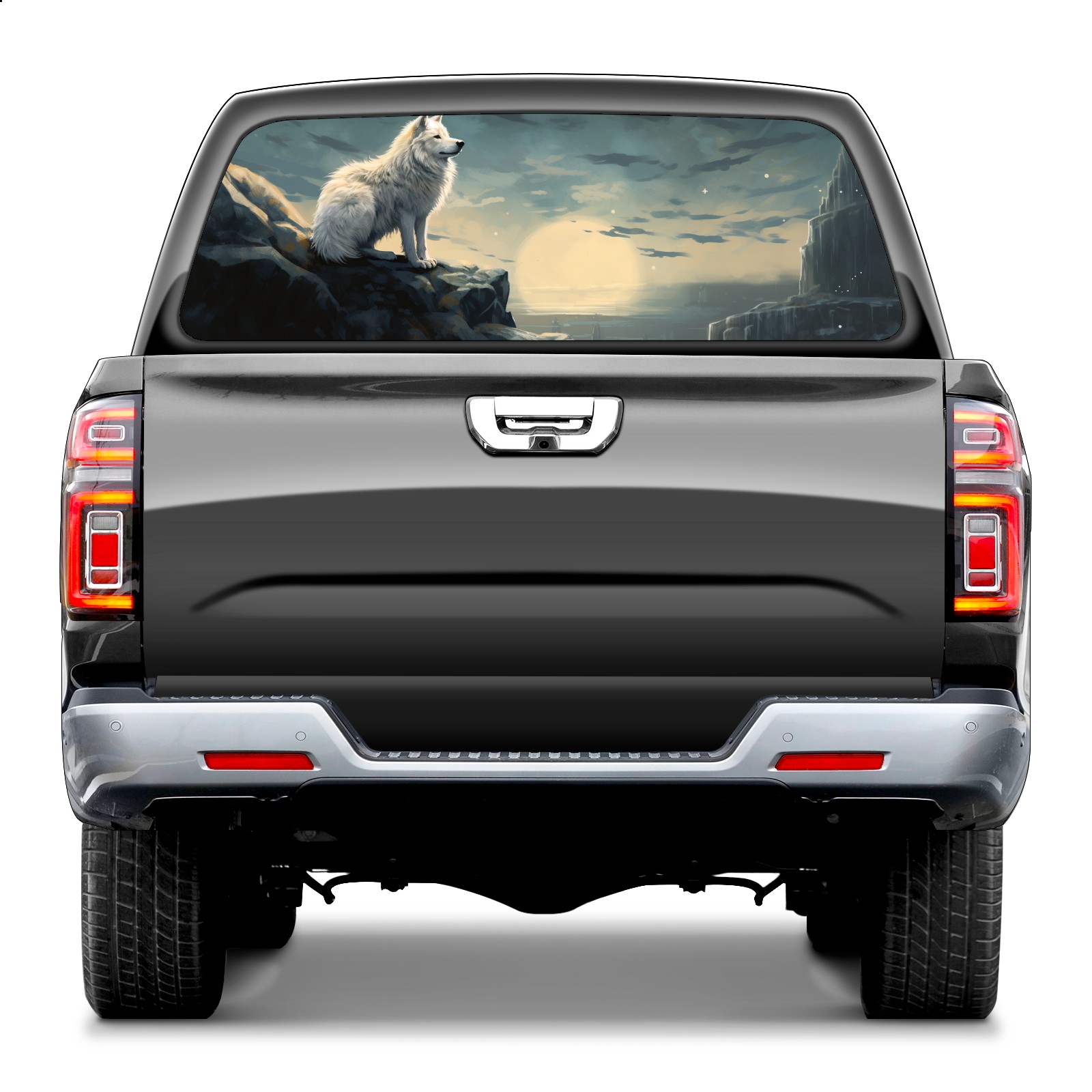 Truck Rear Window Graphics Decals Pickup Trucks Back Window Sticker Full Window Film Decal One Way Visual Waterproof Car Rear Tint White Wolf