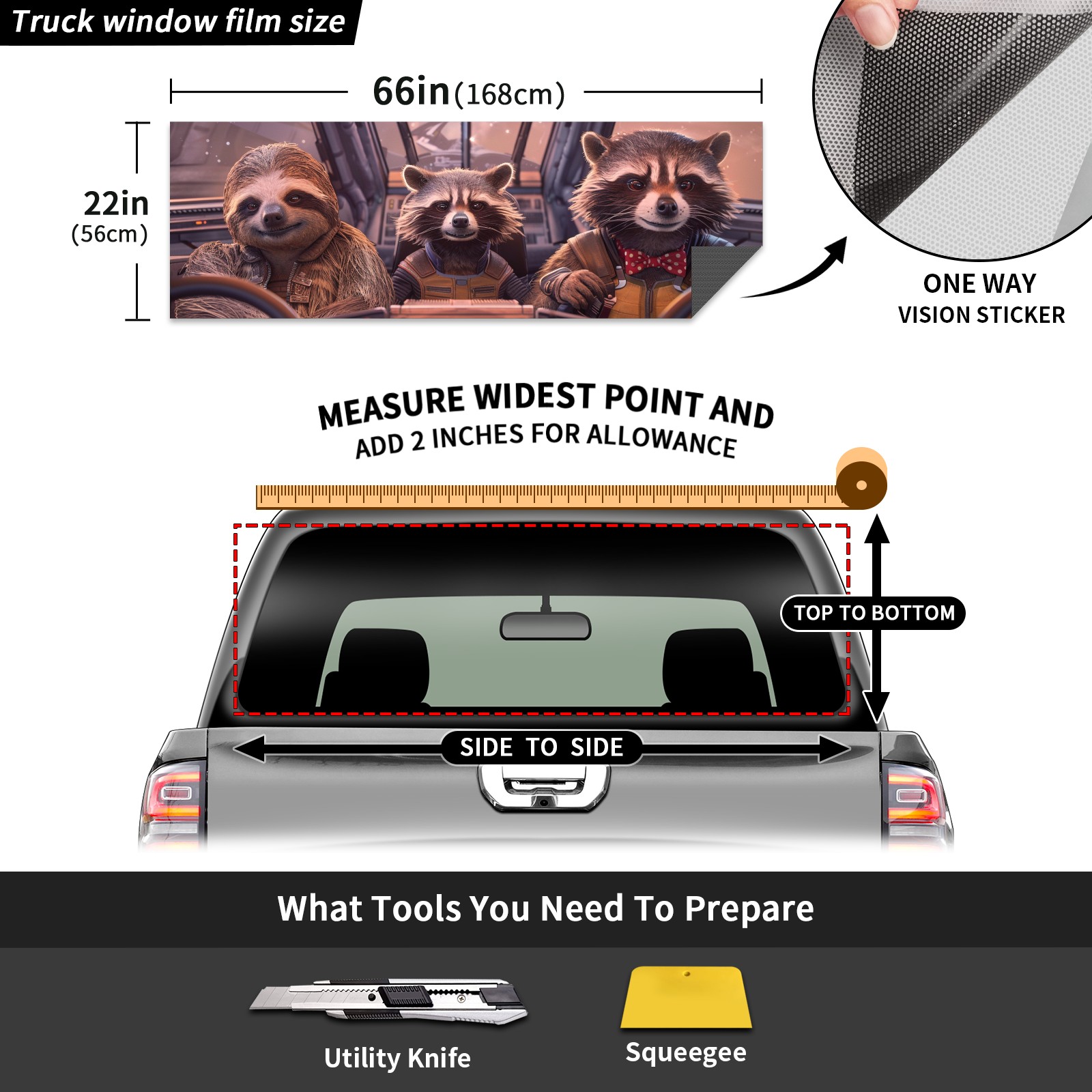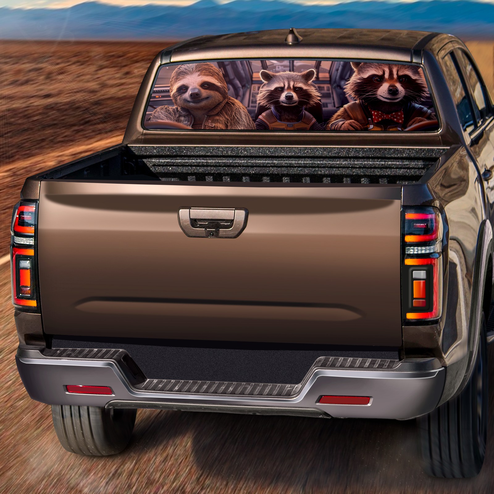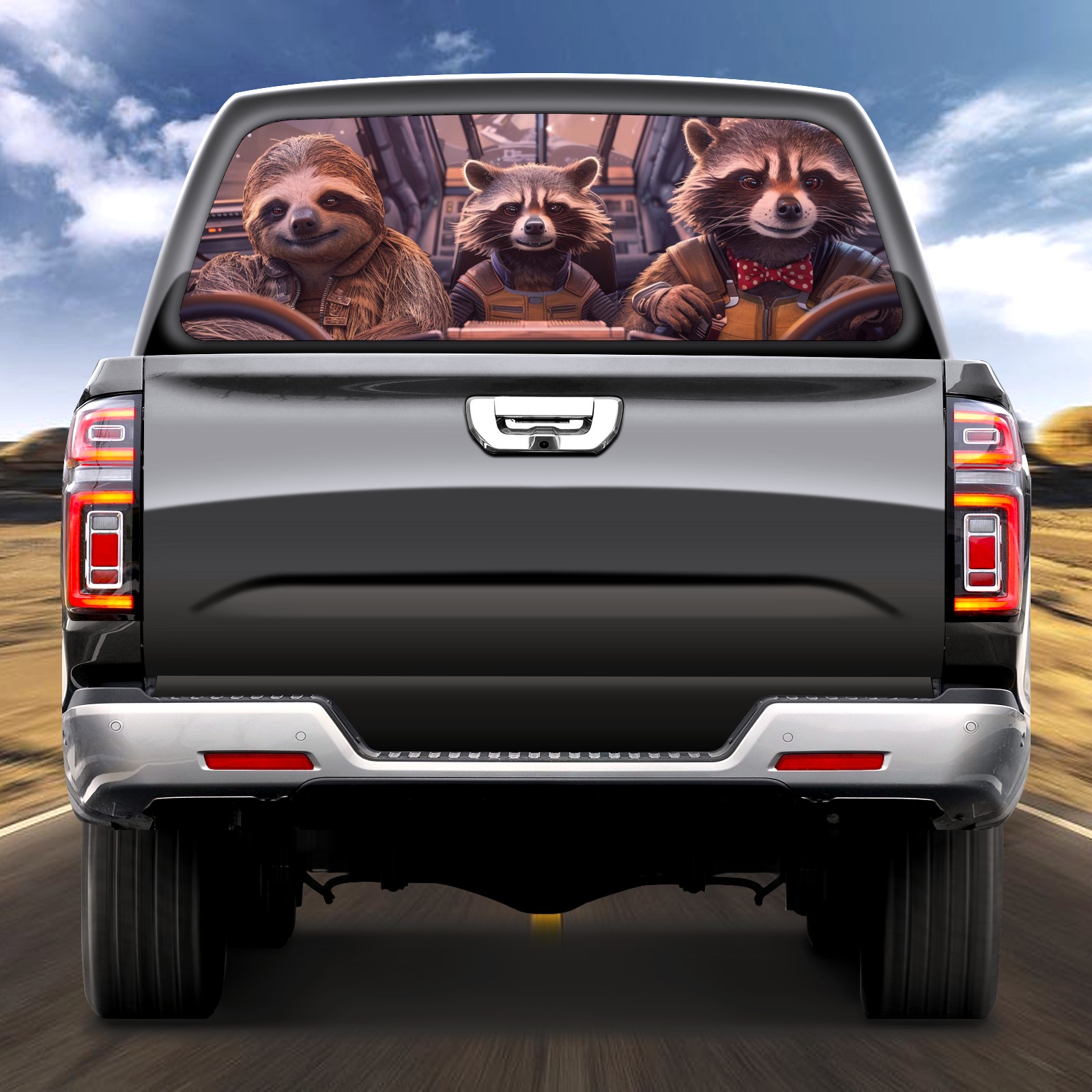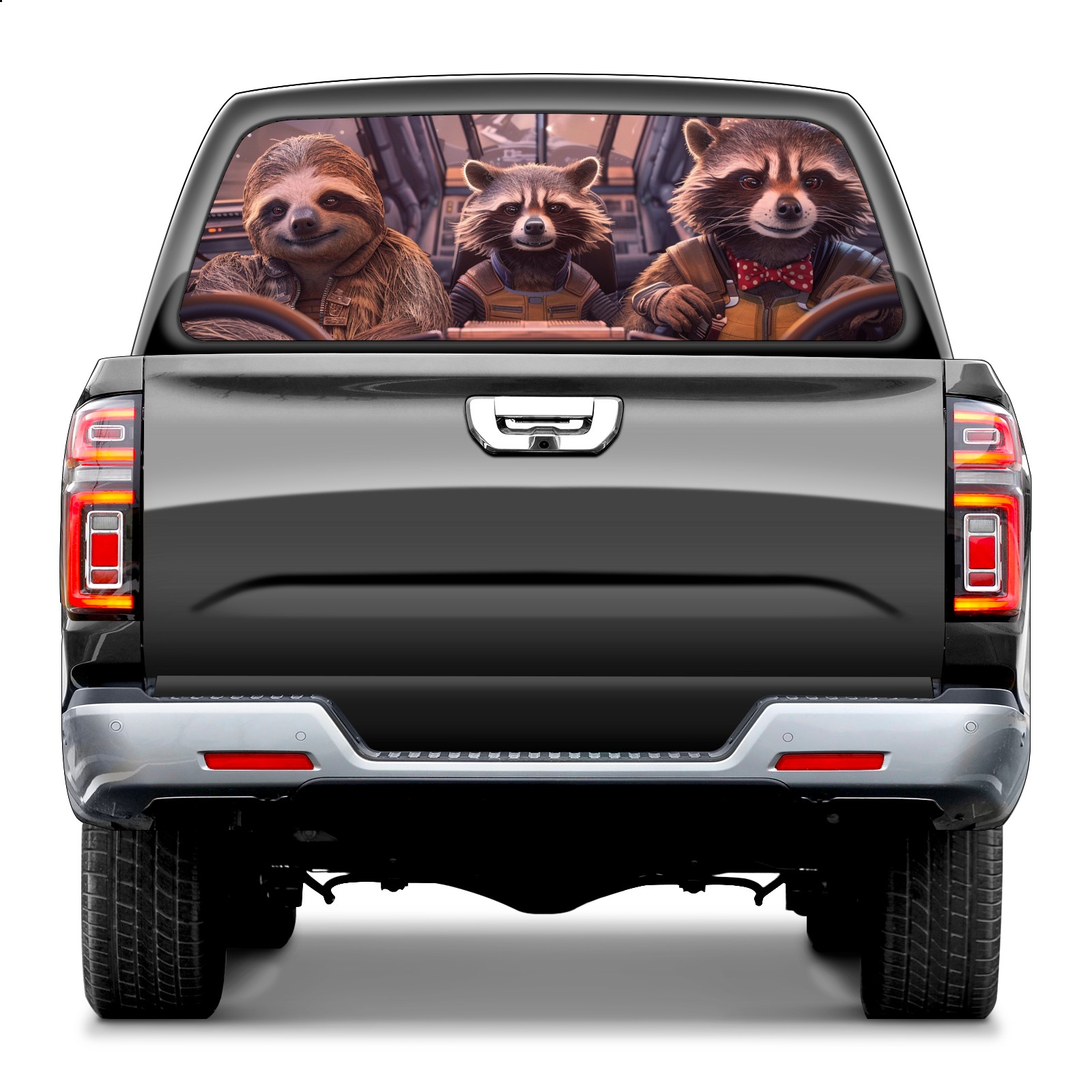 Truck Rear Window Graphics Decals Pickup Trucks Back Window Sticker Full Window Film Decal One Way Visual Waterproof Car Rear Tint Funny Raccoon