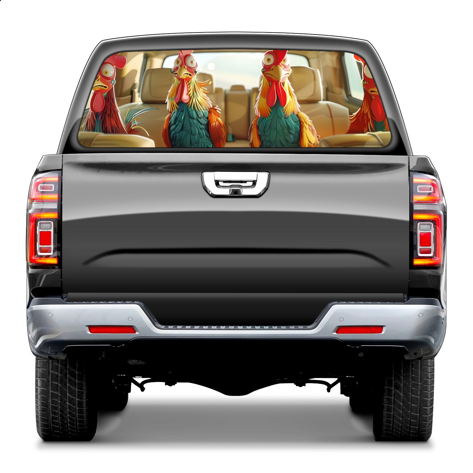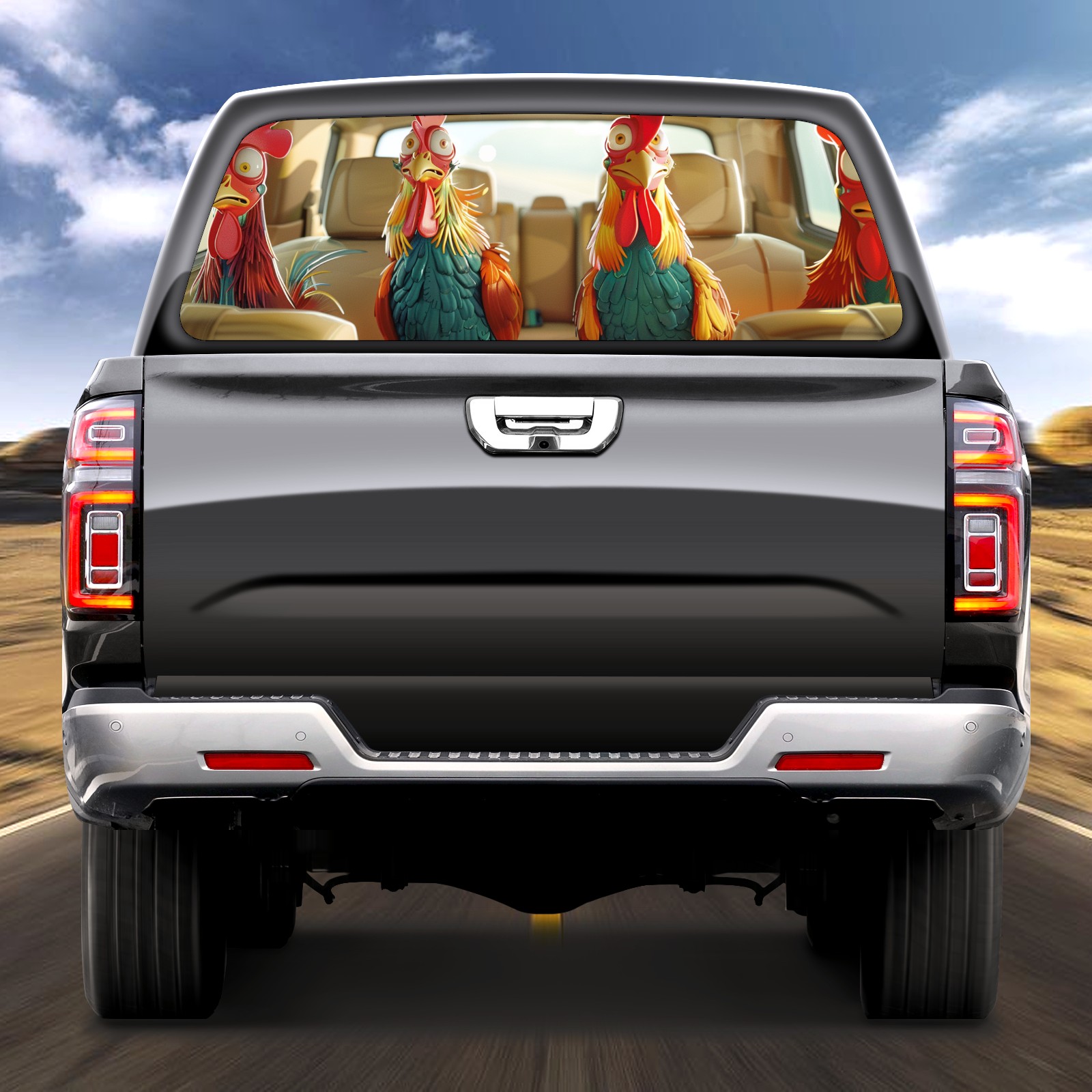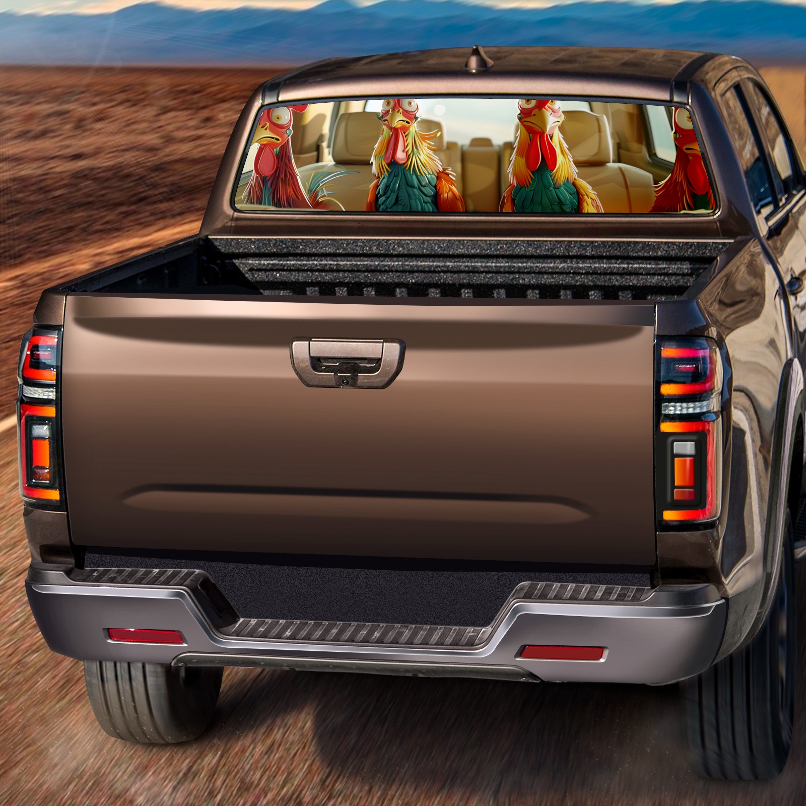 Truck Rear Window Graphics Decals Pickup Trucks Back Window Sticker Full Window Film Decal One Way Visual Waterproof Car Rear Tint Funny Cock