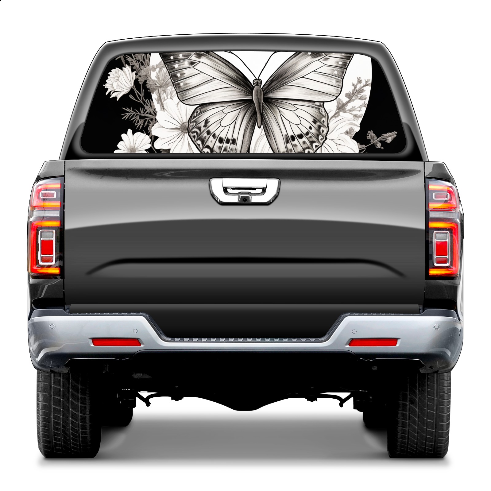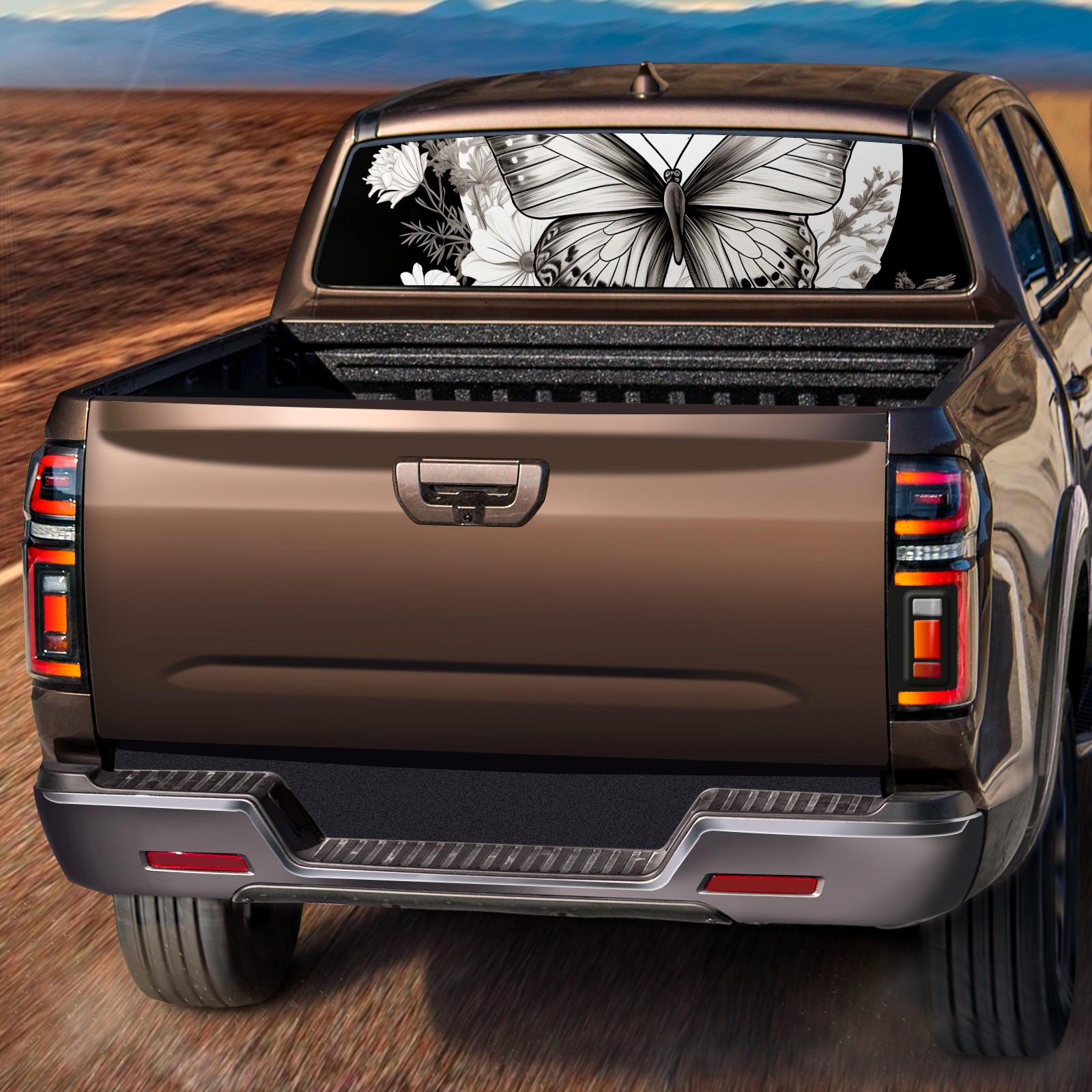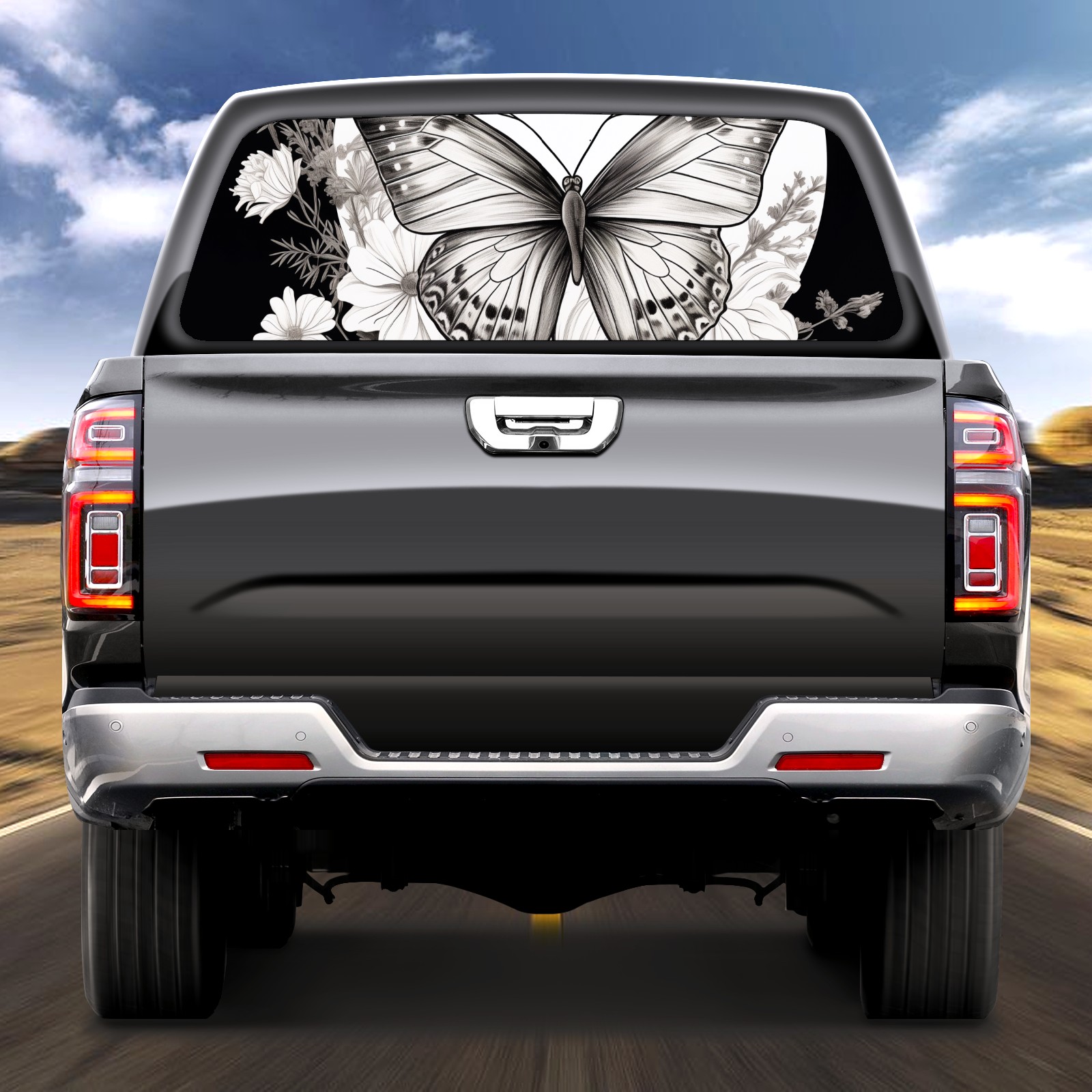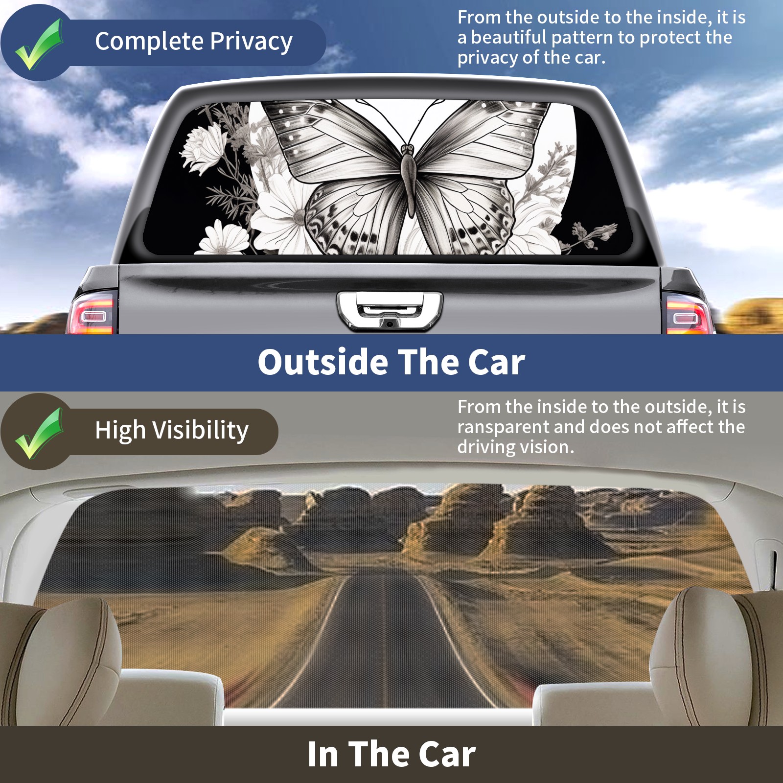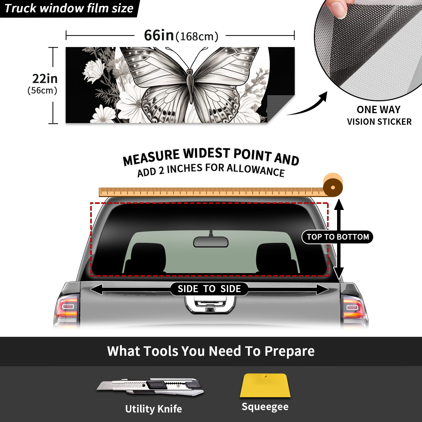 Truck Rear Window Graphics Decals Pickup Trucks Back Window Sticker Full Window Film Decal One Way Visual Waterproof Car Rear Tint Butterfly Flower Moon