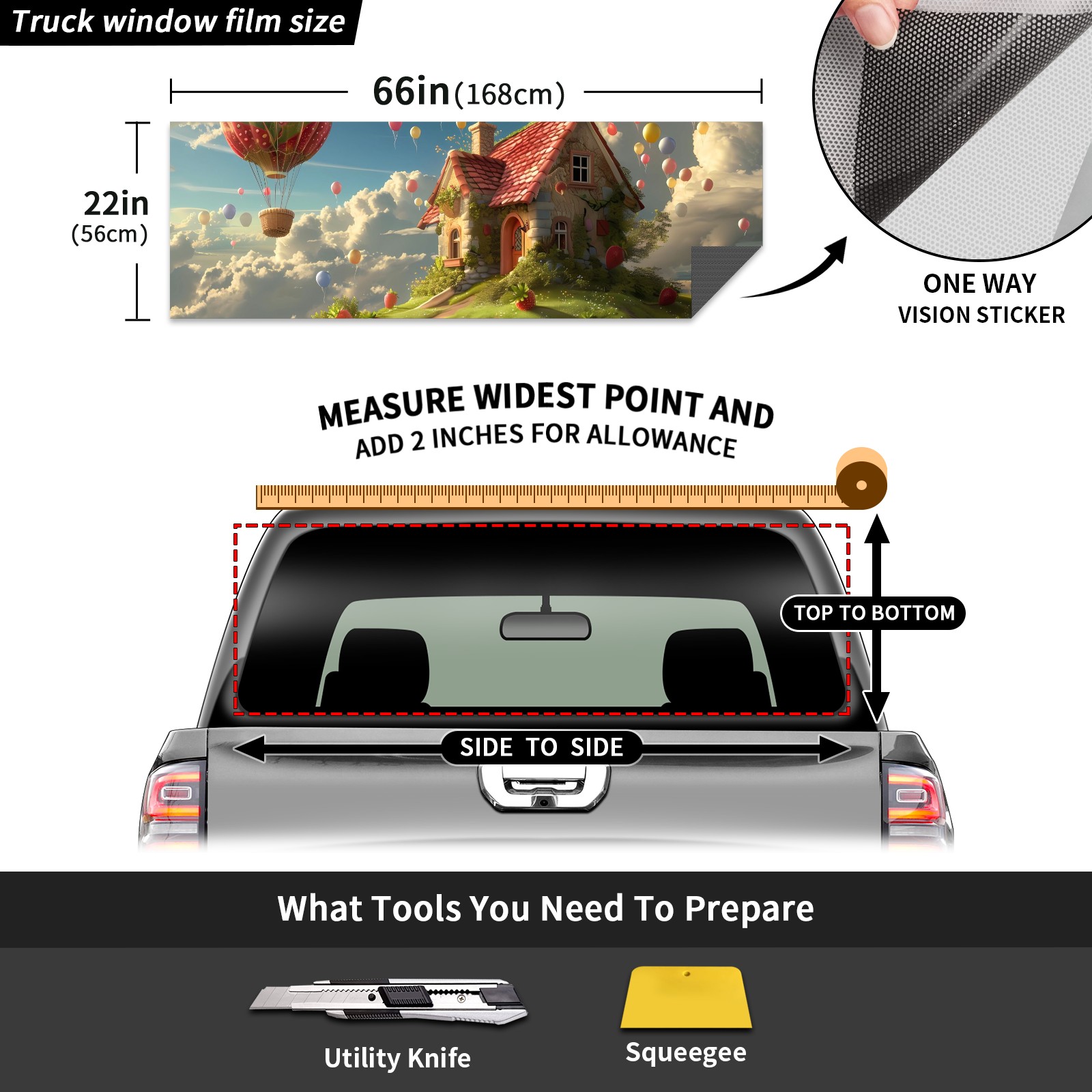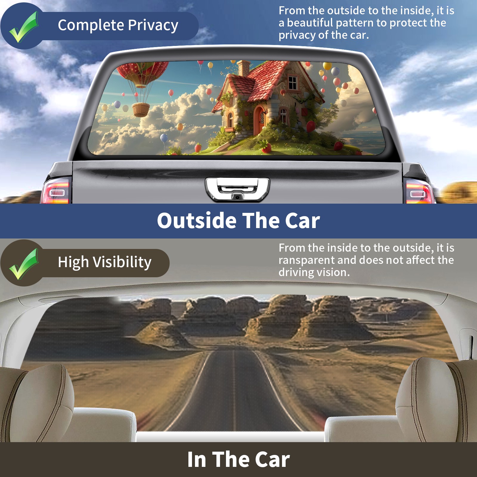 Truck Rear Window Graphics Decals Pickup Trucks Back Window Sticker Full Window Film Decal One Way Visual Waterproof Car Rear Tint Balloon (1)