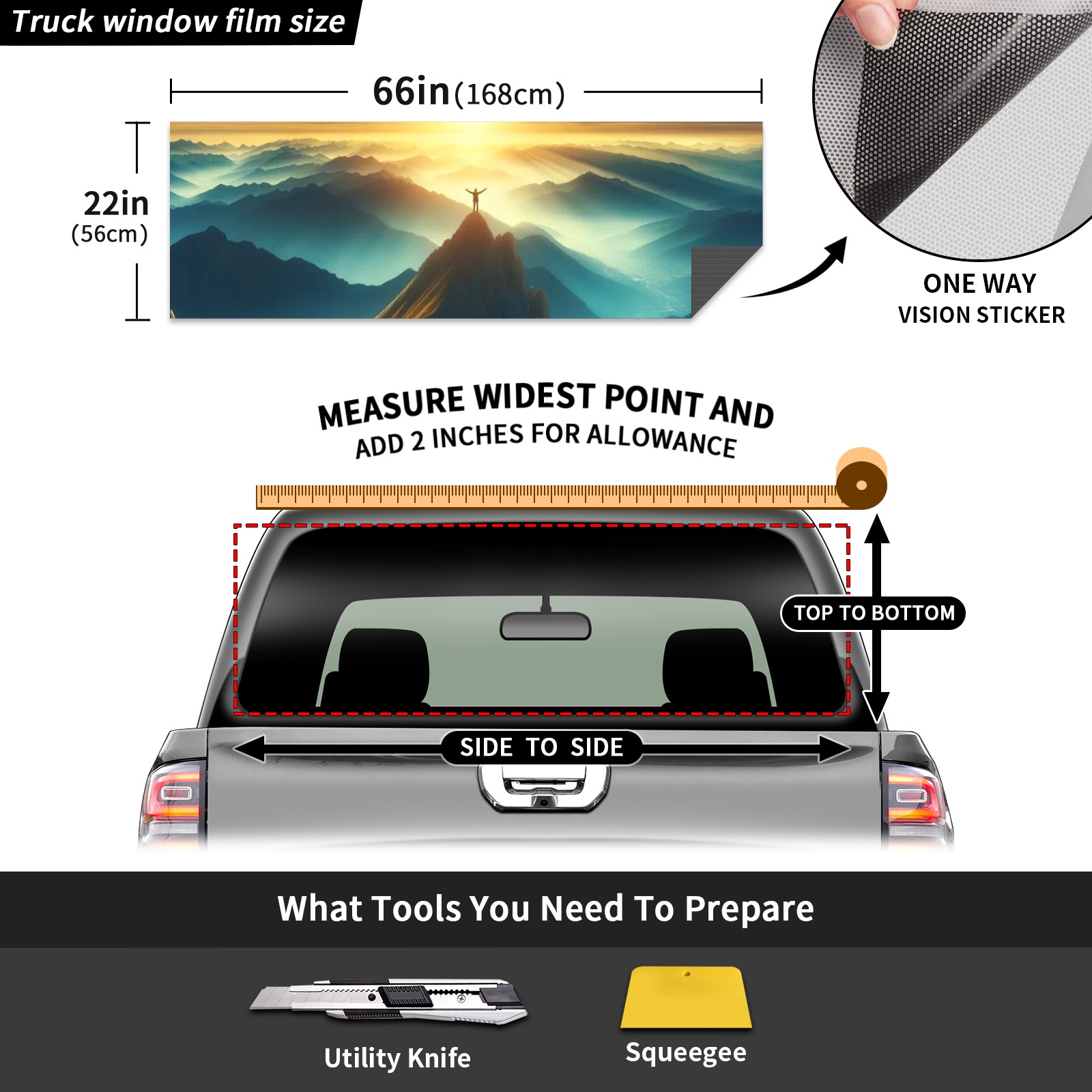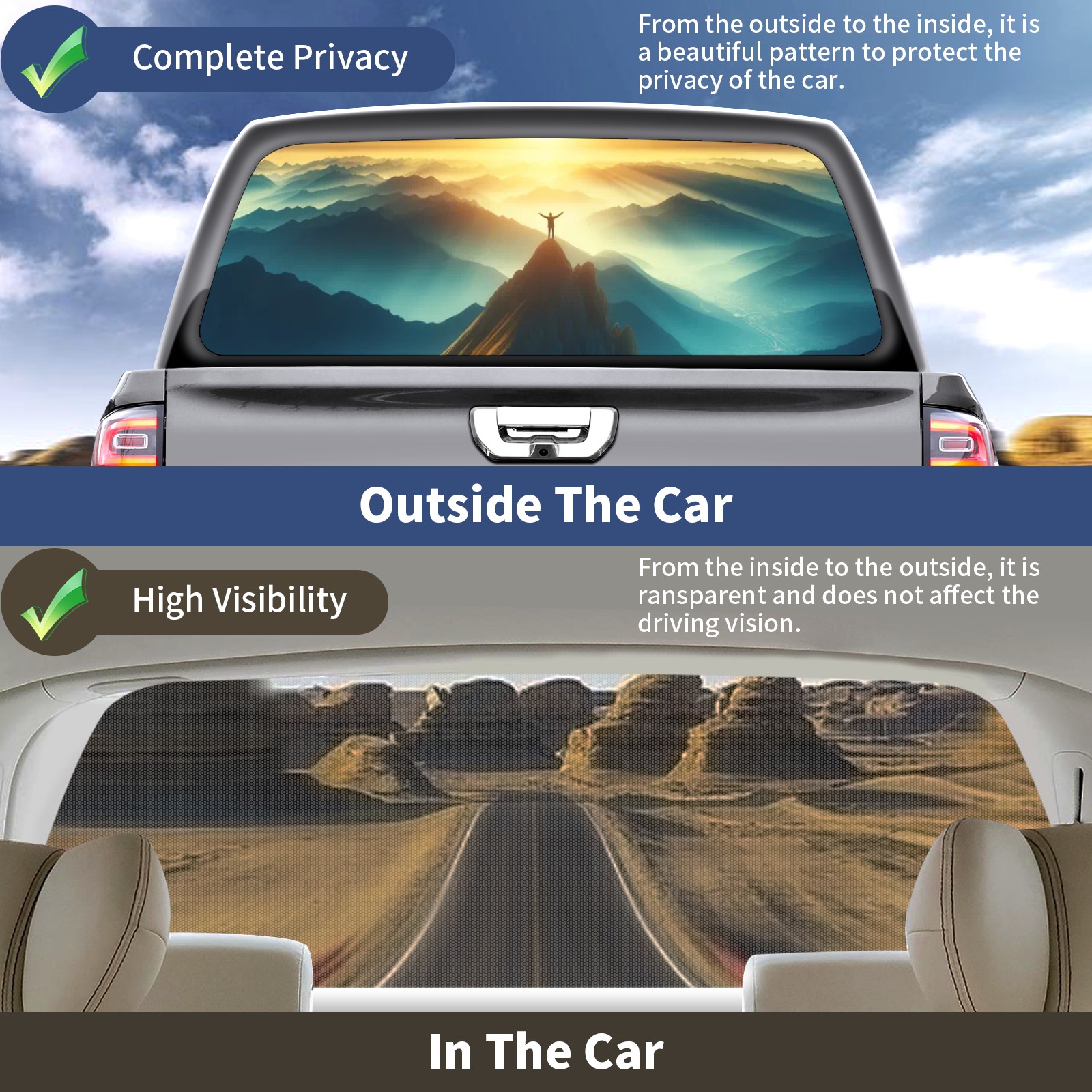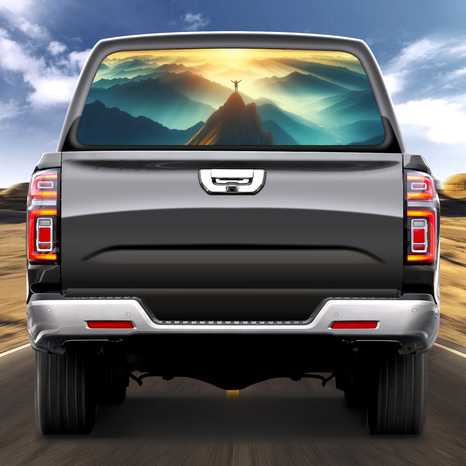Truck Rear Window Graphics Decals Pickup Trucks Back Window Sticker Full Window Film Decal One Way Visual Waterproof Car Rear Tint Sun Mountain